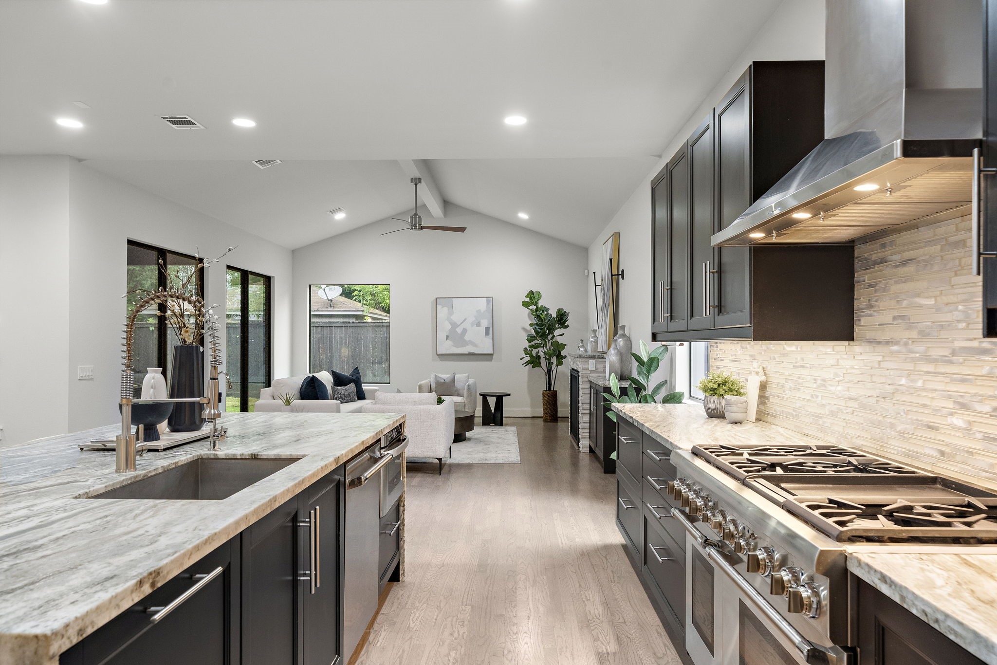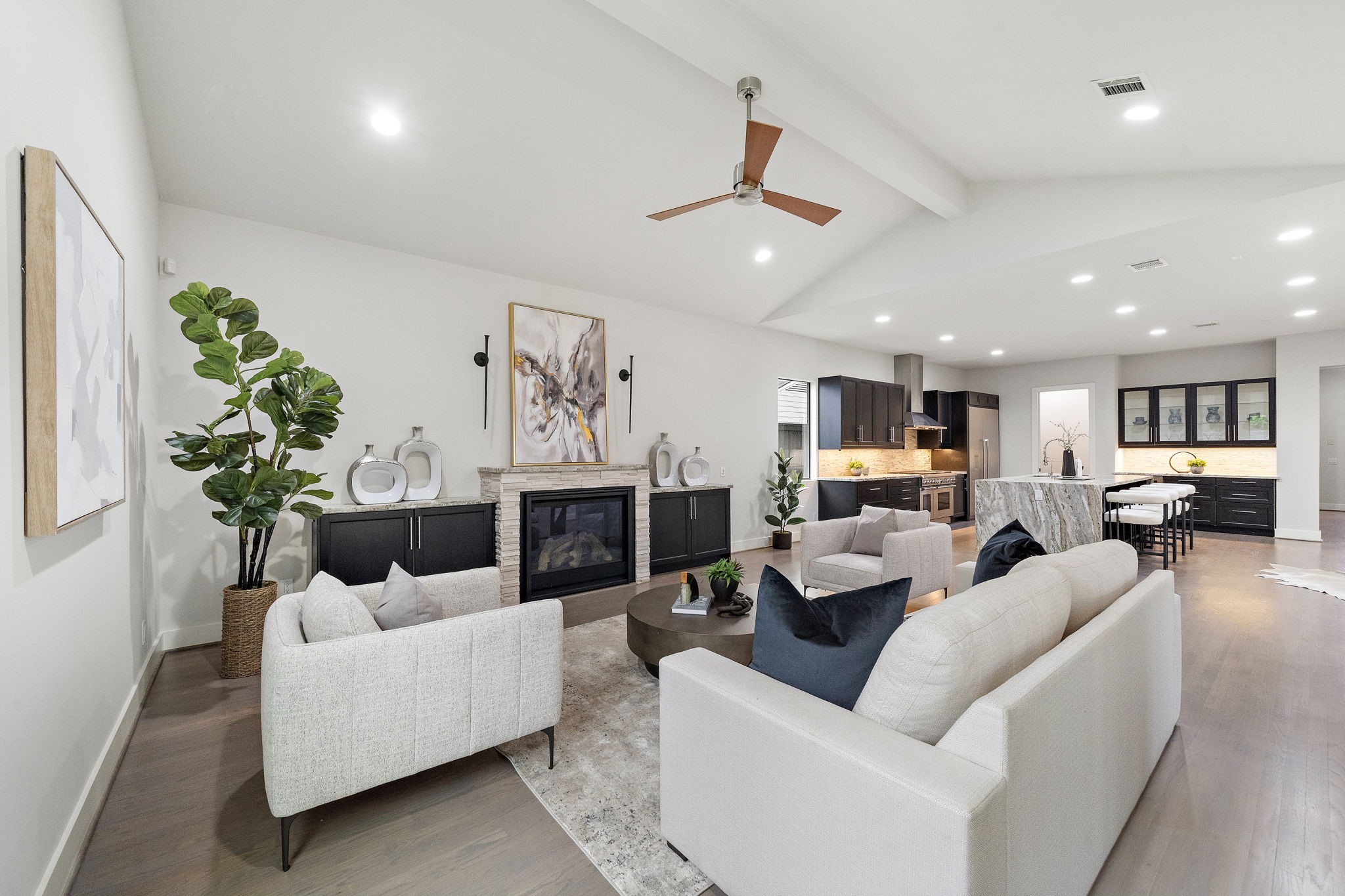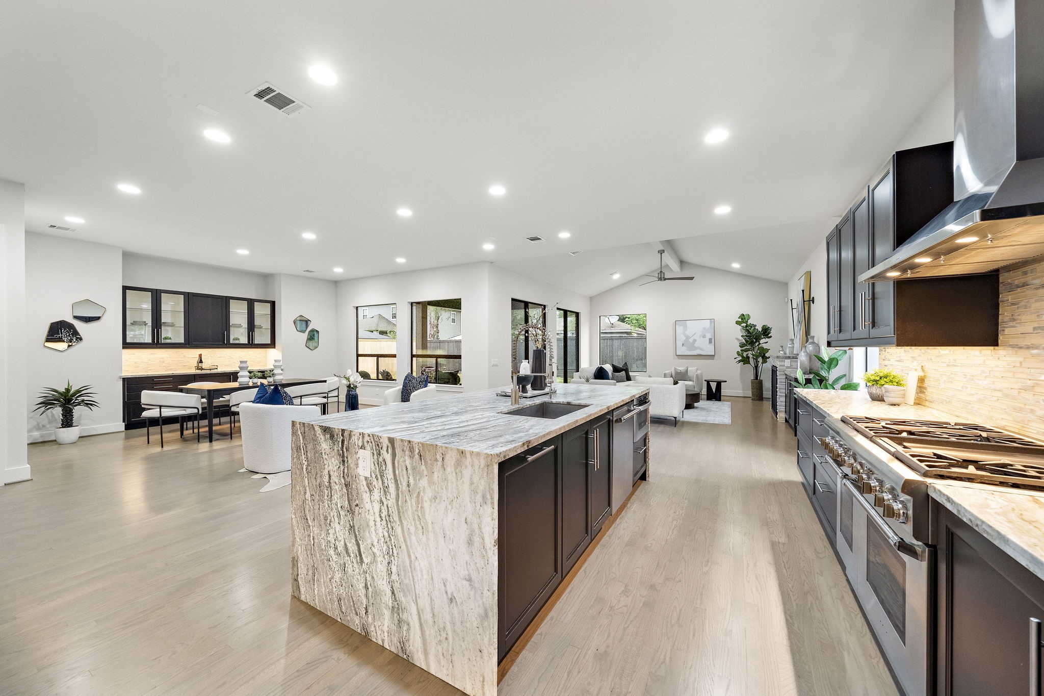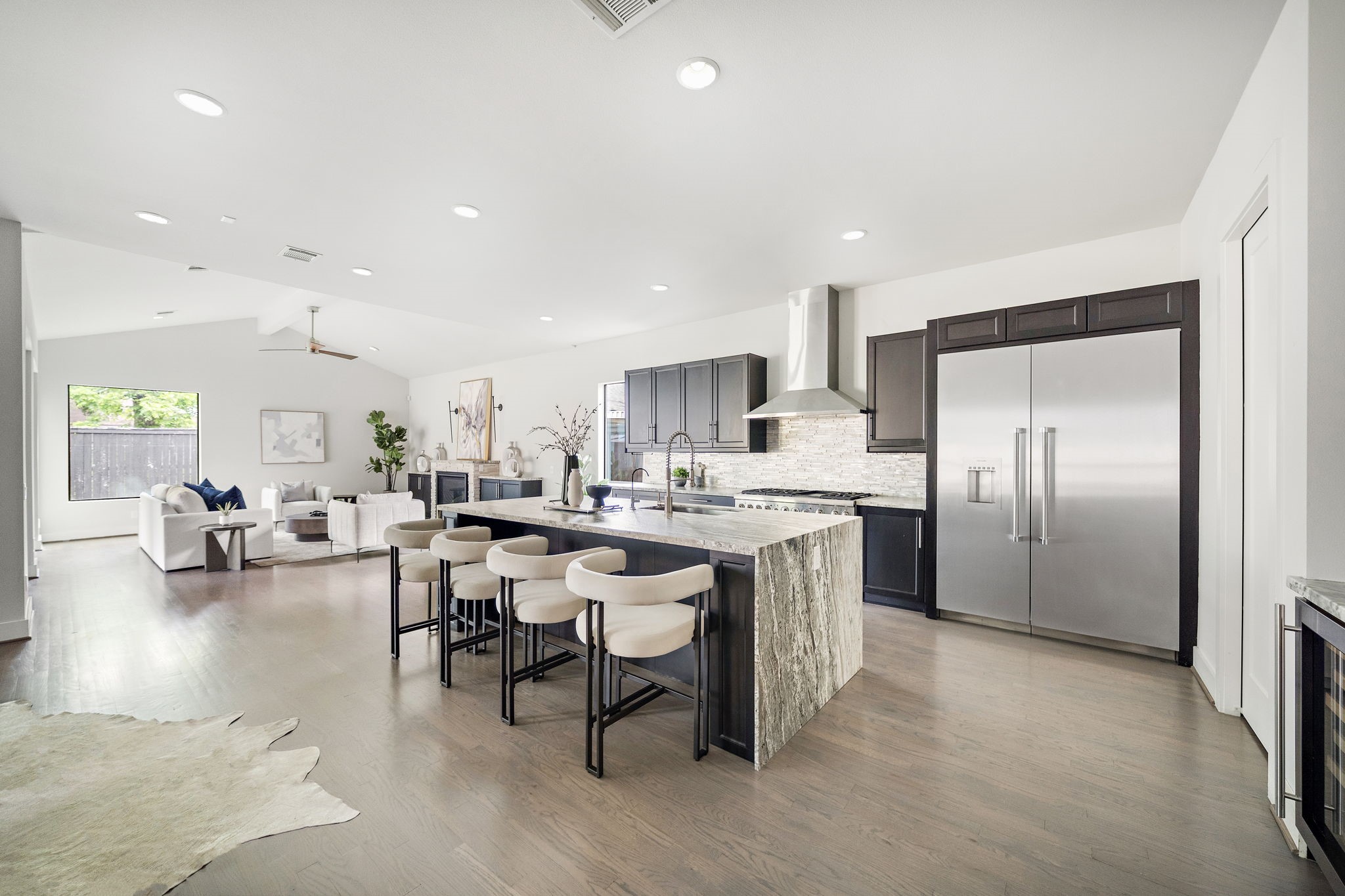 Sophisticated Contemporary Living in Oak Forest! This stunning executive home by Pavilion Builders in this highly sought-after neighborhood features 4-5 beds, 4 baths, & 3-car tandem garage, exuding modern elegance. An open floor plan filled w/ natural light showcases rich hardwood floors spanning the 1st floor and staircase, complemented by high-end finishes in every space. The kitchen boasts a large island, top-of-the-line Thermador appliances, a breakfast bar, & designer granite countertops. The primary suite is a serene retreat, bathed in abundant natural light that enhances its spacious feel. The luxurious bath includes dual sinks, a free-standing tub, and a glass-enclosed shower w/ designer tile surround. Upstairs, enjoy a versatile media or game room w/ built-ins and a private balcony. Step outside to a spacious backyard featuring an oversized covered patio, offering ample room for all your entertaining needs. Located near top-rated schools, parks, shopping, & dining!