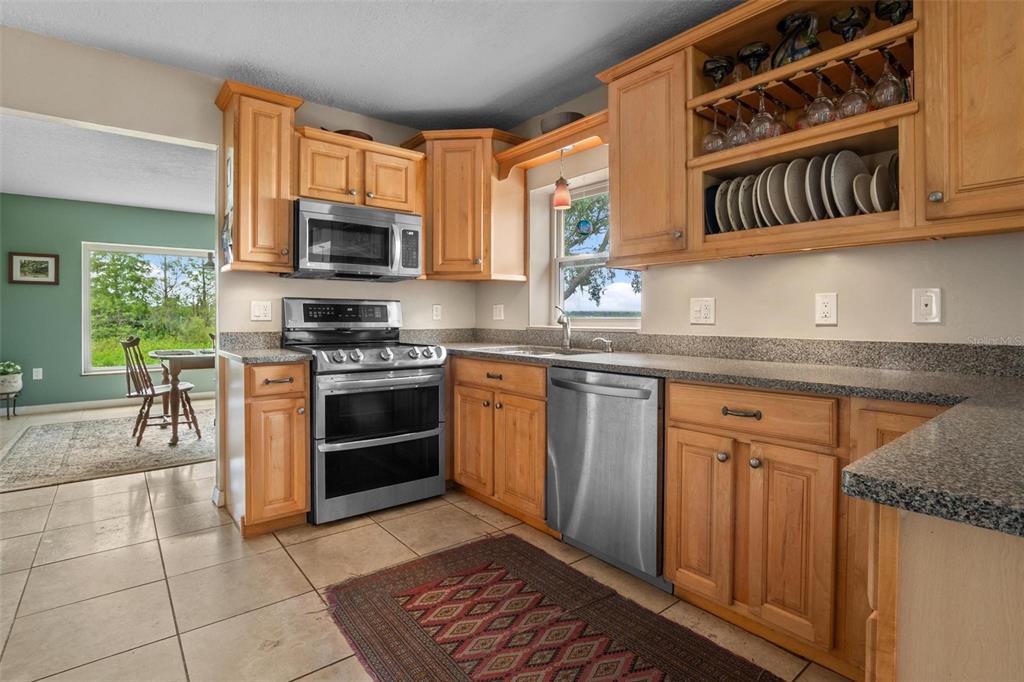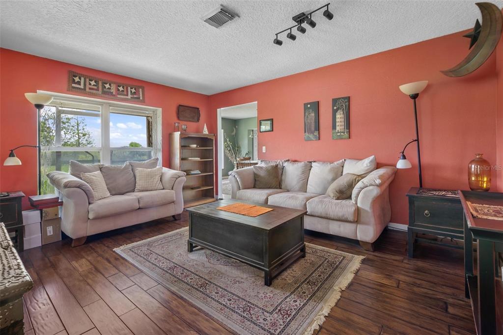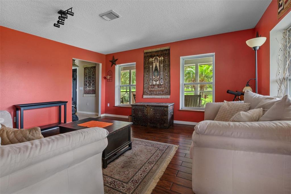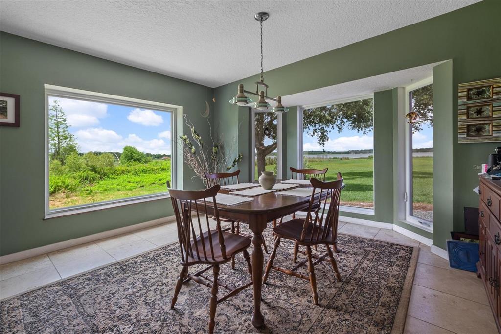 One or more photo(s) has been virtually staged. Discover your dream lakefront oasis on Lake Annie, where breathtaking sunrises greet you each morning and the world feels a million miles away. Situated on a private road, this stunning property boasts 5 acres of lakefront beauty adorned with mature trees, plus an additional fenced and gated 3.5 acres across the road, offering ample space and privacy with room for livestock. As you drive down the winding path, youll truly leave the world behind. The home features a natural color PebbleTec pool that seamlessly blends into the landscape, creating a perfect retreat for relaxation. The screen-enclosed pool area allows you to enjoy the crisp autumn breezes without the annoyance of bugs, while the screened front porch invites you to open the doors and let refreshing air flow through the home. Inside, the spacious open floor plan is accentuated by elegant travertine floors and Silestone engineered quartz countertops in the kitchen, complemented by huge windows that flood the space with natural light. The formal living room showcases engineered hardwood flooring, and the family room boasts a charming brick fireplace, creating a cozy atmosphere for gatherings. A formal dining room provides an ideal setting for entertaining. Ascend the extra-wide wood stairway to find an inviting open area crowned with a picture window that frames stunning lake views, where you can also catch glimpses of rocket launches in the distance. The upstairs area features luxury vinyl plank flooring throughout, including an en-suite bath in the master bedroom. This home is equipped with a generator transfer switch and generator for peace of mind, as well as a water filtration system for clean, refreshing water. With tons of storage and three interior rooms that can serve as protective shelters during hurricane season, this property is not just a home; its a sanctuary waiting for you to make it your own. Conveniently located just 2 miles from Highway 27, shops, and restaurants, this is the perfect blend of seclusion and accessibility.