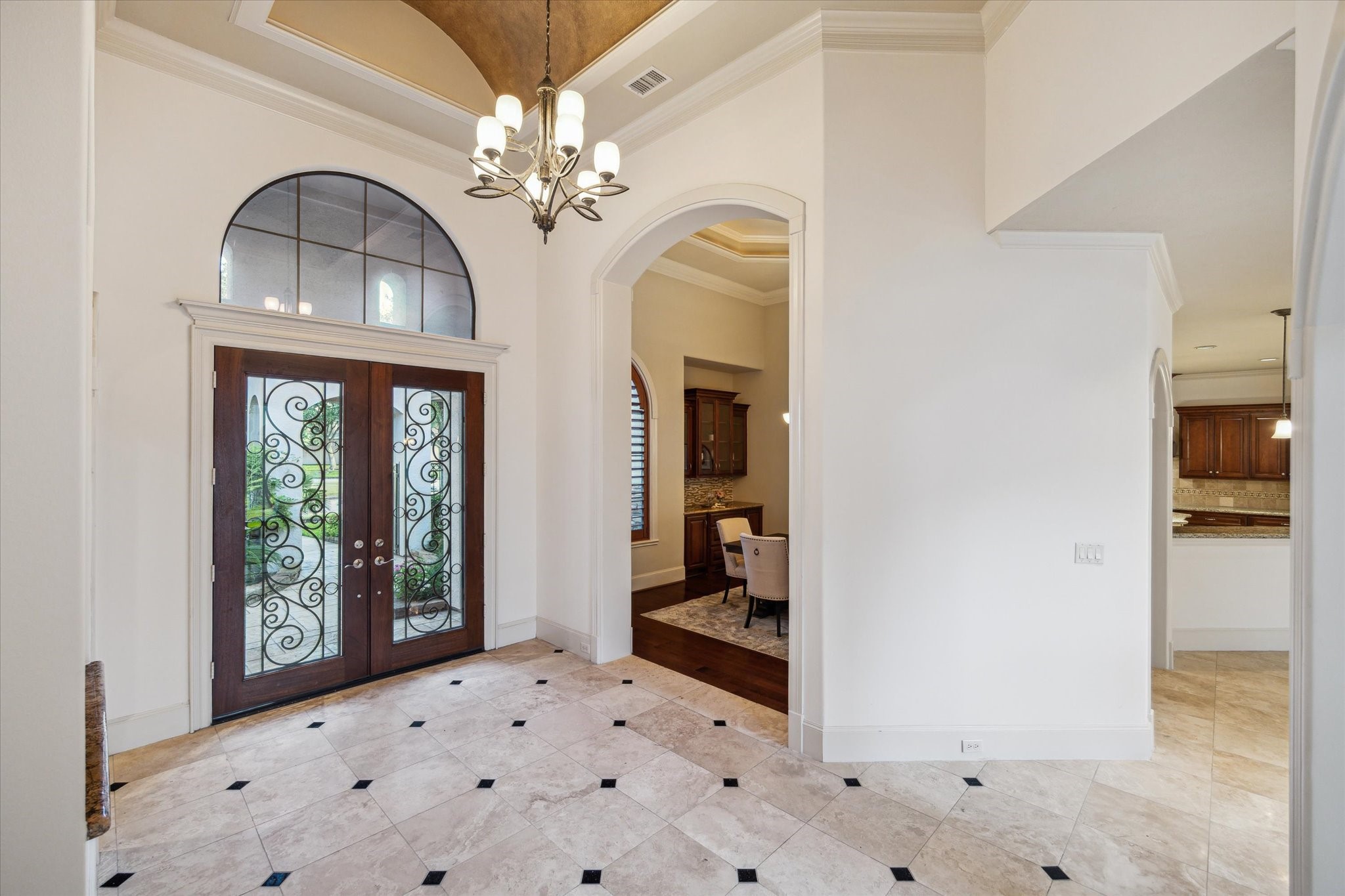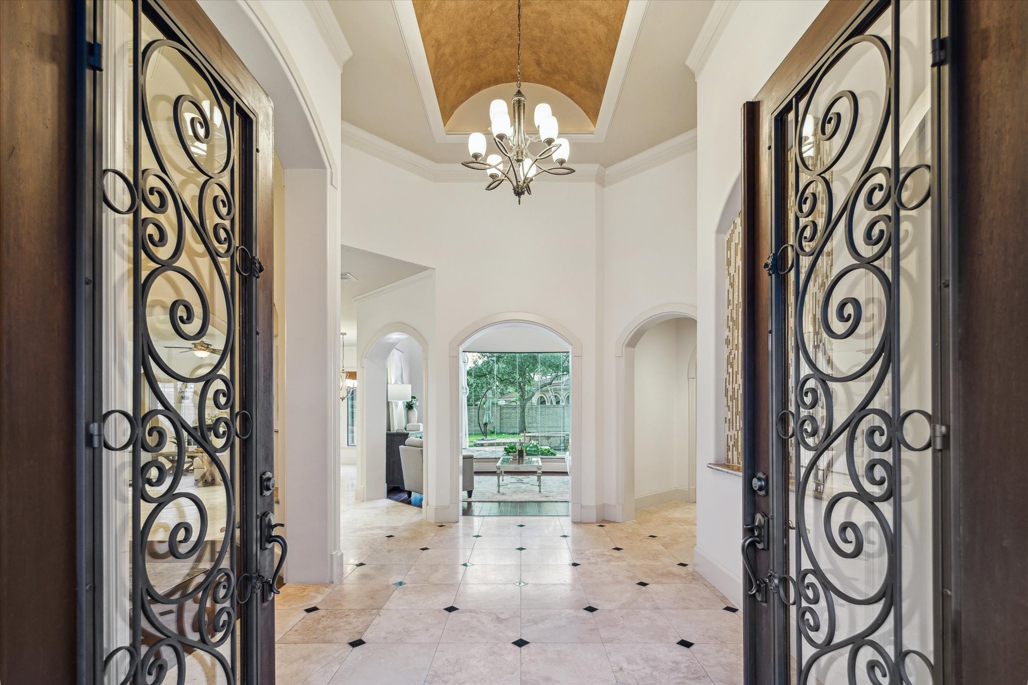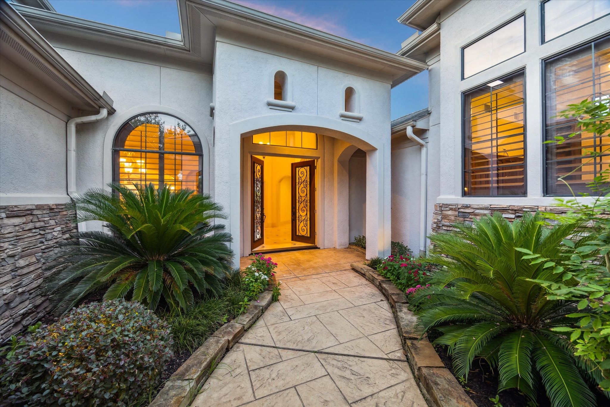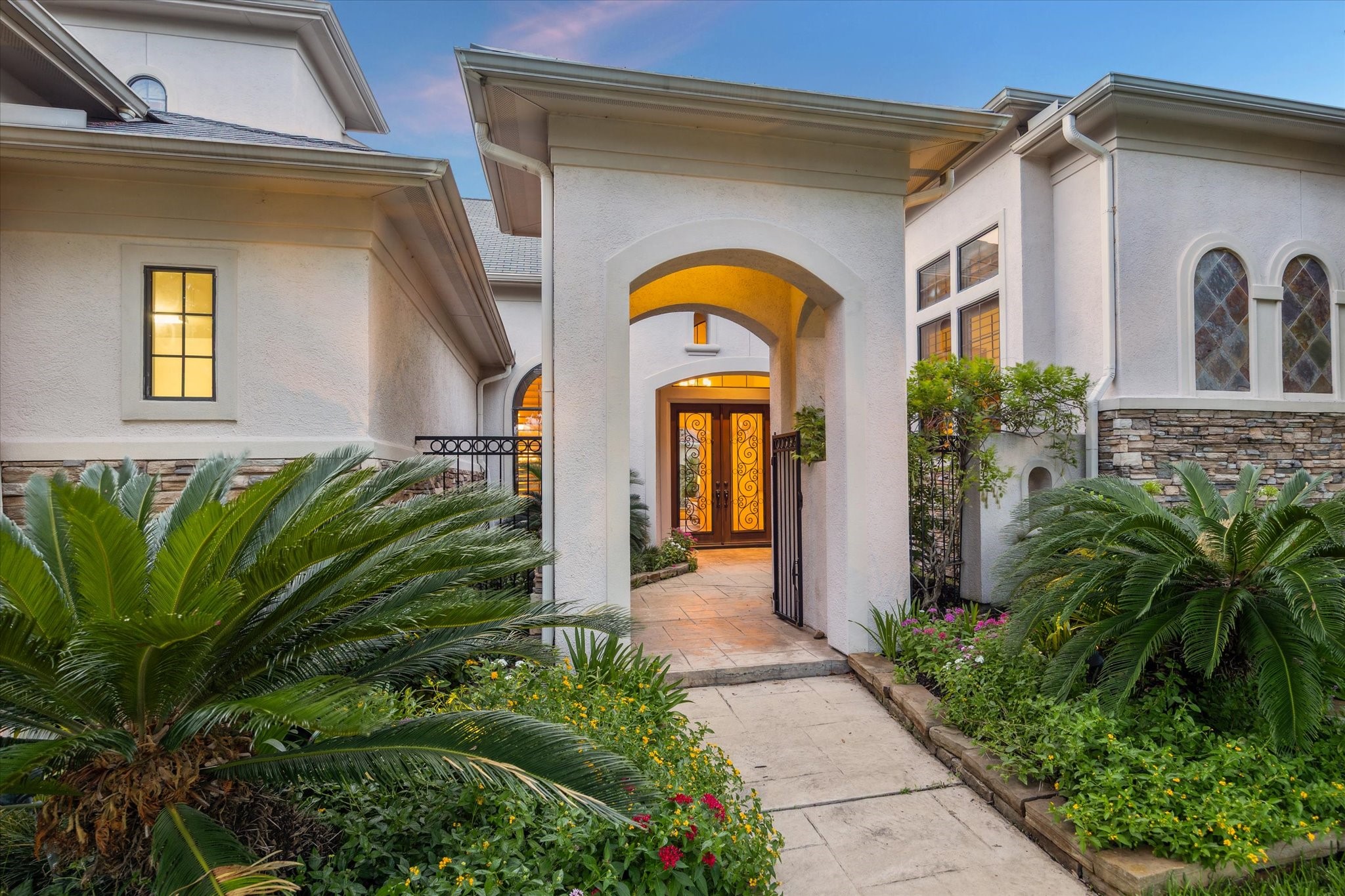 Magnificent Mediterranean custom-built residence in the exclusive gated community of Lakes on Eldridge North. This one-of-a-kind home features soaring cathedral ceilings, a luxurious grand formal living room, formal dining, an open-concept family room and gourmet kitchen, plus a private executive office. Designed for elegant living, the custom layout enhances natural light and offers seamless indoor-outdoor flowperfect for both relaxation and entertaining. The home offers four bedrooms, including a spacious primary suite and a sought-after secondary en-suite bedroom on the main floor. Upstairs are two additional bedrooms, a media room with murphy bed a refreshment bar, and a game room with direct balcony access overlooking the beautifully landscaped backyard and glistening pool. Outdoor living is elevated with a covered veranda and a fully equipped summer kitchenideal for luxurious entertaining. A truly exceptional property in a premier location.