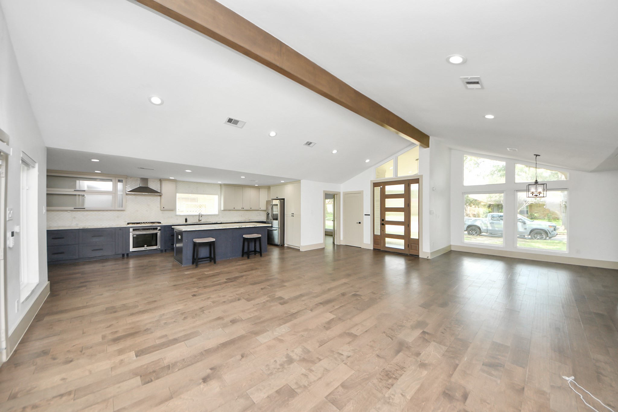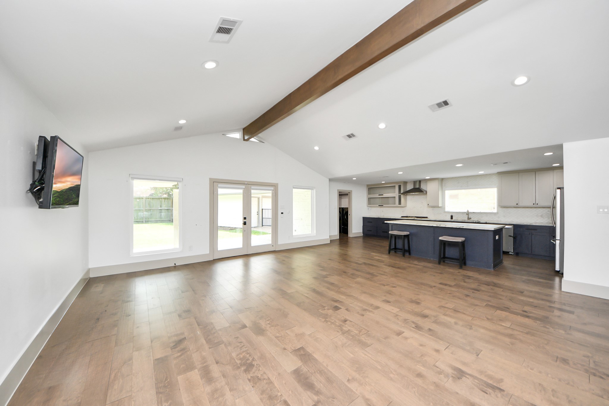 Gorgeous home in the highly sought after Meyerland sub. Conveniently located walking distance to Herod Elem & less than 5 min from Meyerland Plaza. Open concept floor-plan perfect for entertaining guests & keeping an eye on the kids. The living area connects to a covered patio and a huge backyard with room for a pool. NEVER FLOODED. Per Seller, home was gutted to the studs & completely remodeled in 2018 as follows; Gourmet Kitchen w/ Italian marble counters, oversize island, high-end SS appliances, custom cabinets with under-mount lighting & outlets. Primary bath with oversize shower. 1/2 bath. Solid wood doors and wood flooring throughout, electrical wiring & panel, PEX Plumbing, double-pane windows, 2 water heaters, roof with radiant barrier, duct-work, insulation, sheet-rock, wood siding. The current owners also added a Generac stand-by generator system, solar fans in attic, gutters around the home & garage, newer washer/dryer, Foundation repaired in 2024 with transferable warranty.