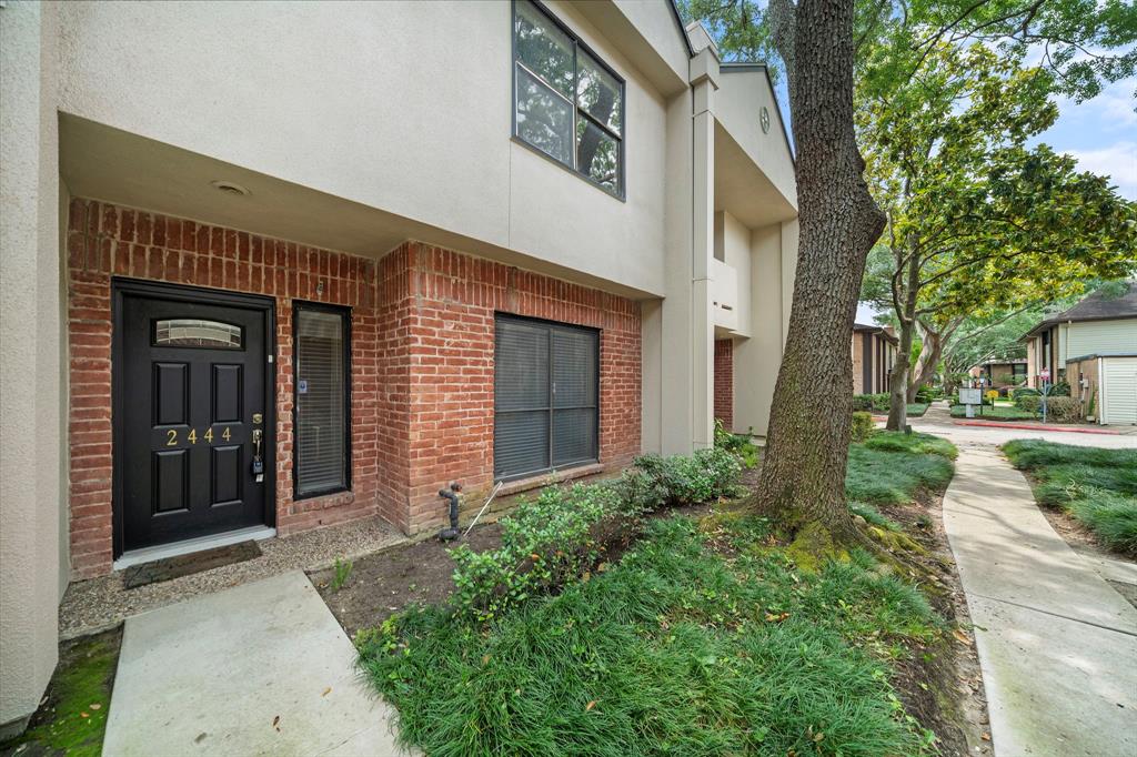 Stunning townhome in highly desirable area right in the heart of the Galleria at 2400 Bering! Open concept perfect for hosting guests. Features include Wood Flooring, Dry Bar with Plumbing Option for adding sink, Light & Bright Kitchen with Granite Countertops & Moveable Island, Wood Burning Fireplace. Double French Doors lead to Patio Area. 2 Car Garage with auto opener for extra storage. Primary Bedroom with En-Suite Bathroom, Granite Countertops, and Double Vanity. Large Walk-In Closets. Fabulous Community Pool and New Carpet on stairs & 2nd floor. Tucked away for privacy. **Washer/Dryer can stay, Refrigerator can stay**(updates carpet/paint 2025) Close to dining, shopping, and parks. Schedule a tour today before its gone!