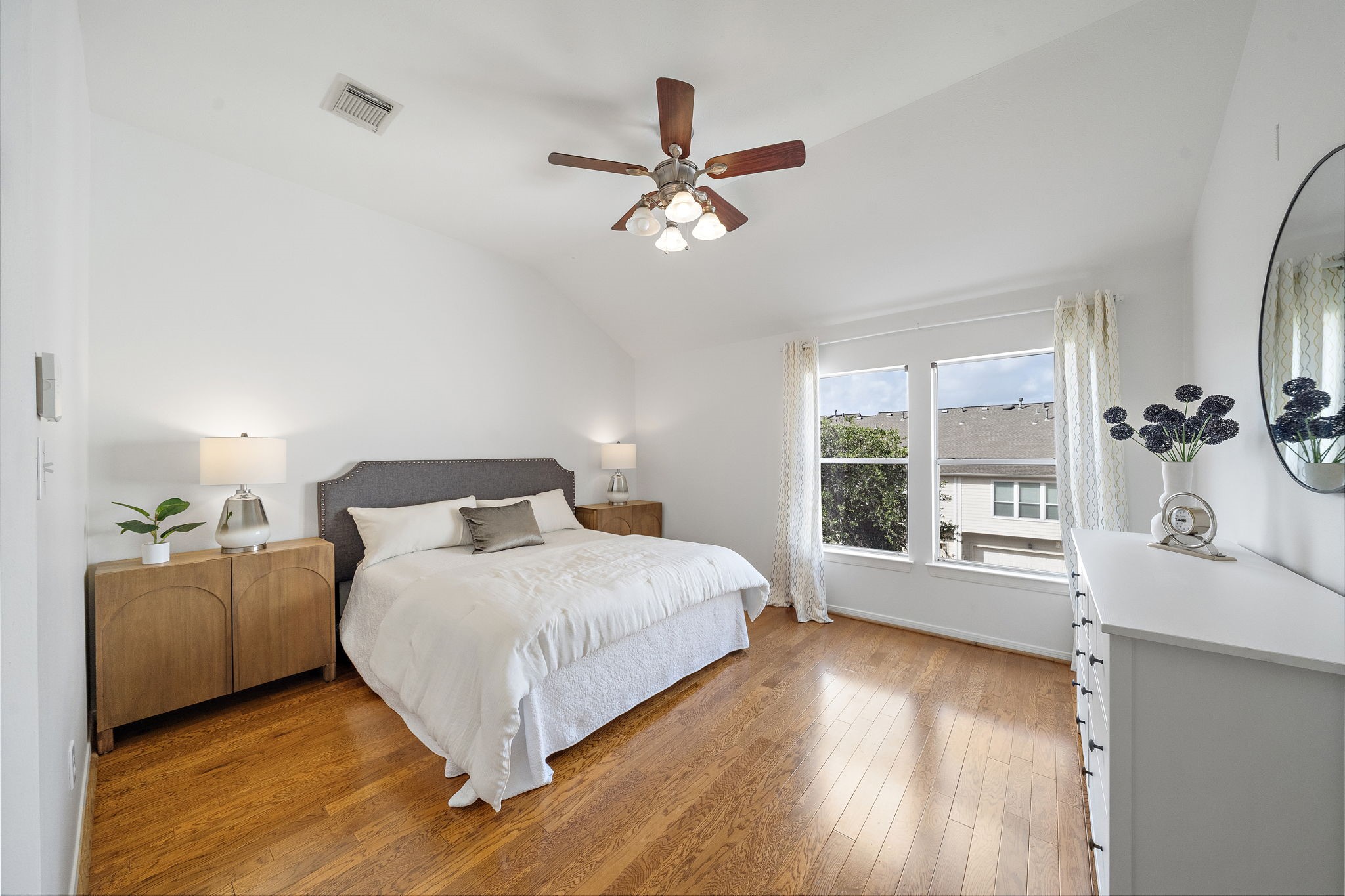 Step into charm in this delightful Perry Homes corner unit in the sought-after Rice/Museum District gated community! This low-maintenance, 3-story home welcomes you w/ a spacious, open layout that seamlessly blends comfortable living & smart design. The living area is filled w/ natural light. The kitchen impresses w/ granite countertops, abundant cabinetry & a spacious walk-in pantry for all your storage needs. Retreat to the primary suite, where youll find a dual sink vanity & walk-in shower for added comfort. The secondary bedroom is generously sized & located near the second full bath. A dedicated utility room enhances convenience. Enjoy the ease of low-upkeep living as well as the privacy of a gated entry. Located minutes from the best Inner Loop spots, museums, parks & top dining, with quick access to I45, I59 & Downtown for effortless commutes. Experience Houston living at its most charming!
