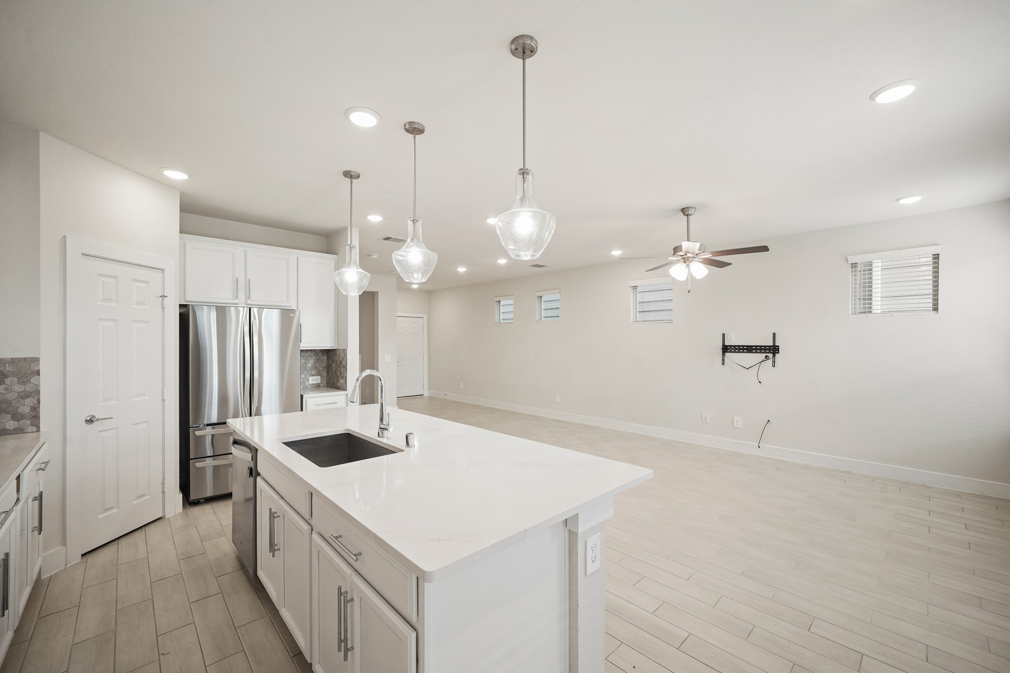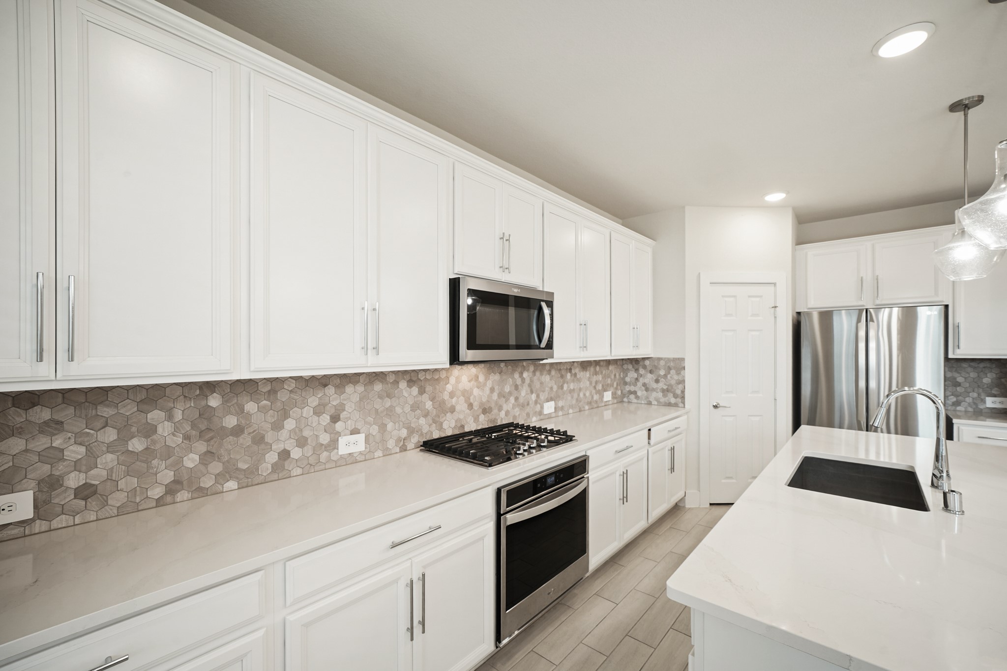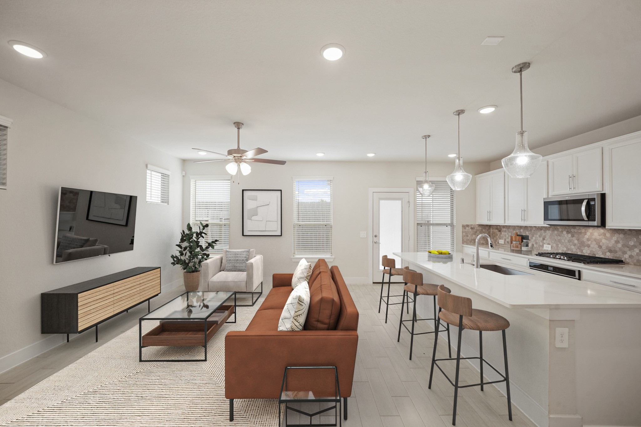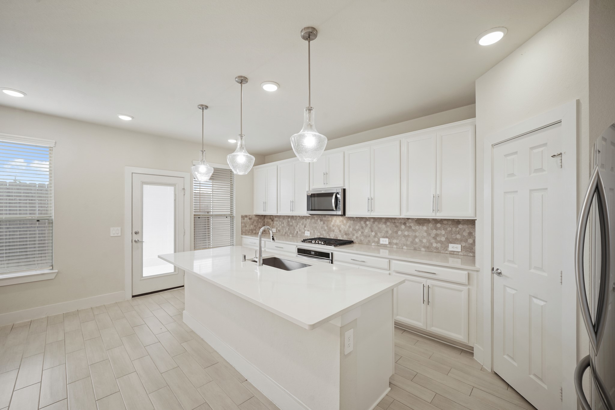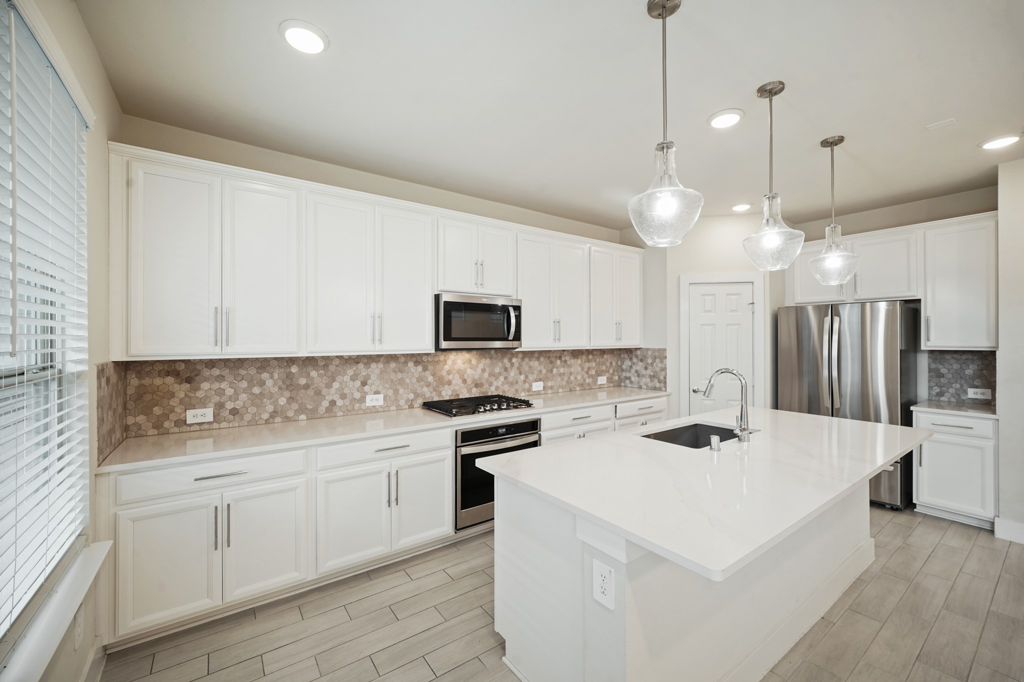 Bright & modern, this 2-story home in a serene gated Spring Branch community offers 3 beds, 2.5 baths, & an open-concept layout designed for everyday living. The spacious Family Room flows seamlessly into the Kitchen & Dining Room. Inset lighting illuminates the main living areas, while the Kitchen features a large Silestone island w/ stunning pendant lights, & a stylish mosaic backsplash. Wood-look tile spans the first floor, while vinyl plank flooring adds warmth upstairs. Upstairs Game/Flex Room provides space for entertaining or working from home. The Mudroom is thoughtfully designed w/ a built-in bench & hang space to stay organized. Step outside to a covered patio & enjoy an irrigation system that makes yard maintenance effortless. Convenient guest parking is available at the front of the community. Easy access to I-10, Beltway 8, 610 Loop, & Hwy 290, shopping, dining, & entertainment just minutes away! Washer, Dryer, Refrigerator stay! Water, Trash, Sewer included in HOA fees!