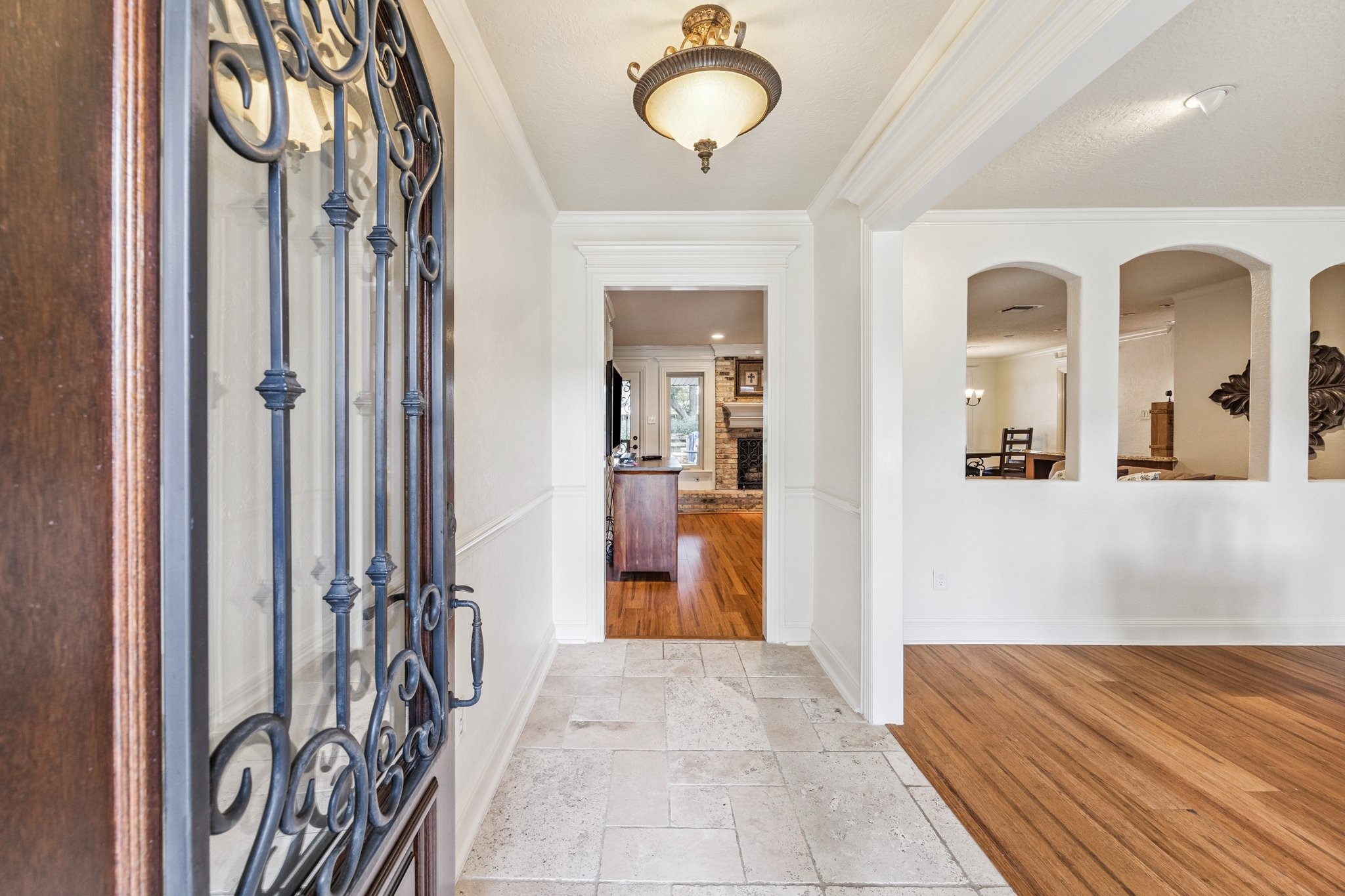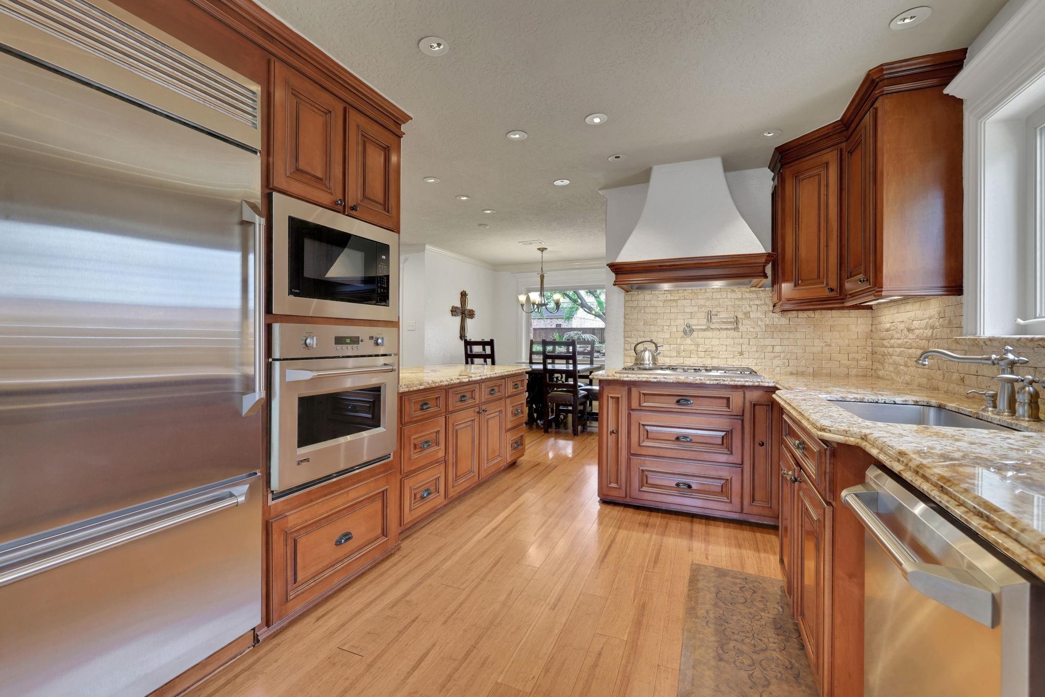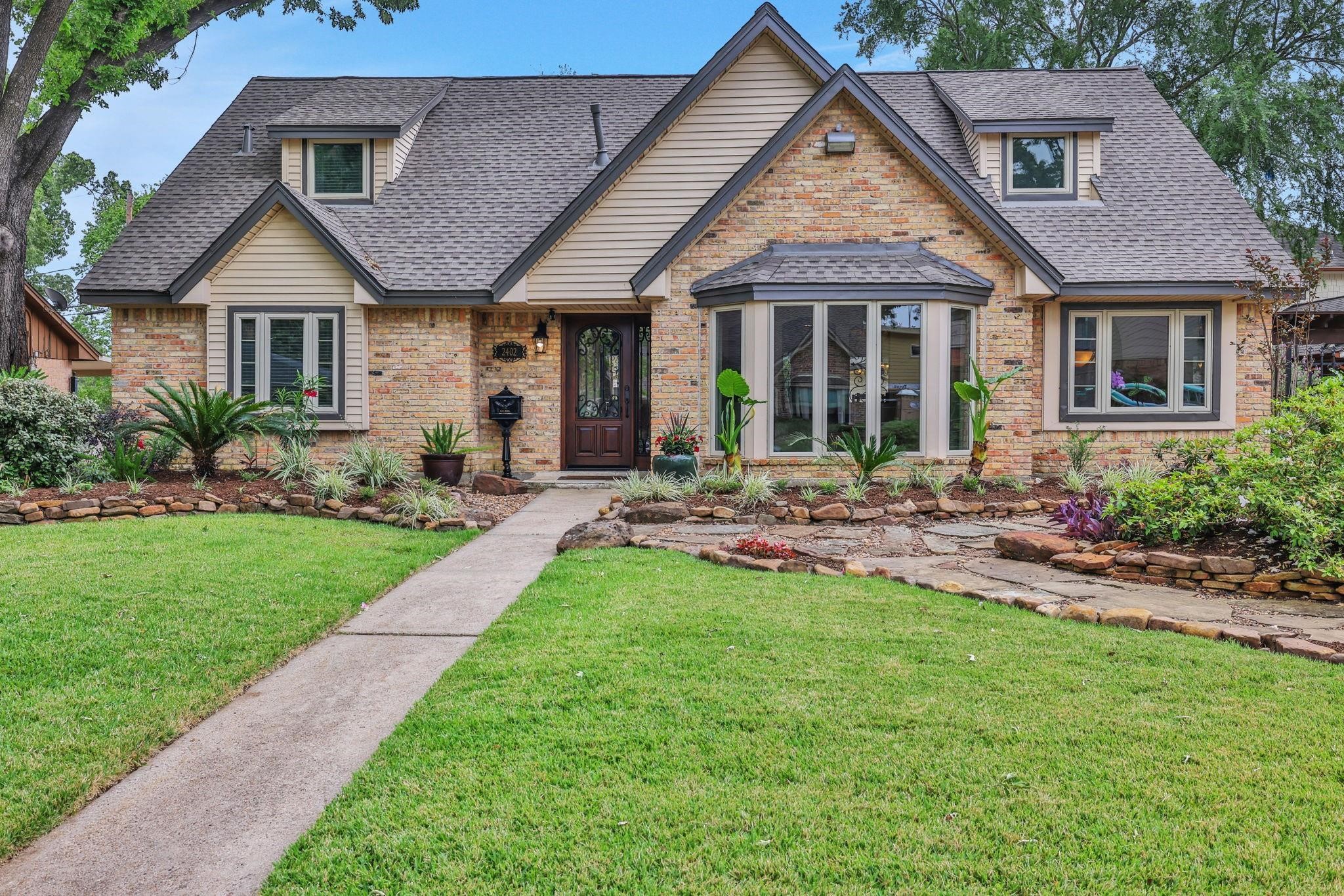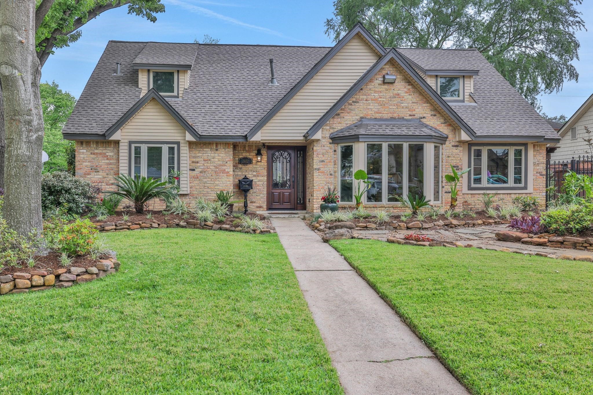 Timeless curb appeal and elegant interiors define this beautifully updated Lazybrook home. A classic brick exterior, lush landscaping, and inviting front porch set the tone. Inside, hardwood floors lead through formal living and dining rooms into a warm family room with a gaslog fireplace. The kitchen blends style and function with granite counters, stainless steel appliances, and custom cabinetry. The expansive primary suite features multiple closets, a renovated en-suite bath, and a private sitting area or study. Upstairs, spacious secondary bedrooms offer flexibility for guests, work, or play. Step into your private backyard retreatcomplete with a sparkling pool, spa, covered patio, and mature greenery. A detached garage includes a workshop, full pool bath, and generator-ready pad. Home also includes fresh paint, an electronic driveway gate, covered parking. This is a home that balances traditional character with modern comfort in one of Houstons most desirable neighborhoods.