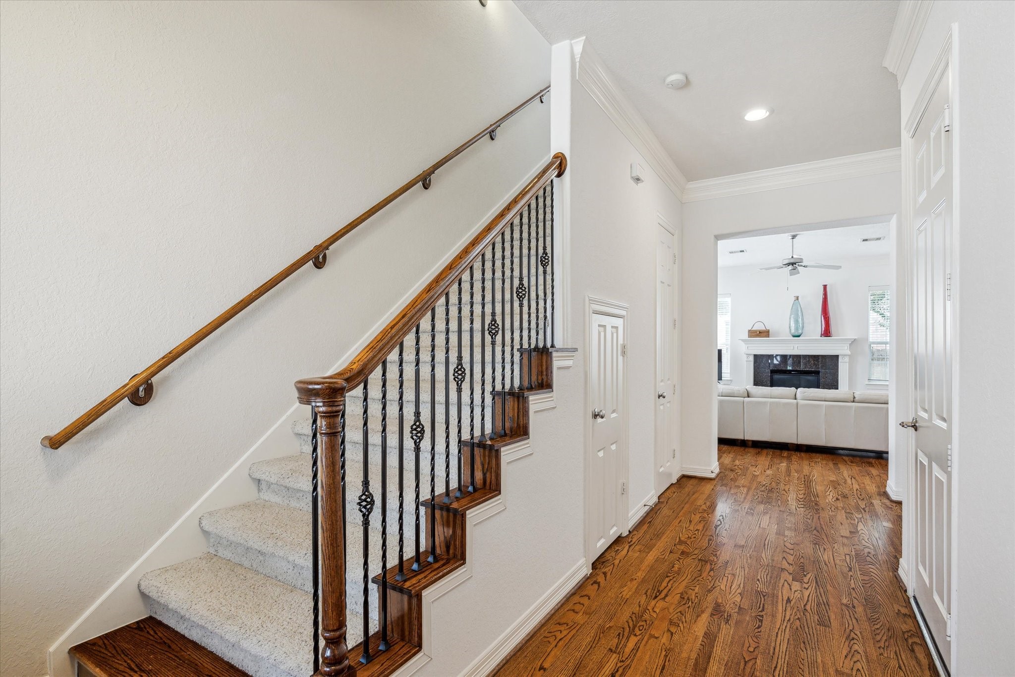 Discover the epitome of privacy and sophistication in this stunning 3-story corner townhome, ideally located in the heart of the Westchase District within the gated community of Westchase Trails. Showcasing timeless brick architecture with contemporary interiors, this residence offers 4 bedrooms, 3.5 baths, & expansive living spaces designed for todays lifestyle. The main level impresses with soaring ceilings, rich wood floors, & walls of windows, with an open layout that seamlessly connects the formal dining, living, & chefs gourmet kitchen featuring custom cabinetry, endless counter space, designer tile backsplash, & a striking island with direct access to the backyard. The 2nd floor hosts a luxurious primary suite with spa-inspired bath & boutique closets, plus 2 secondary bedrooms, shared bath, 7 laundry. The third floor offers a versatile game room with a full bath & a walk-in closet, easily serving as a 4th bedroom retreat. Perfect blend of luxury & low-maintenance living.