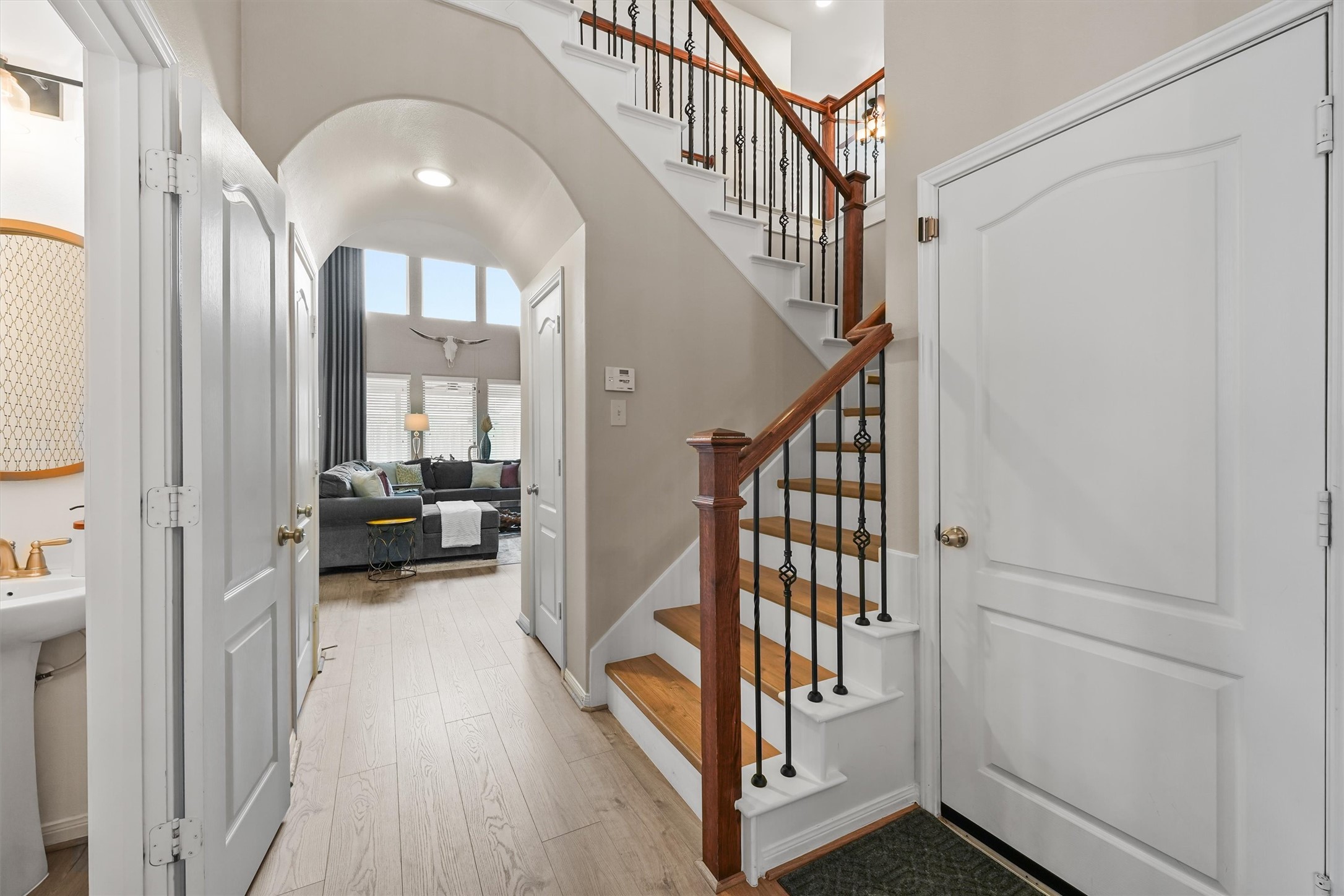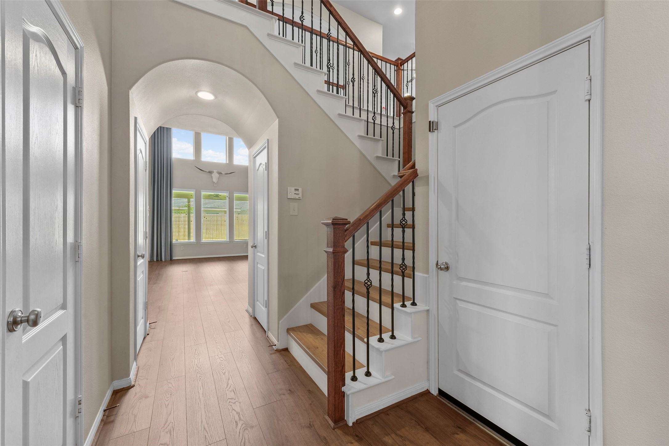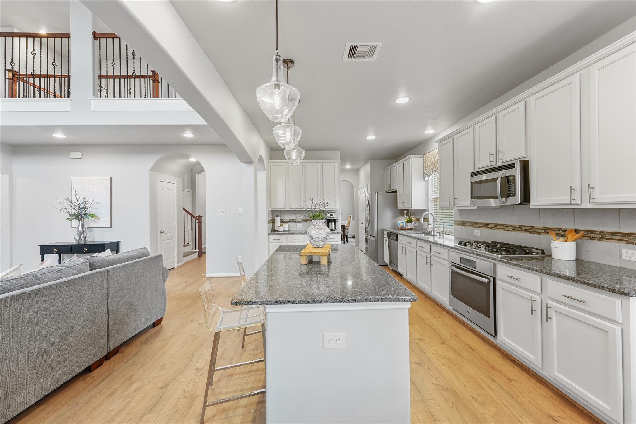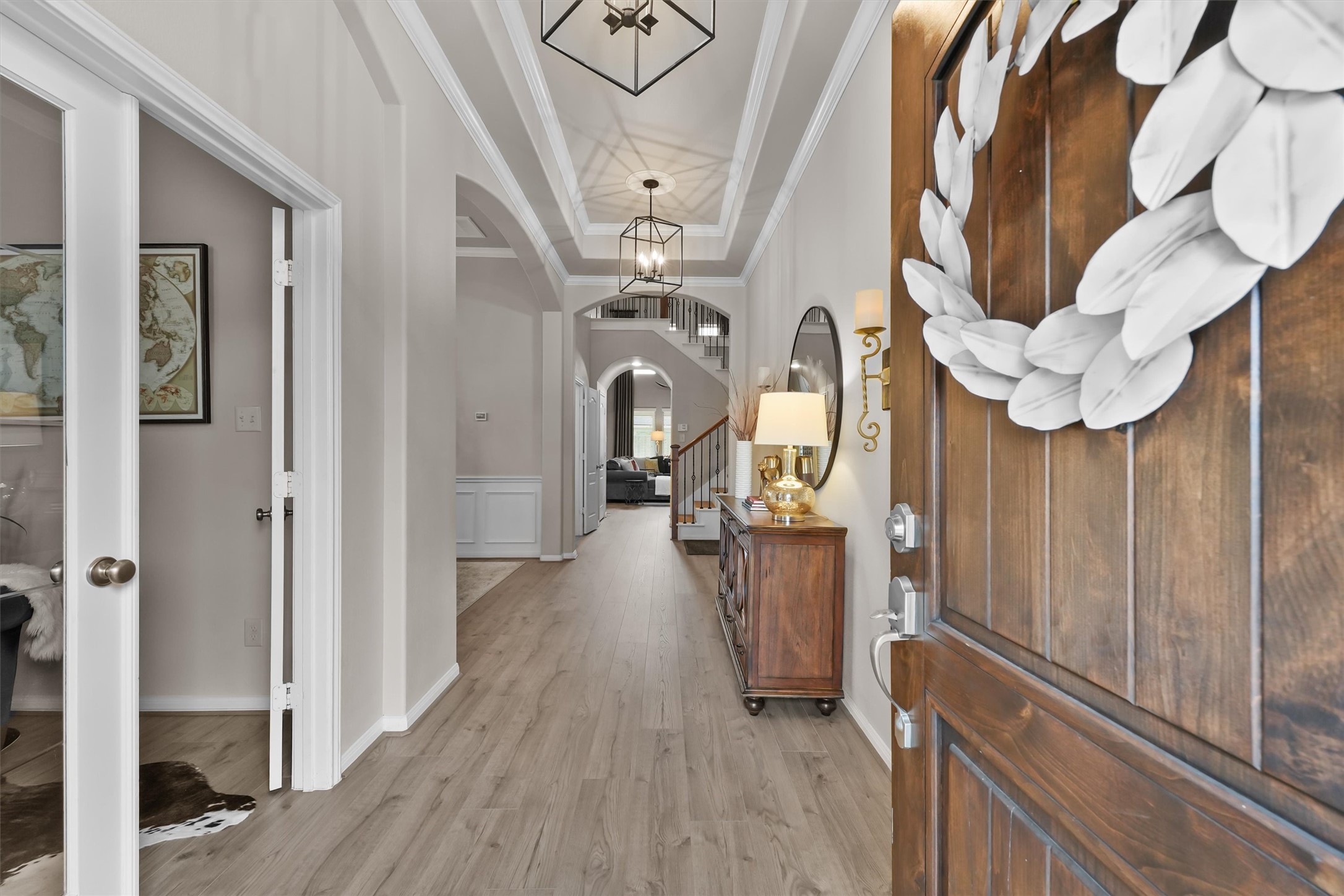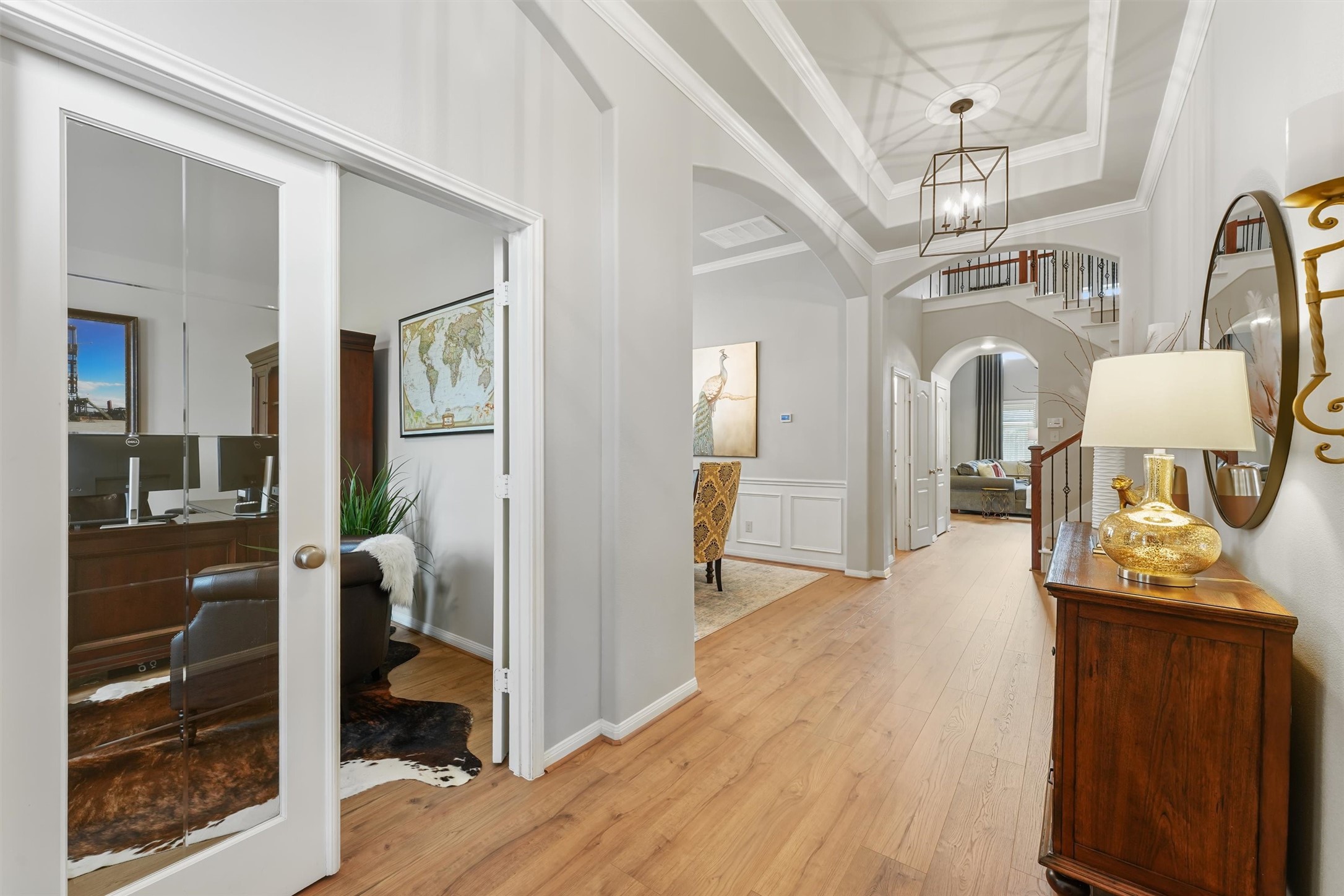Step inside and prepare to be wowed. From the warm, light oak floors to the soaring ceilings and elegant crown molding, every detail of this home feels thoughtfully designed and beautifully finished. Custom light fixtures add just the right touch of charm and sophistication. Whether its hosting holiday dinners in the formal dining room, working from the comfort of a private home office with French doors, enjoying cozy movie nights in the media room, or cheering on your team in the upstairs game roomthis home is made for living and entertaining in style.The heart of the home is the chefs kitchen, featuring granite countertops, soft-close cabinetry, and designer fixtures that make every meal a joy to prepare.vvAnd for added value and comfort? A whole-home water filtration and softener system is already in place. Homes with this level of character and care dont come along every daydont miss your opportunity to make it yours!