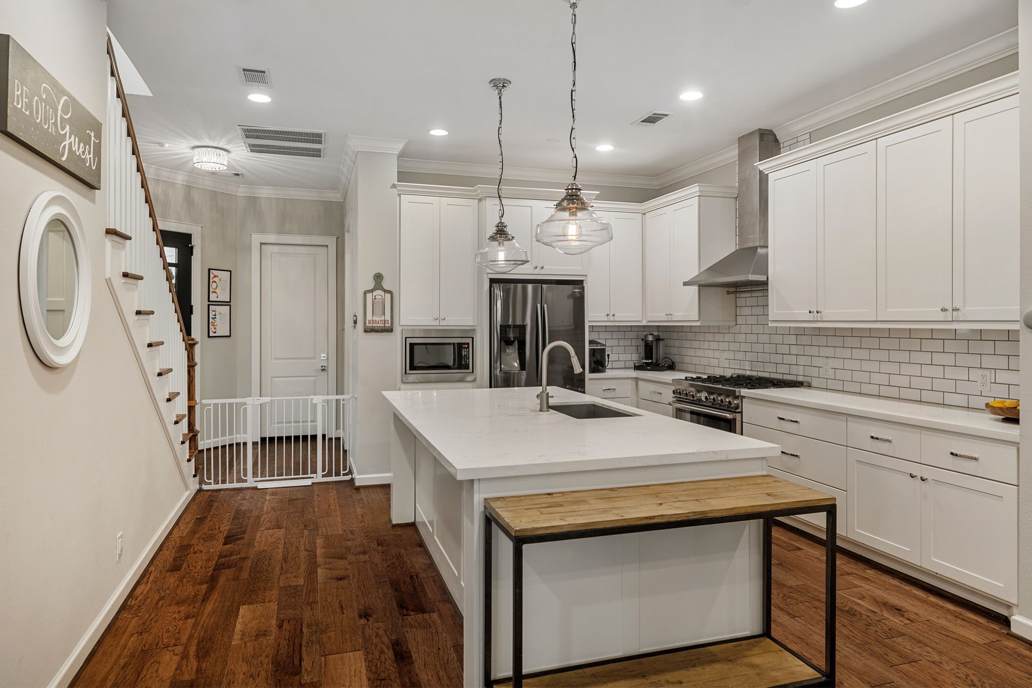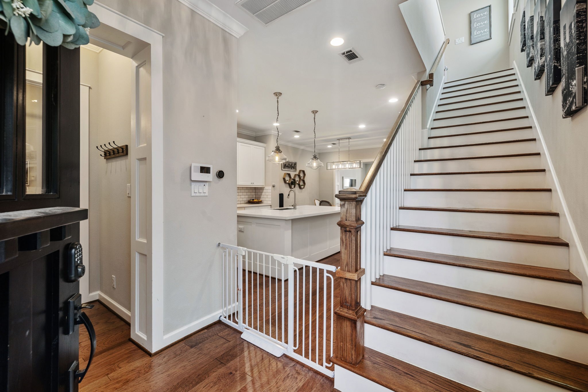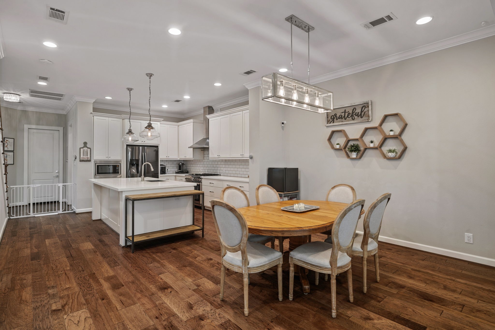 Experience the best of Sunset Heights in this 3-bedroom, 3.5-bath home with a private driveway and rare yard space. Designed for entertaining, the open living area flows to a covered patio perfect for outdoor dining and gatherings. The chefs kitchen boasts sleek white cabinetry, quartz counters, and ample storage. Beautiful wood floors throughout first floor. Upstairs, a versatile game room offers extra living space, while the luxury primary suite features a spa-like bath and oversized walk-in closets with custom built-ins. Every bedroom includes its own en-suite bath, giving comfort and privacy for family or guests. With modern finishes, high ceilings, and thoughtful design throughout, this home combines style with everyday convenience. Walk to Tenfold Coffee, family owned bakery, neighborhood market, & Heights Hike & Bike Trail. Youll love the walkable neighborhood feel paired with unbeatable city access. Sunset Heights living at its finest!