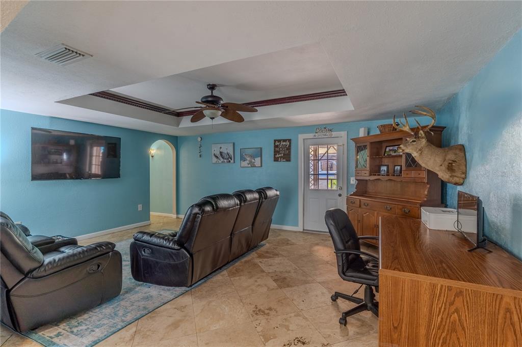 Discover your dream home in the heart of South Lake Wales with this stunning three-bedroom, two-bath residence, conveniently located near Warner University and Bok Academy. This meticulously maintained property boasts tile flooring throughout, creating a seamless flow in the open floorplan, highlighted by a charming tray ceiling in the living room that adds a touch of elegance. The expansive master suite features a generous walk-in closet and a full en suite bath with double sinks. The modern kitchen is equipped with brand new stainless steel appliances, perfect for culinary enthusiasts. Step outside to your private screened lanai that opens up to a backyard oasis, featuring a recently installed above-ground pool with a decking area, a relaxing jacuzzi, and a charming fire pit surrounded by thriving fruit trees, including bananas and mangoes. Recent upgrades include a new roof and air conditioner installed in 2023, a water heater that is just five years old, an updated electrical panel from 2021, and new windows throughout the home. Solar panels are also in place and payments to be assumed by buyer at closing, enhancing energy efficiency and sustainability. This home is a true gem, offering a perfect blend of comfort, style, and outdoor living in a prime location.