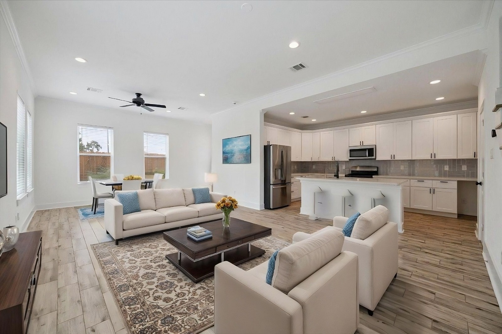 Welcome to your new home. 5 min from TC Jester Park and the White Oak Bayou bike trail, this thoughtfully designed modern farmhouse offers a perfect balance of style, functionality, & location. With 3 spacious bedrooms & 2.5 bathrooms, the home features quartz countertops, sleek black hardware, stainless steel appliances, and smart home technology throughout. The oversized two-car garage has 8-foot-high doors for larger vehicles & includes an electric car charger. A private driveway and fully fenced backyard offer rare outdoor space and privacy in the city. Seller upgrades include a patio garden oasis for year-round enjoyment, a media screen system in the game room, and a home water filtration system for clean, fresh water. With quick access to I-45, 610, & 290. Its just minutes from Downtown. This home offers easy connectivity and a comfortable lifestyle tailored to modern living. If you would like to experience the home, tour, or want more information contact Dillon.