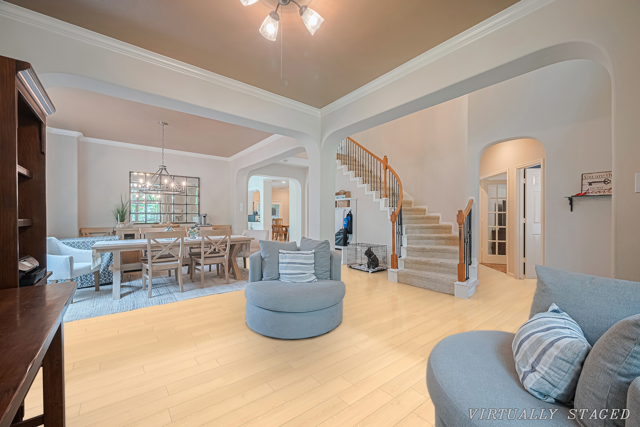 Premium Upgrades for Energy Reliability! No front or back neighbors. This elegant 5-bed, 4.5-bath home features a stately brick elevation, 3-car-wide garage with serene one-way street access. Enjoy four en-suite bedrooms, a first-floor guest suite, and a recently renovated spa-inspired primary bath. The chefs kitchen is equipped with GE Profile appliances, convection oven, and reverse osmosis water system. Entertain effortlessly with two gas log fireplaces, an expansive game room with wet bar, and a double-level media room with screen, projector, and floor lightingall included! Outdoor living shines with a screened-in porch, flagstone patio, gas lamps, and a built-in grill. Modern upgrades include EV outlet, generator-ready transfer switch, tankless water heater, whole-home water filtration, Nest thermostats, upgraded 200Amp panel, soft-start ACs, and surge protection. Roof (~7 yrs), HVAC (~2 yrs), fence (~1 yr), bath (1 month). 3D tour availableschedule your private tour today!