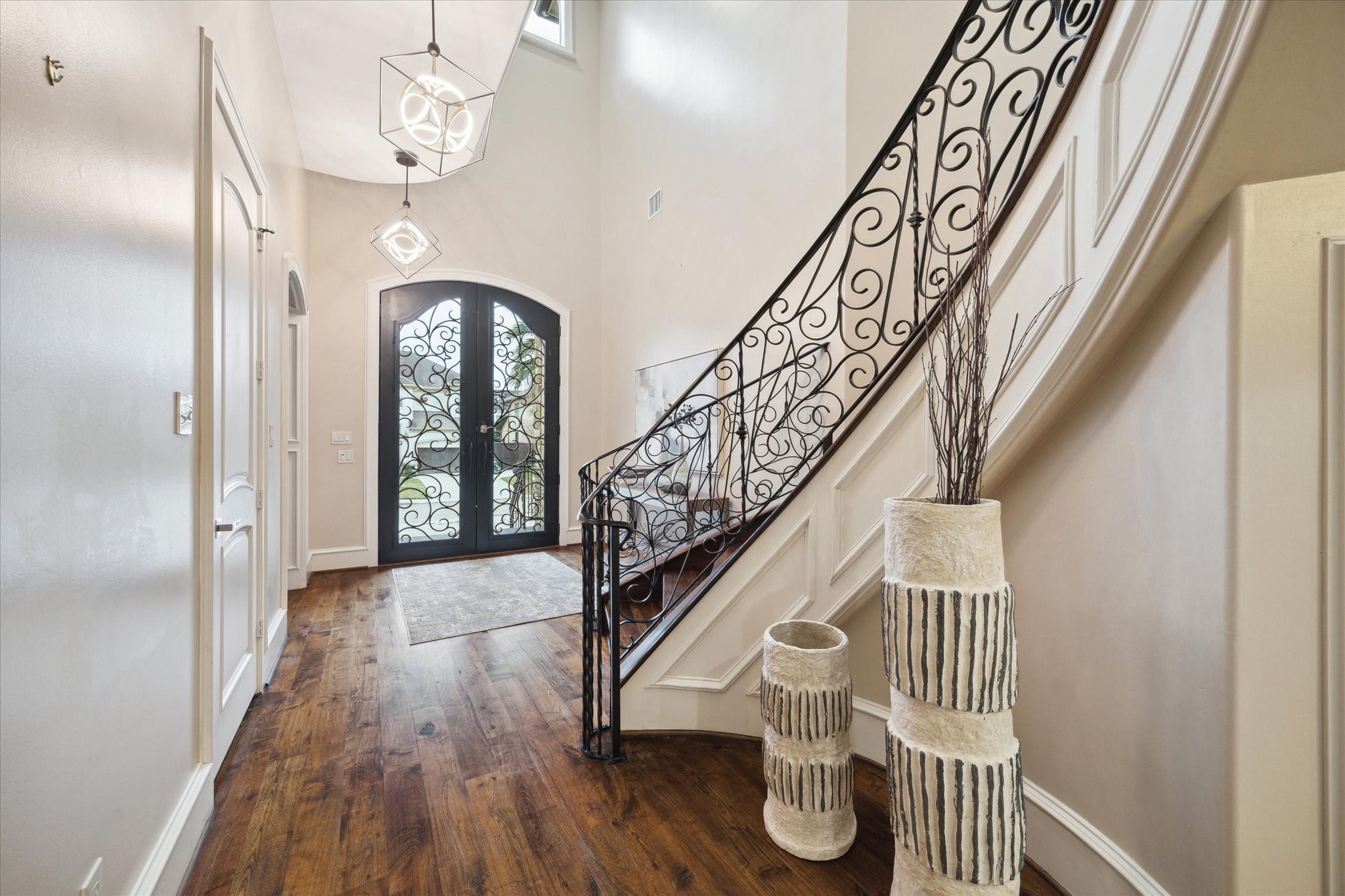Experience one-of-a-kind modern living in this striking three-story corner single-family home, prime Location within walking distance to Texas Medical Center & Rice University. Featuring 4 bedrooms and 3.5 baths, the residence is filled with natural light from floor-to-ceiling windows and offers a bright, airy layout.The first floor showcases an open-concept living, dining, and chefs kitchenperfect for everyday living and effortless entertaining. Upstairs, the second floor hosts all four spacious, contemporary bedrooms, while the third floor includes a flexible office or studio space and access to a large rooftop terrace with sweeping city views.A fully fenced oversized backyard provides an outdoor oasis with a private pool, lush green space, and a detached two-car garage. The sleek stucco exterior and distinctive curved front wall create exceptional curb appeal.