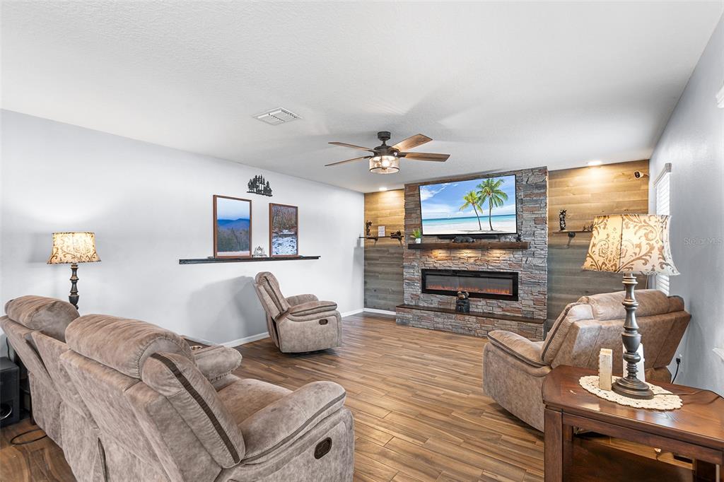 One or more photo(s) has been virtually staged. This updated 3 bedroom, 2 and a half bath home with a loft is packed with charm, updates, and space for everyone. Inside, youll find new flooring, a refreshed kitchen, fresh paint, and an updated primary bath that feels like a retreat. The family rooms custom fireplace adds warmth and character, creating the perfect spot to gather. The thoughtful design includes tons of storage throughout, plus a new AC for peace of mind. Step outside to enjoy the huge yard and vinyl privacy-fenced backyard, ideal for pets, play, or entertaining. All this comes with an unbeatable location with an easy commute to Tampa or Orlando while still enjoying the space and comfort of a true home setting. Move-in ready with modern updates and timeless appeal, this home is one you dont want to miss.