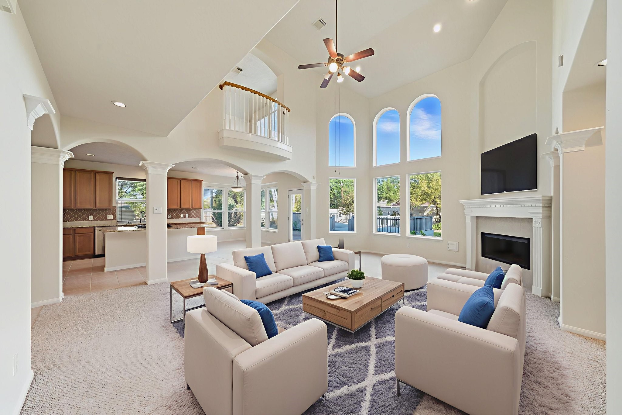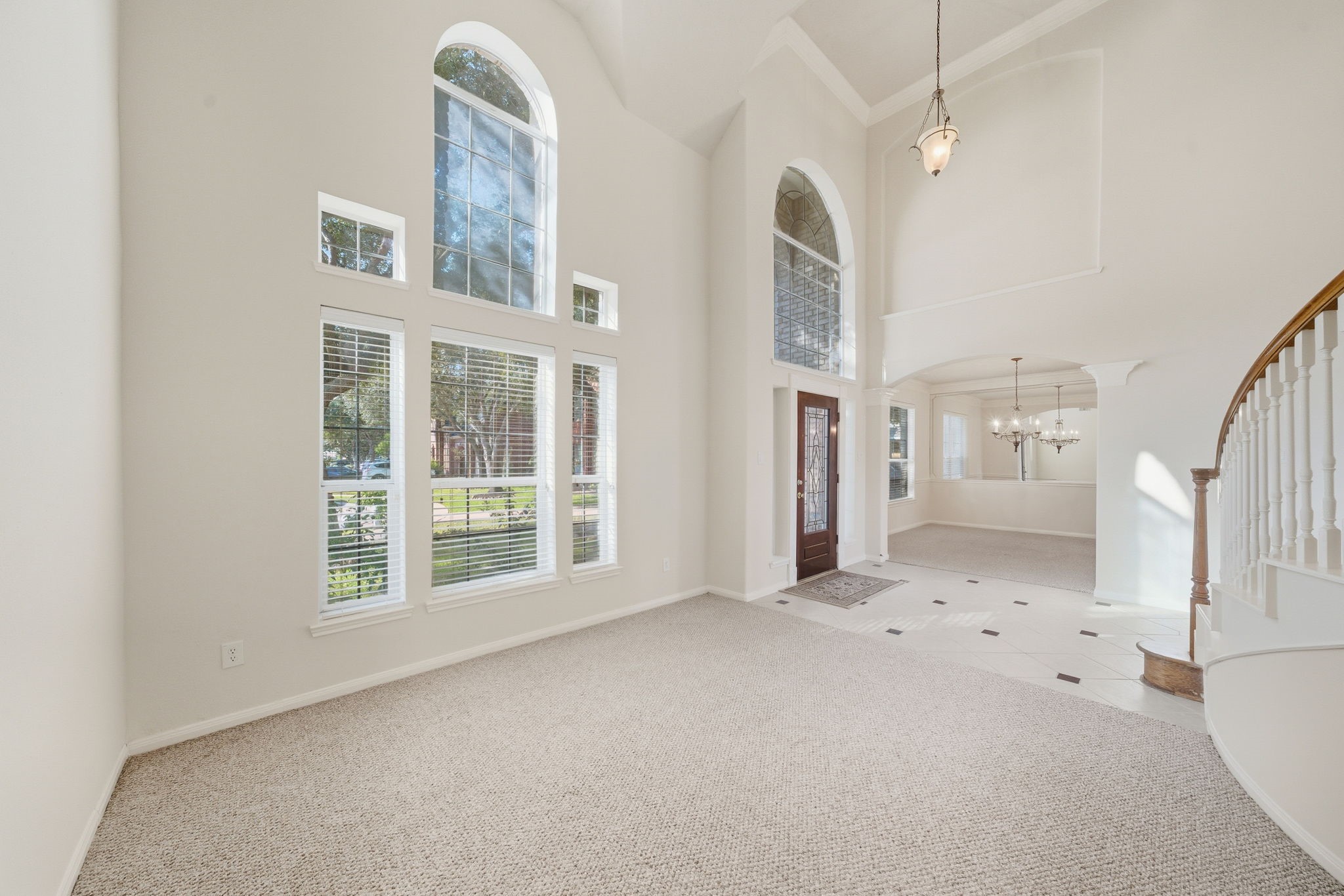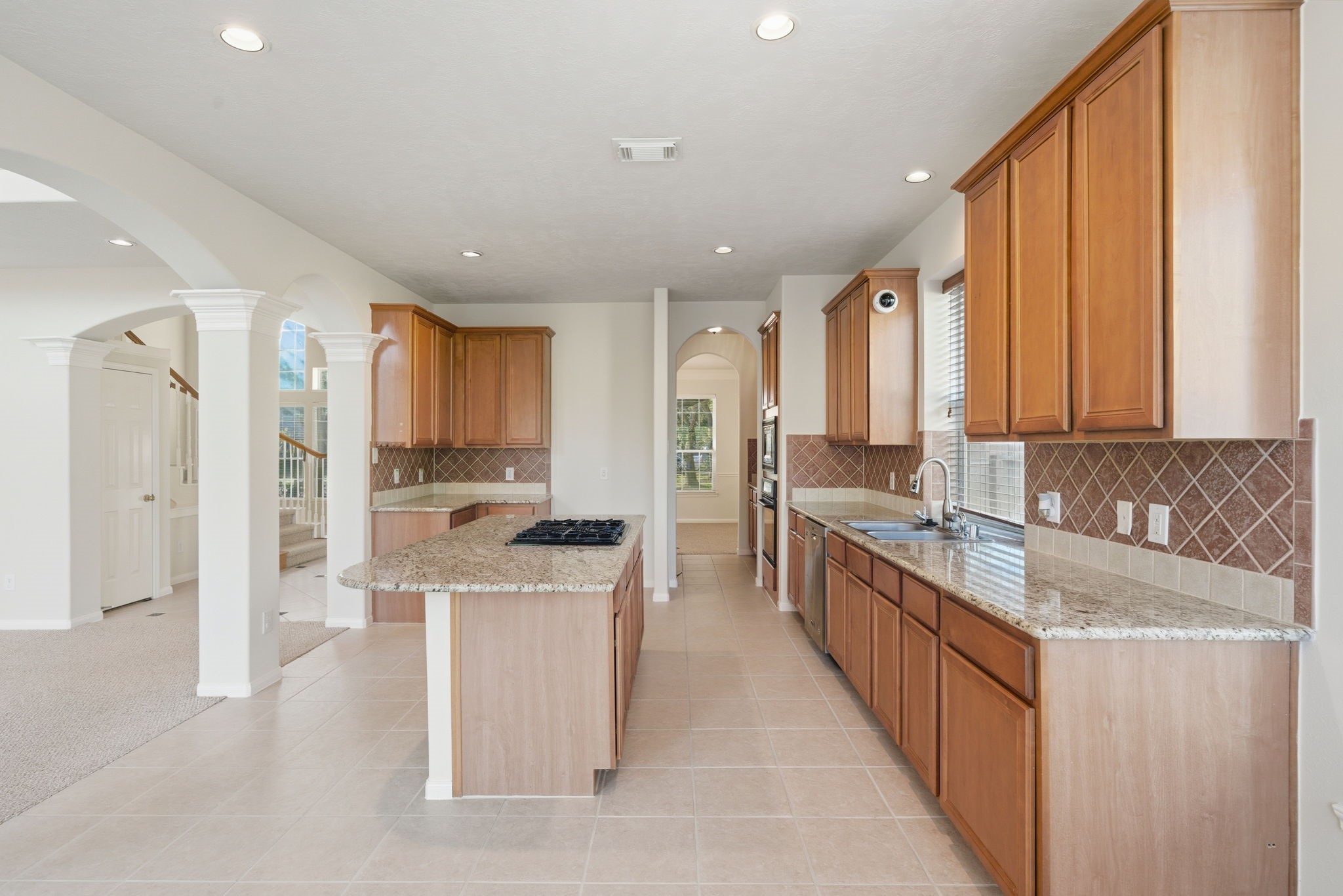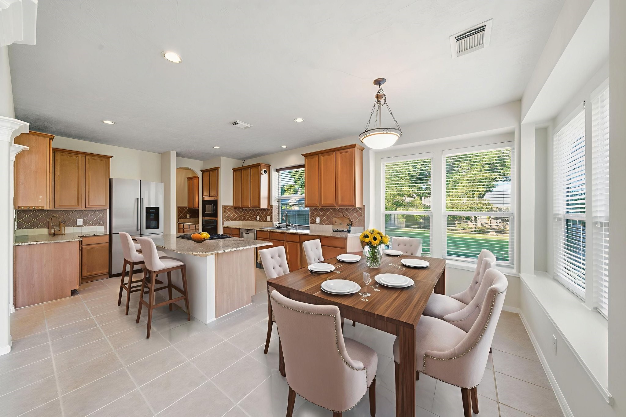 Step into your own spacious retreat with this stunning home boasting four generous bedrooms, 4.5 baths, and elegant touches throughout. Soaring ceilings and tall windows flood the space with natural light, connecting the living room to the kitchen. The first-floor primary suite offers luxury with a spacious layout and double sinks. Upstairs, privacy is ensured with three additional bedrooms, each with a full bath, and a generous game room. The backyard is perfect for weekend entertaining on the large deck, overlooking a beautiful fishpond and vibrant flowers. Recent updates include a new upstairs A/C unit for worry-free living. Luxurious sanctuary designed for outdoor living awaits!