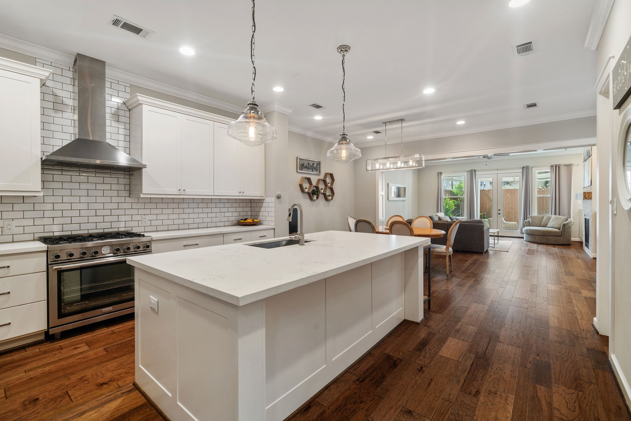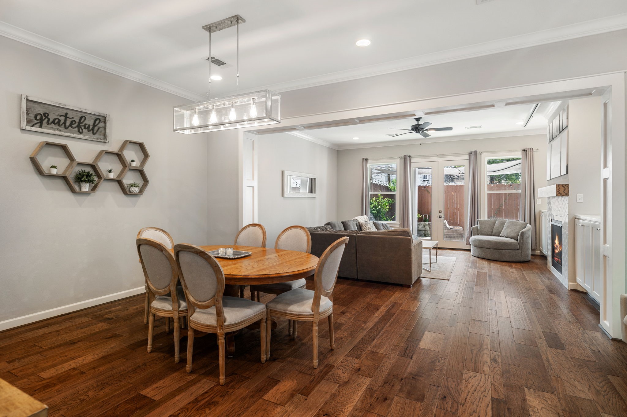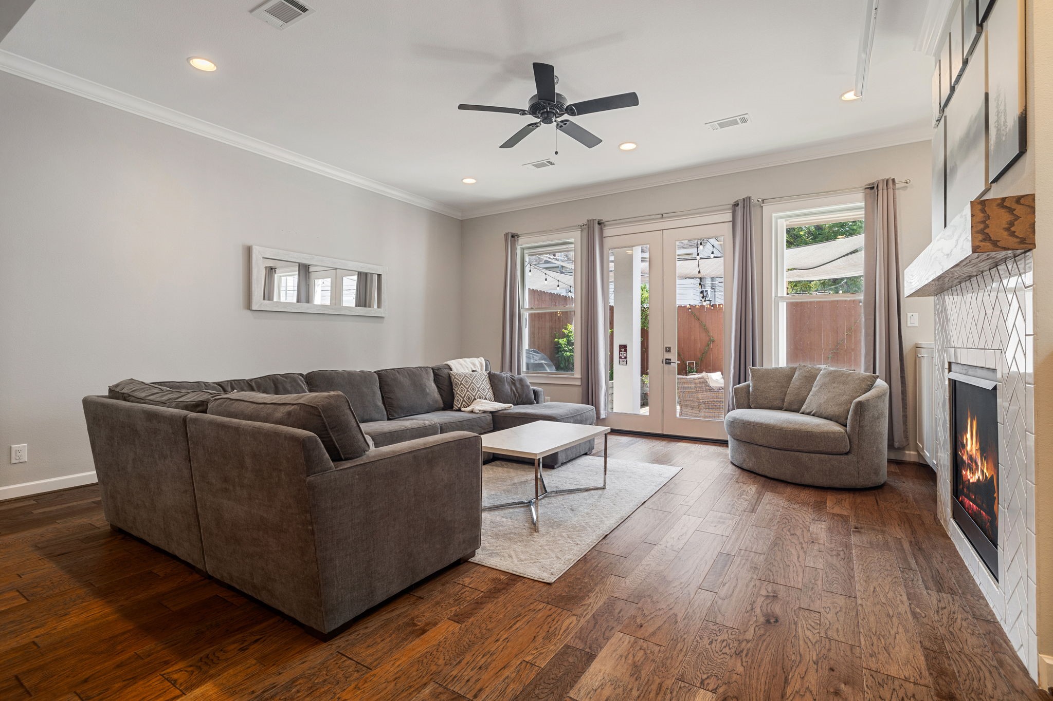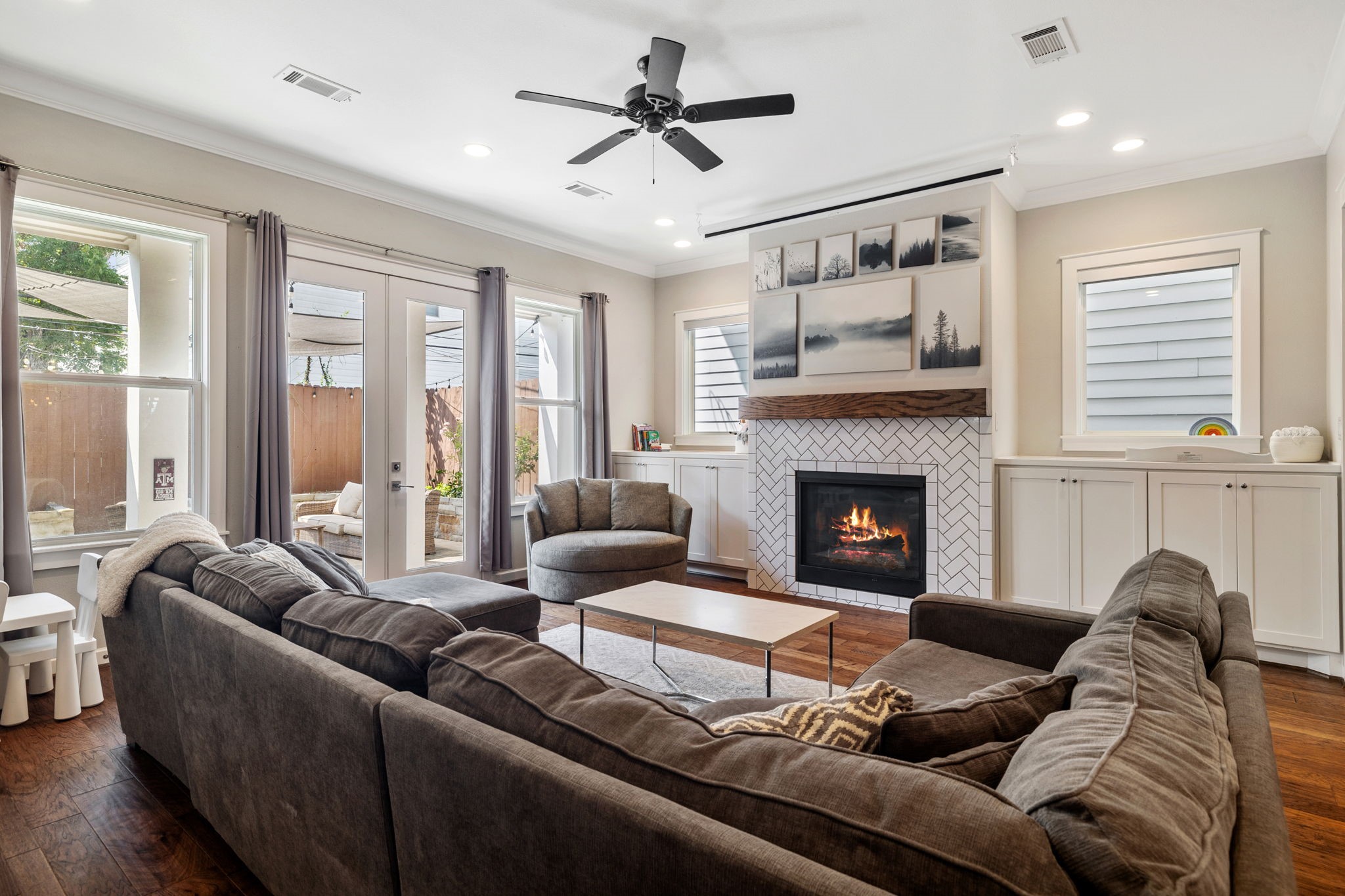 Experience the best of Sunset Heights in this 3-bedroom, 3.5-bath home with a private driveway and rare yard space. Designed for entertaining, the open living area flows to a covered patio perfect for outdoor dining and gatherings. The chefs kitchen boasts sleek white cabinetry, quartz counters, and ample storage. Beautiful wood floors throughout first floor. Upstairs, a versatile game room offers extra living space, while the luxury primary suite features a spa-like bath and oversized walk-in closets with custom built-ins. Every bedroom includes its own en-suite bath, giving comfort and privacy for family or guests. With modern finishes, high ceilings, and thoughtful design throughout, this home combines style with everyday convenience. Walk to Tenfold Coffee, family owned bakery, neighborhood market, & Heights Hike & Bike Trail. Youll love the walkable neighborhood feel paired with unbeatable city access. Sunset Heights living at its finest!