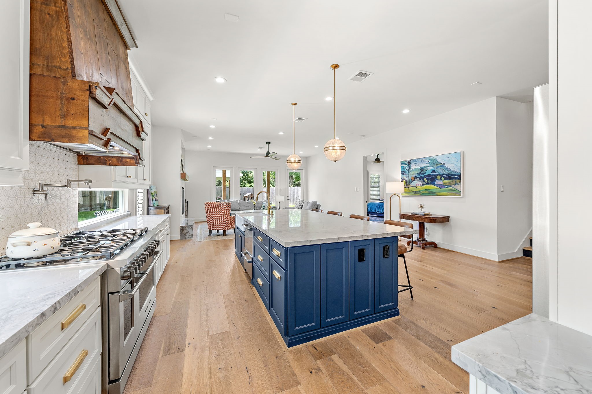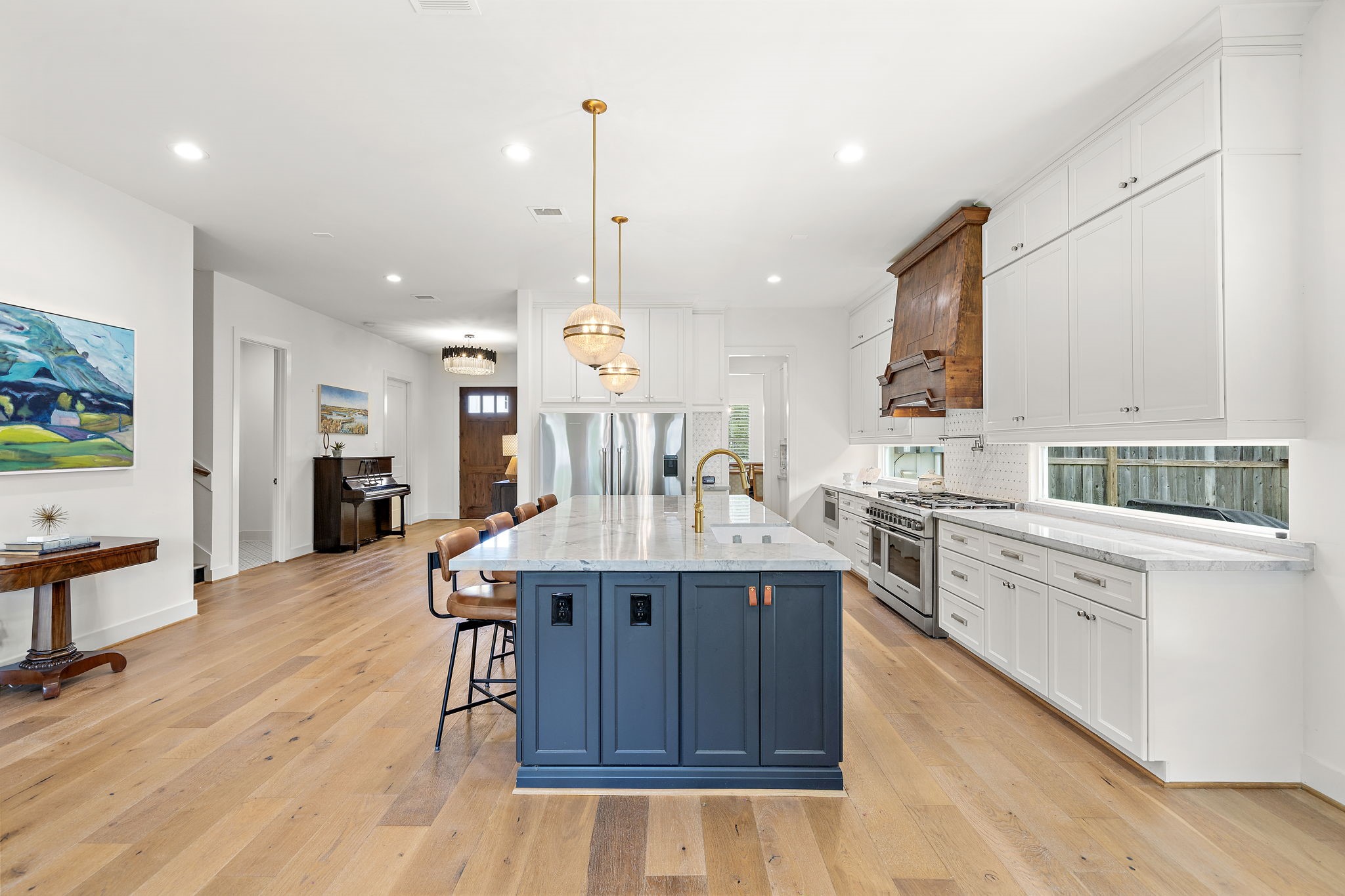 Gorgeous and thoughtfully designed, this Garden Oaks home offers exceptional space and style on a rare 13,600 sq ft corner lot, featuring five spacious bedrooms plus a flexible game/media room, 4.5 beautifully appointed bathrooms, and an open-concept layout ideal for everyday living and entertaining. The first-floor primary suite includes a spa-like bath and huge walk-in closet. The stunning kitchen features an oversized island, high-end appliances, and a walk-in pantry, flowing into the family room with fireplace and access to a pavilion, pre-plumbed for a future outdoor kitchen. The main-floor laundry room includes a large counter w/ sink, while the expansive garage with epoxy floors, multi-car driveway, and boat gate provide ample parking and storage. Zoned to Garden Oaks Montessori and ideally located near the Galleria, Downtown, Garden Oaks, and Heights amenities, this is a rare opportunity to own a move-in ready home on one of the areas most impressive lots.