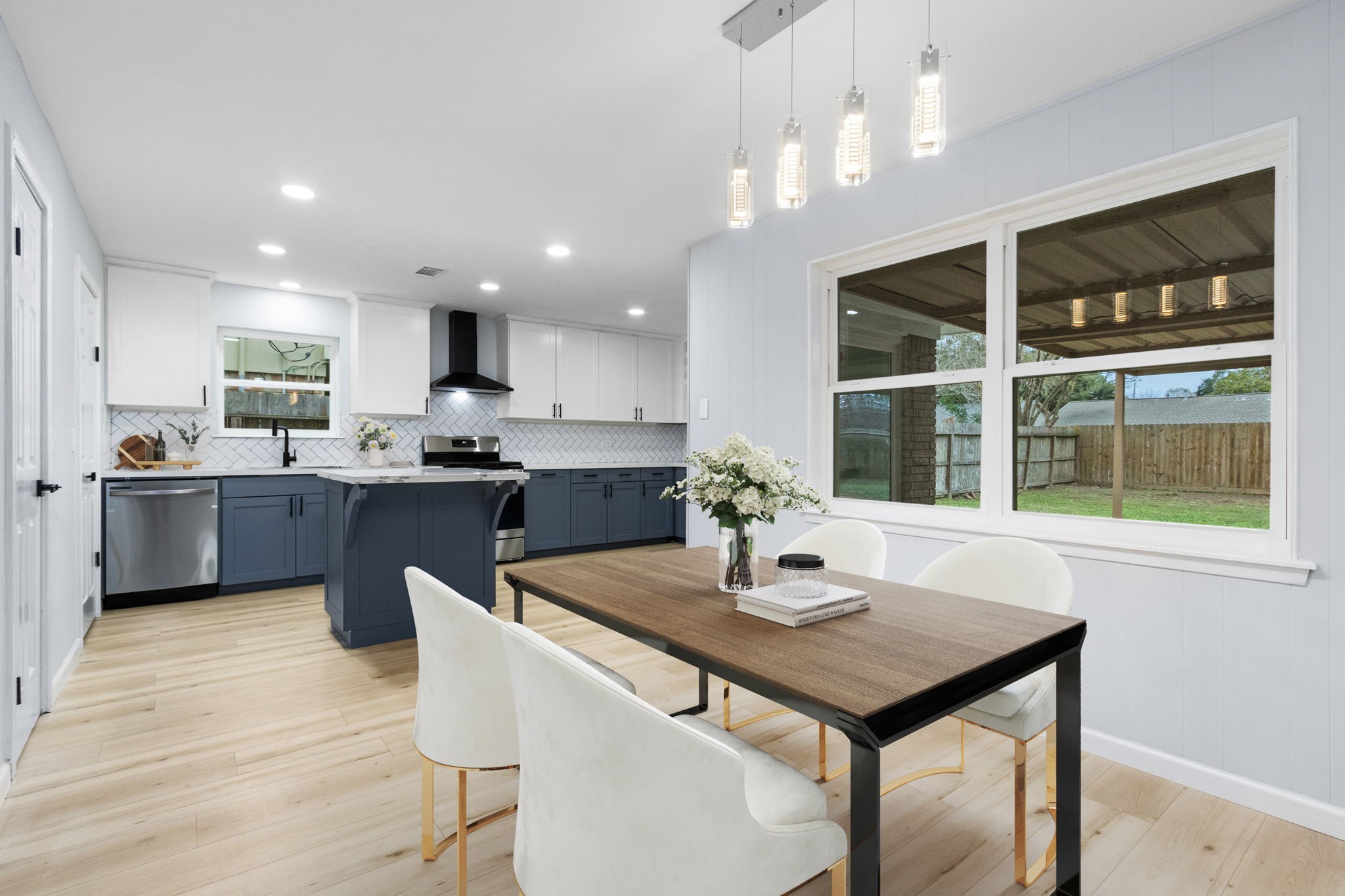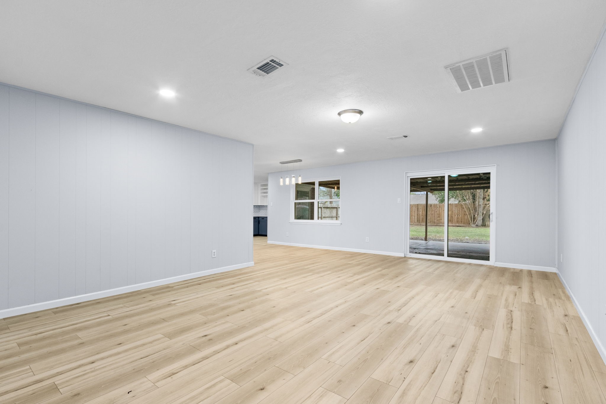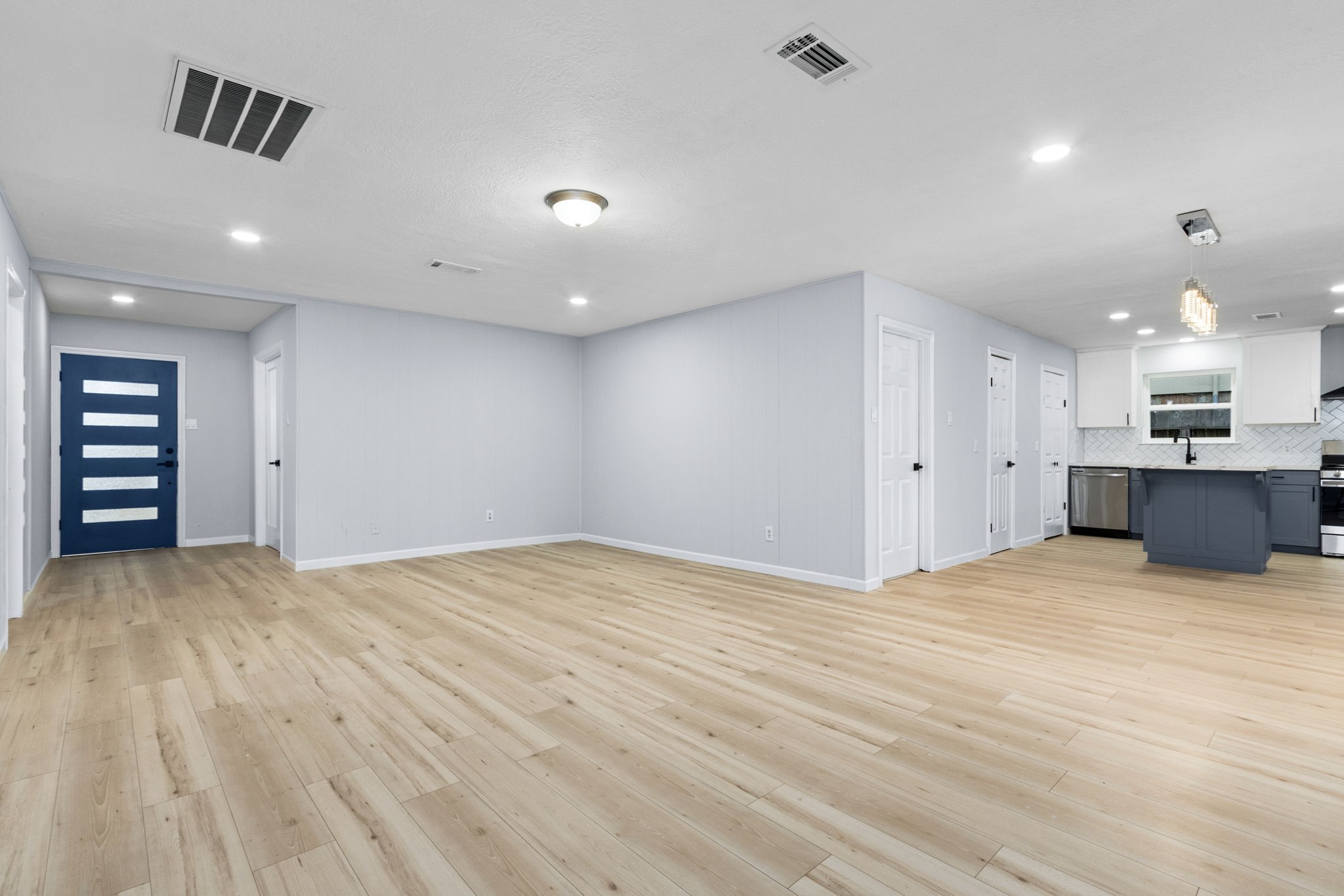 Beautifully remodeled 1 story home that features 3 bedrooms and an office/study in growing Spring Branch. This lovely home boasts 7 1/2"W Luxury Vinyl Plank floors throughout the home, new vinyl double paned windows, new custom job built cabinetry throughout the home with dark metal hardware and soft close drawers in the kitchen, quartz countertops throughout, new stainless steel appliances, new water heater, upgraded plumbing fixtures, and freshly painted interior. The floorplan now mirrors todays architecture with an open floor plan concept and lots of natural light, but still has the charm of a 1960s classic footprint. The back yard is spacious and features a covered patio with plenty of room for a cookout. This is truly a great home in a great location. (Roof is approximately 5 years old per previous owner)(Not in a flood zone, never flooded per previous owner)