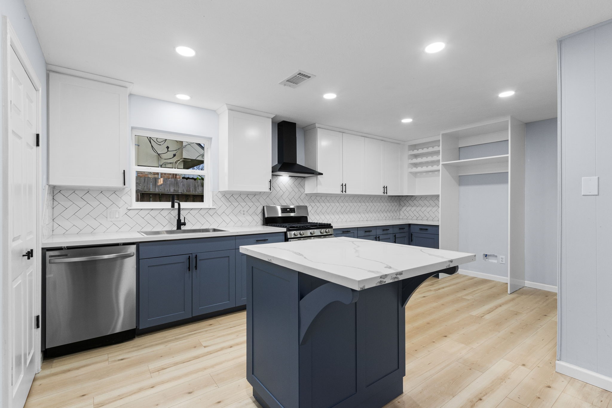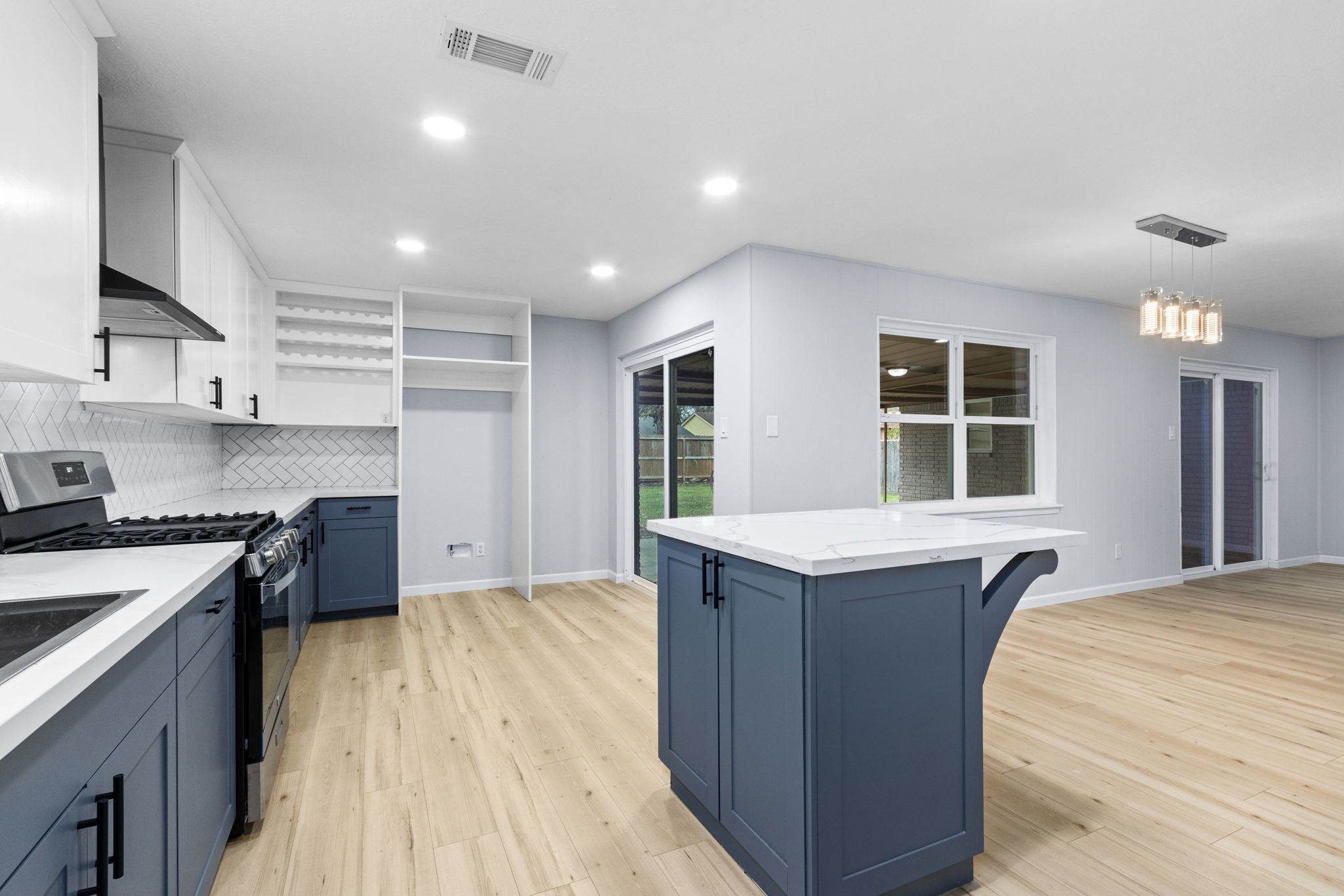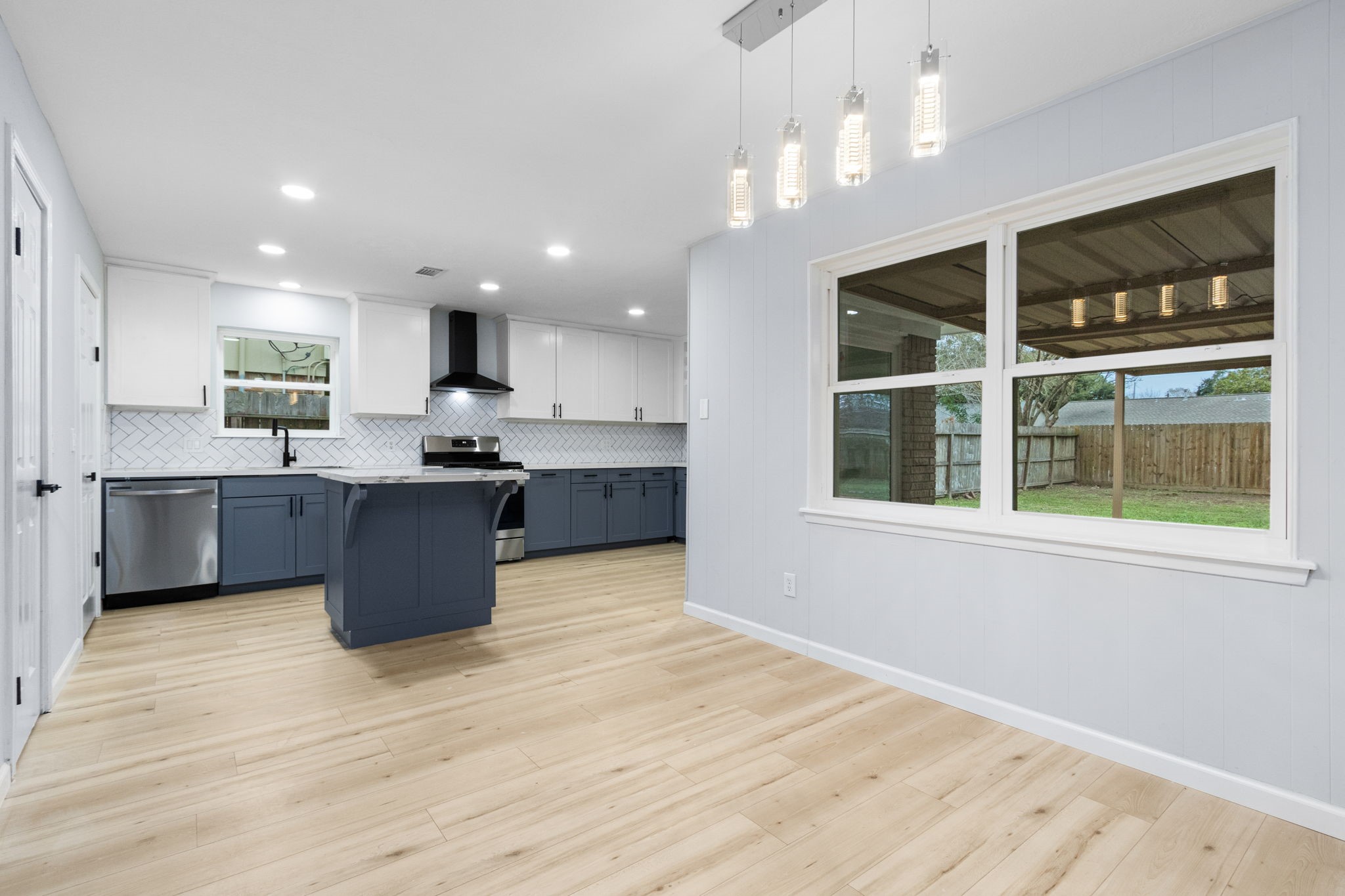 Beautifully remodeled 1 story home that features 3 bedrooms and an office/study in growing Spring Branch. This lovely home boasts 7 1/2"W Luxury Vinyl Plank floors throughout the home, new vinyl double paned windows, new custom job built cabinetry throughout the home with dark metal hardware and soft close drawers in the kitchen, quartz countertops throughout, new stainless steel appliances, new water heater, upgraded plumbing fixtures, and freshly painted interior. The floorplan now mirrors todays architecture with an open floor plan concept and lots of natural light, but still has the charm of a 1960s classic footprint. The back yard is spacious and features a covered patio with plenty of room for a cookout. This is truly a great home in a great location. (Roof is approximately 5 years old per previous owner)(Not in a flood zone, never flooded per previous owner)