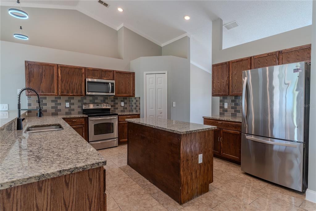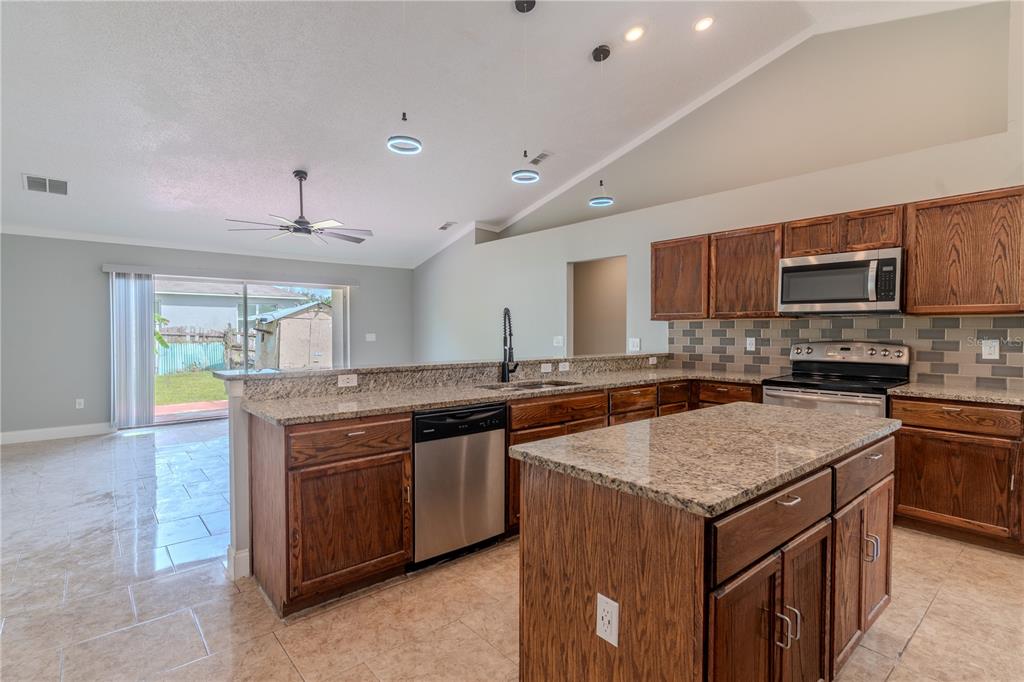 One or more photo(s) has been virtually staged. Welcome to your new home in Ponciana Villages! This lovely four-bedroom, three-bathroom house is located in a highly desirable community. As you enter, youll appreciate the open-concept layout that connects the living spaces, making it perfect for both relaxation and entertaining. The split bedroom design offers privacy for family members, while the formal dining room is great for meals together. The flexible formal living room can serve as an office or flex family area, depending on your needs. The spacious kitchen features a central island and breakfast bar, along with stainless steel appliances that make cooking a pleasure. The large primary bedroom includes an en suite bathroom with a tiled shower and garden tub, plus a large walk-in closet and private water closet for added convenience. The entire home has beautiful tile flooring, with cozy laminate in the bedrooms, and large windows throughout let in plenty of natural light. Step outside through the sliding glass doors to a expansive concrete porch, perfect for enjoying your morning coffee or evening relaxation. The backyard also has a handy storage shed for all your outdoor tools. Living in Ponciana Villages means youll have access to great amenities like a clubhouse, fitness center, playground, park, pool, recreational ball court, and tennis courts, so theres always something to do. Plus, youll be close to major highways, schools, shopping, and local attractions. Dont miss your chance to make this wonderful home your ownschedule a viewing today!