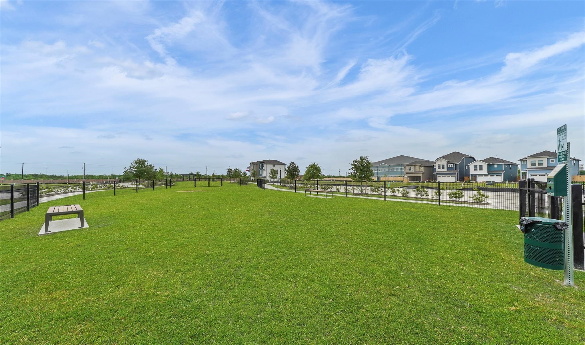 Discover the perfect blend of style, comfort, and convenience in this modern 3-bed, 3.5-bath home in this centrally located GATED community! Ideally located near Hwy 288 with quick access to Downtown, the Medical Center, NRG Stadium, and the Museum District.The first floor offers a home office/flex space, bedroom, and full bathperfect for guests or multi-generational living. The second floor showcases an open-concept layout with a chef-inspired kitchen featuring quartz counters, maple cabinetry, a farmhouse sink, stainless appliances, and a large island flowing into the dining area and great room. The third floor features two spacious primary suites with frameless glass showers, soaking tubs, and walk-in closets.Loaded with upgradessmart thermostats and locks, security system, video doorbell, custom window shades, and more. Enjoy walking trails, dog park, and no back neighbors. Walking distance to Sabercats Stadium and 6 minutes to Wildcat Golf Club.