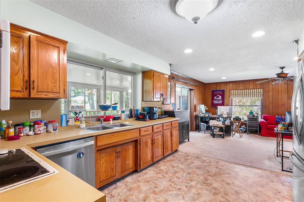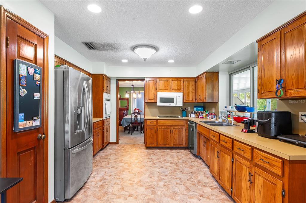 Tee up your creativity with this spacious 2 bedroom, 2 bath home offering over 2,400 sq ft of living space right on the 13th green! Set on an oversized lot in a gated and guarded community, this home is packed with potential and ready for your personal touch. From the grand double-door entry to the beautiful brick fireplace, theres timeless charm waiting to shine again. The gourmet kitchen is ideal for home chefs, while the huge Florida room fully under AC is the perfect spot to relax and watch the golfers roll by in comfort year-round. Beyond your back door, enjoy a resort-style lifestyle with an 18-hole championship golf course, clubhouse with a restaurant and lounge, pro shop, and junior Olympic-sized swimming pool. Stay active with six lighted tennis courts, a wellness center, and practice facilities including a driving range and putting green. The community also features walking and biking trails, and a second resort-style pool, plus a full calendar of social and recreational events. This home is a hole in one!!