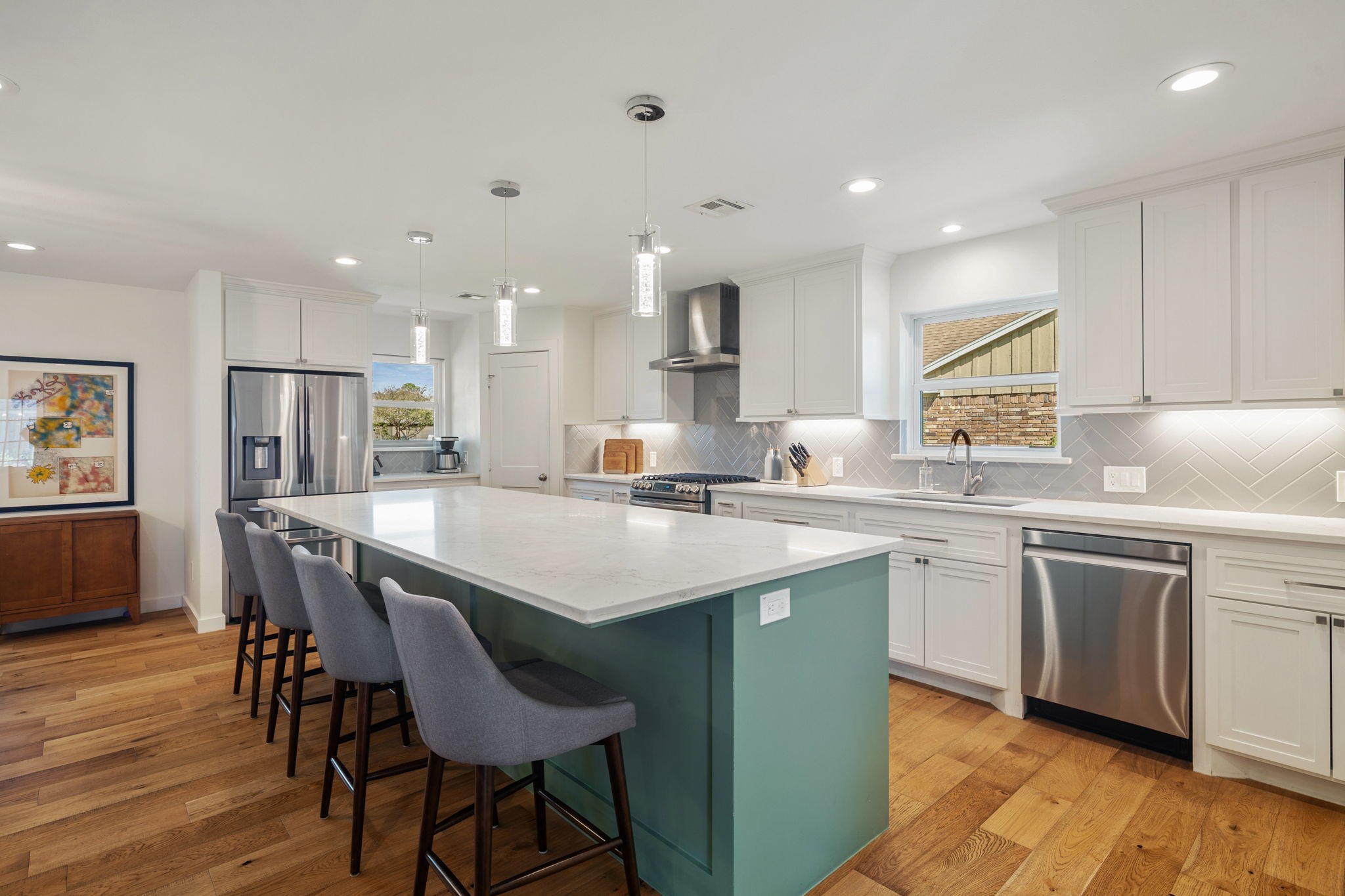 This is it - your dream home in Shepherd Forest that has been taken to the studs and completely updated. The kitchen was expanded and features a stunning island with seating for 4, Quartz counters, custom cabinet storage, walk in pantry, coffee/butler bar, & so many designer finishes. Oversized laundry room is a must have with a sink and mud room bench. Wood floors throughout. Open concept living and dining area. The hall bath has been beautifully remodeled with Quartz counters, marble tile surround, and ample storage. Primary retreat features room for a kind sized bed, walk in closet with built-ins, and gorgeous primary bath - 2 sinks, custom storage, walk-in shower - this is your own spa retreat. Both secondary bedrooms are a great size with closet spaces. Ideally located at the end of a culdesac for privacy. Never flooded. Covered walkway to detached garage plus porte-cochere for additional covered parking. So many thoughtful upgrades; this ones a gem!