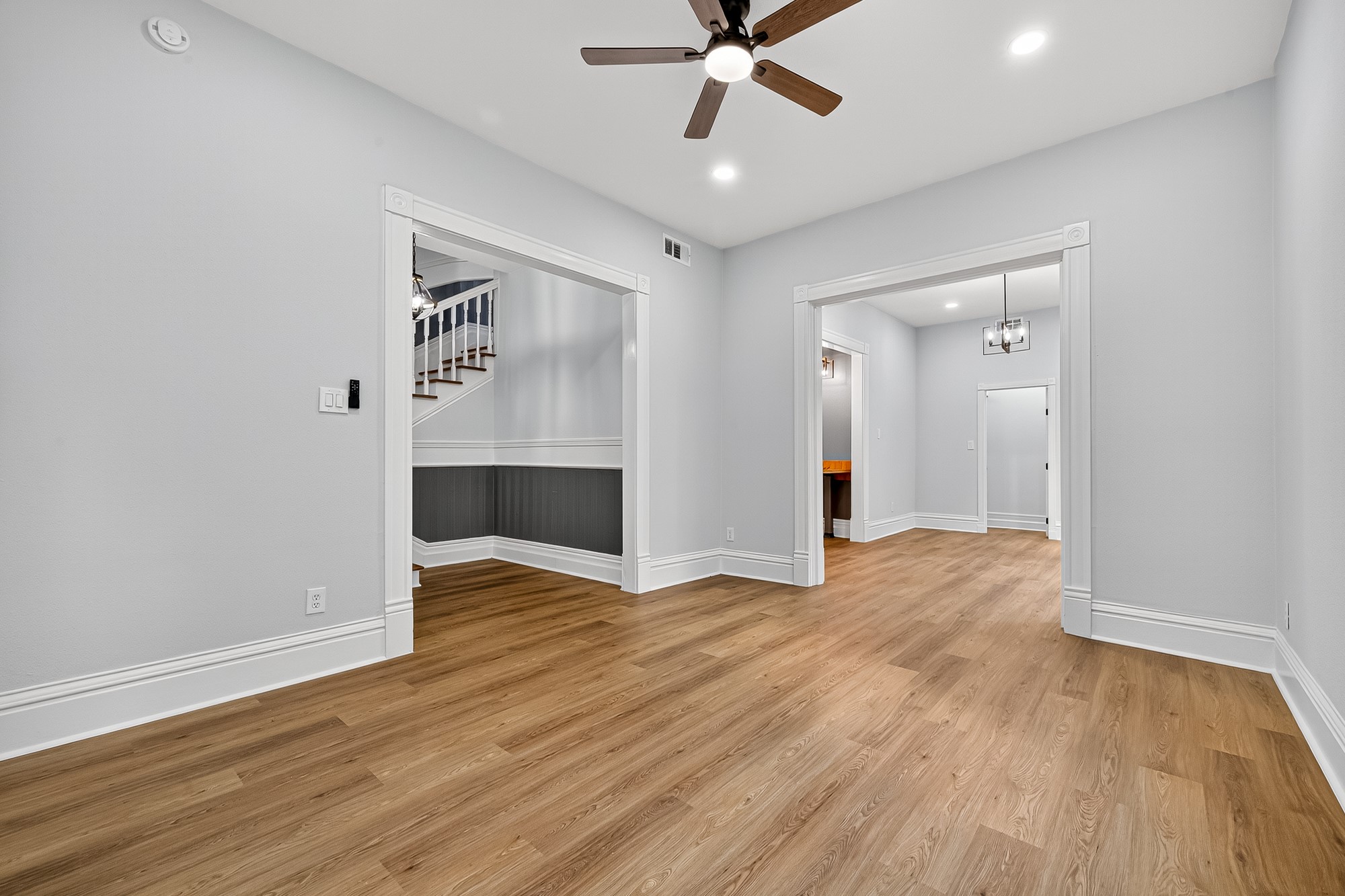 Completely renovated in summer 2025, this stunning First Ward home blends historic charm with modern luxury. Offering 3 bedrooms, 2.5 baths, and 1,622 sq ft, it features a spacious new primary suite with oversized walk-in shower, dual vanities, upgraded fixtures, and designer tile. Upstairs retreat includes full bath, laundry, and 2 versatile rooms with closets and full bath perfect for guest space, home office, or gym. Major upgrades: brand-new roof, rebuilt oversized detached garage with automatic gate and garage, leveled foundation, open-concept kitchen and living with high ceilings, 10 baseboards, LVP and tile floors, quartz counters, and stainless steel appliances. Outdoor highlights: cozy front porch, large fenced backyard, wood deck for entertaining, and long driveway with ample parking. On a full 5,000 SF lot near downtown, Heights, Sawyer Yards, hike/bike trails, dining, and shopping. Move-in ready with timeless style, modern comfort, and unbeatable location!