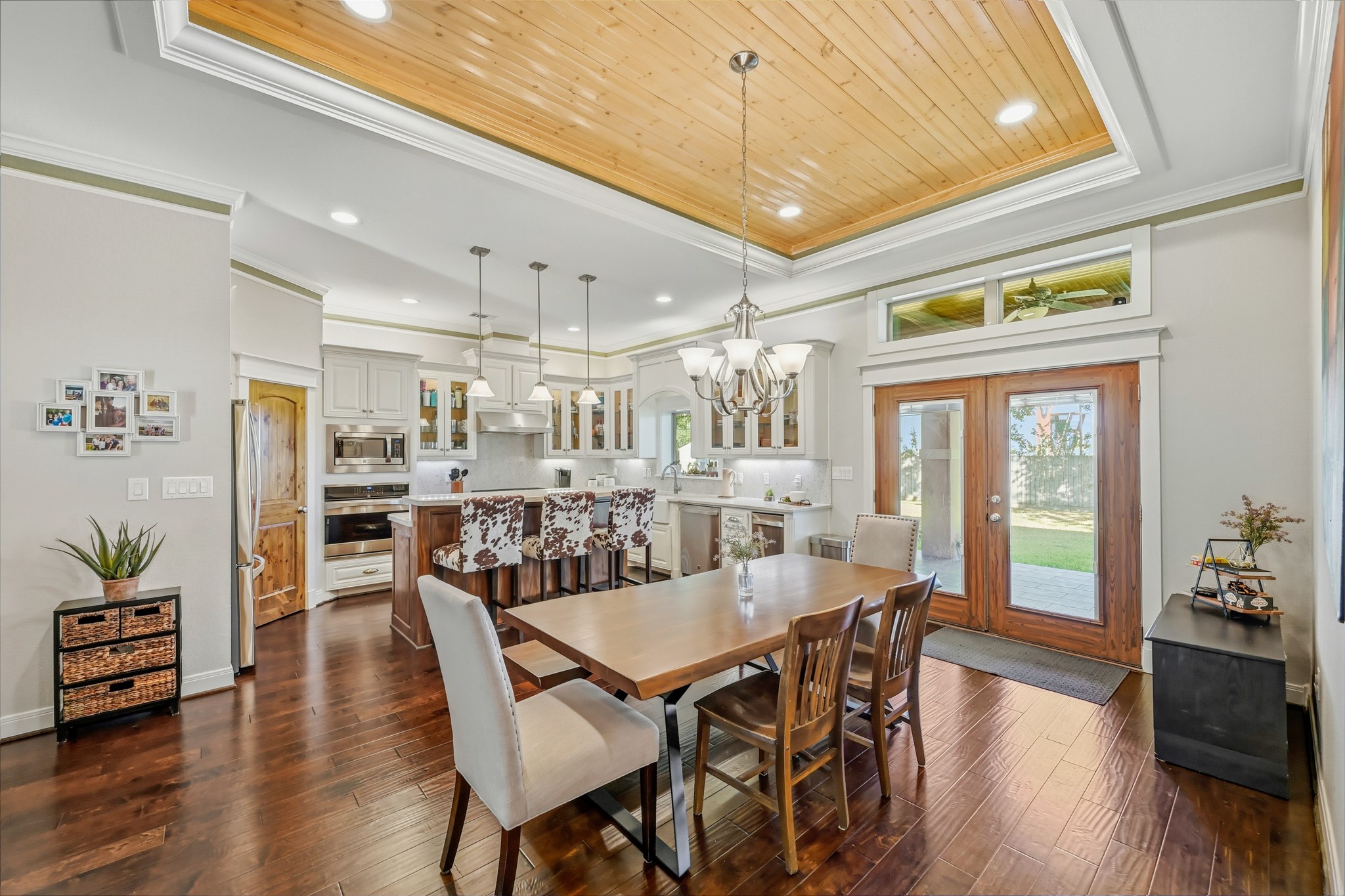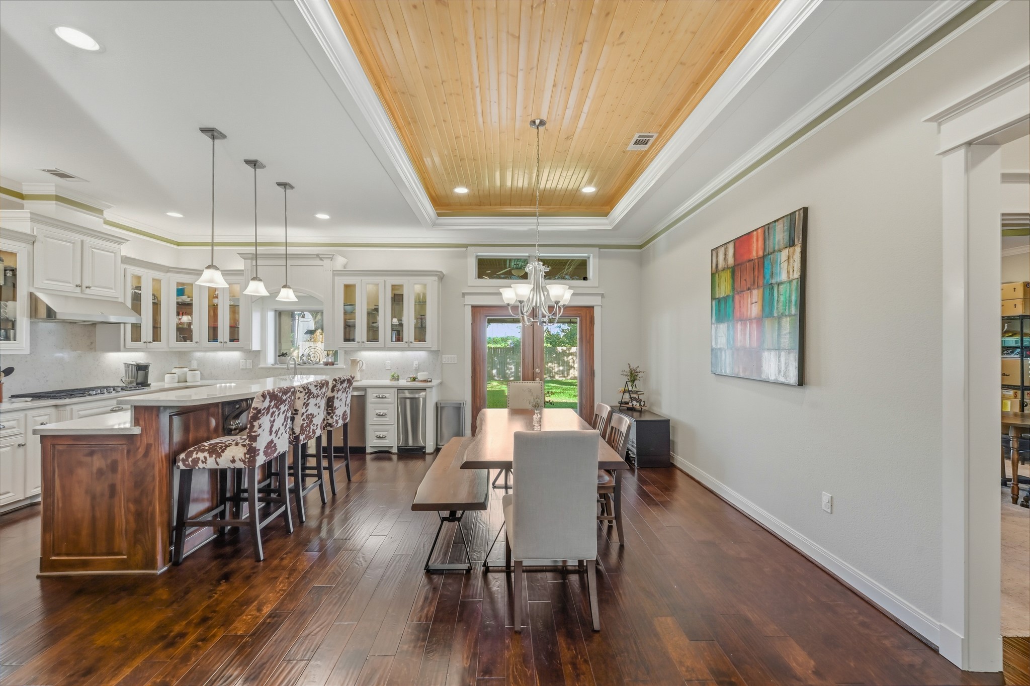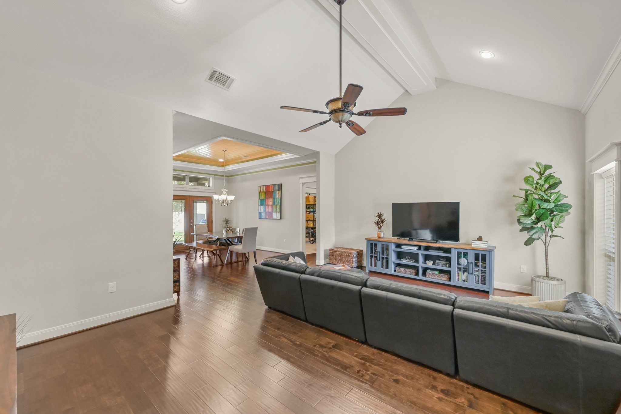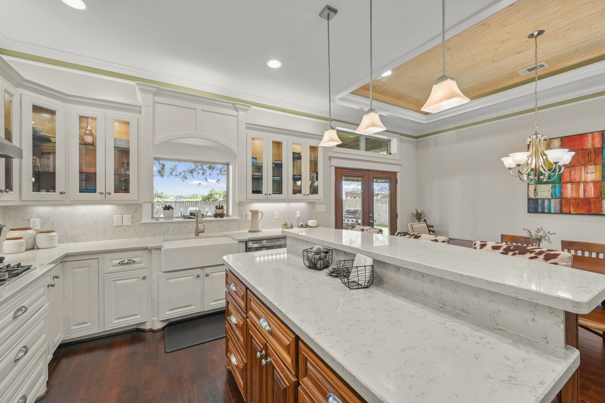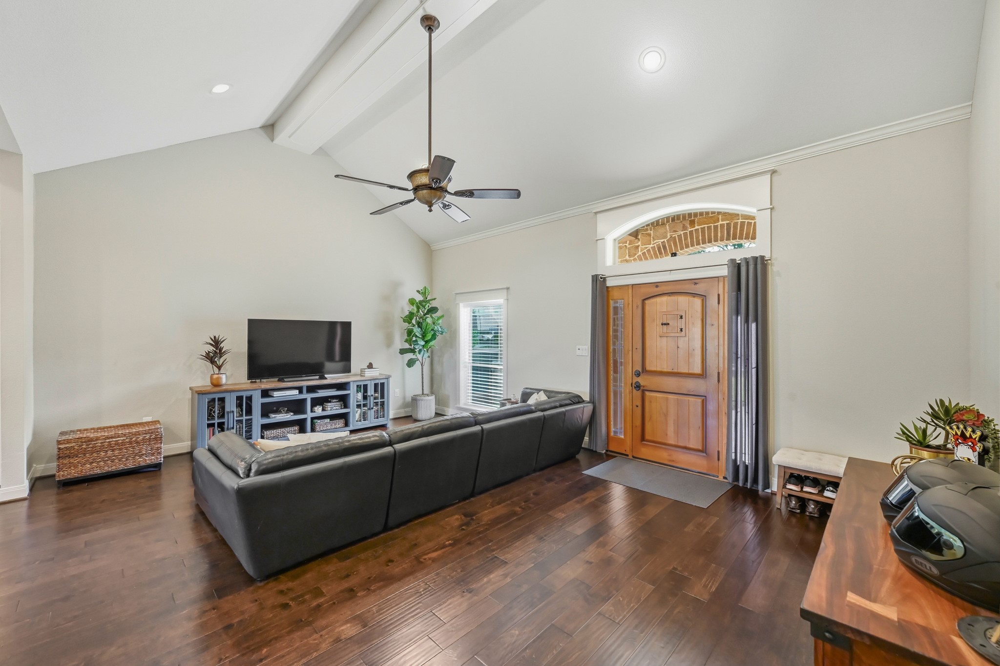 Truly one-of-a-kind, this custom-built 1-story home sits on almost half an acre in Old Katy. No HOA, & No MUD taxes. The Family Room features a vaulted ceiling, hardwood floors, crown molding, & an open flow to the Kitchen & Dining Room, creating a bright, welcoming space. The Chefs Kitchen impresses with quartz countertops, a farmhouse sink, custom glass-front cabinets, & breakfast bar, while the Dining Room boasts a stunning wood-inlay ceiling. A versatile Home Office offers privacy & functionality or used as the 4th bedroom. The Primary Suite features a vaulted ceiling, crown molding, & French Doors opening to an oversized covered patio plus an en-suite Bath offering dual vanities, walk-in dual shower head glass shower, marble floor & a spacious walk-in closet with an abundance of built-ins. Enjoy the peaceful backyard with mature shade trees, a storage building, sprinkler system, oversized garage, & double wide recent driveway. Zoned to the highly desirable Katy High School.