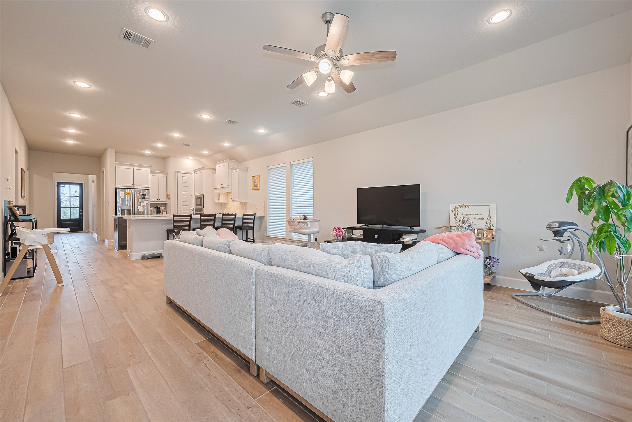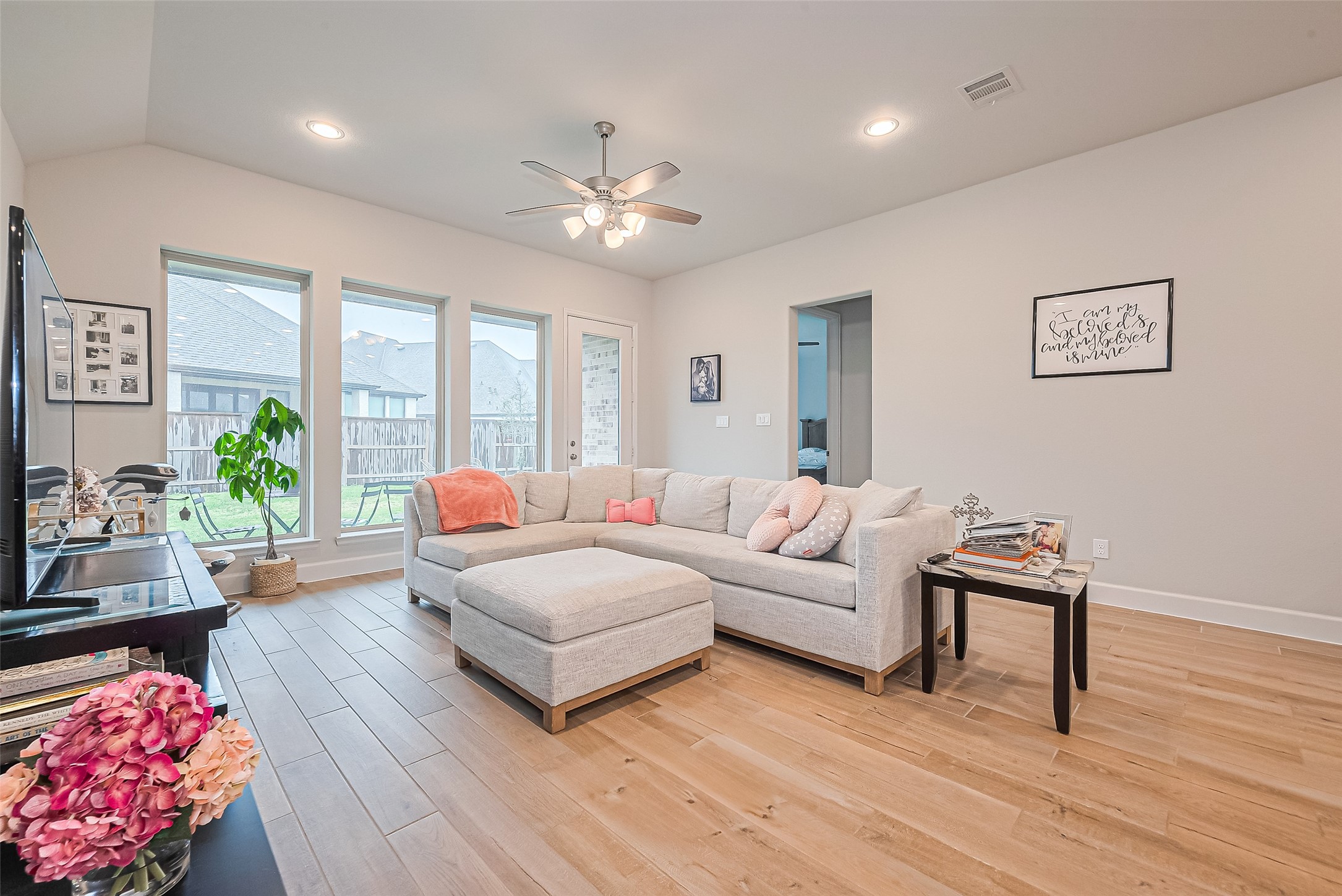 This charming single-story home features 4 bedrooms, 3.5 bathrooms, and a spacious backyard with an extended patio and fully equipped outdoor kitchenideal for entertaining or relaxing evenings at home. Theres plenty of space to add a pool, garden, or play area. Inside, the open-concept layout offers a bright and airy living space that flows into a modern kitchen with stainless steel appliances and ample storage. A private home office at the front of the home makes working from home both convenient and comfortable. Located within walking distance to the elementary school and nestled in a highly desirable neighborhood with top-rated schools. Community amenities include a pool, treehouse, and The Oak Kitchen and Bar. Welcome home!
