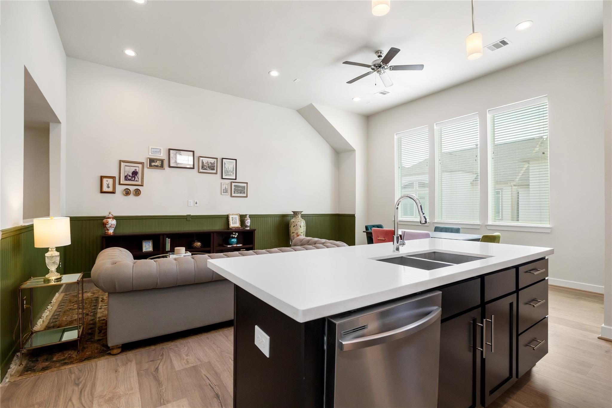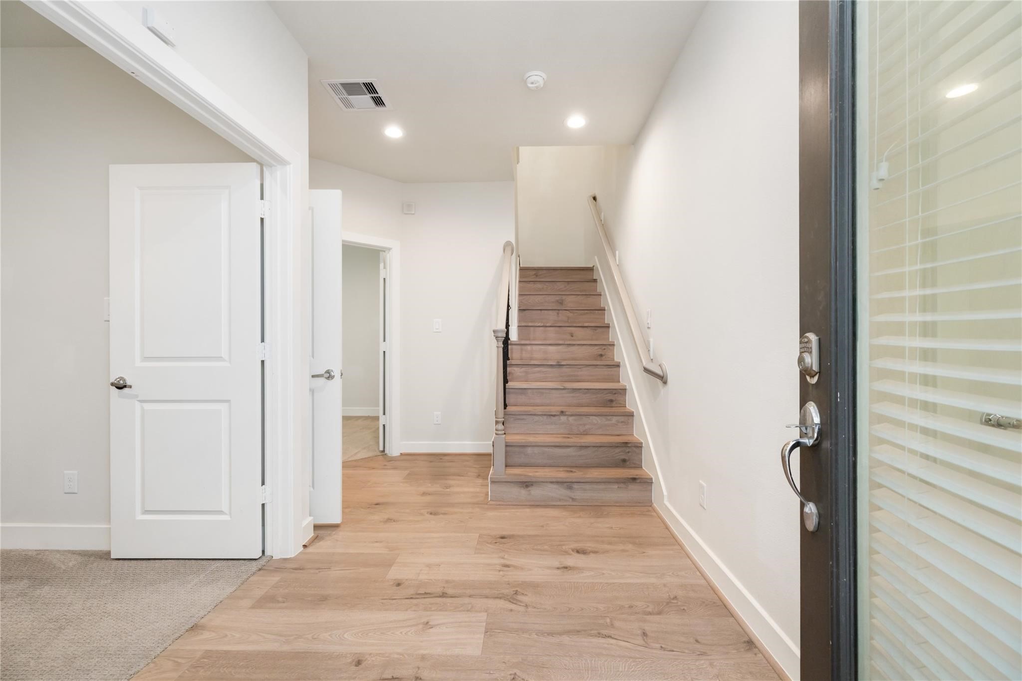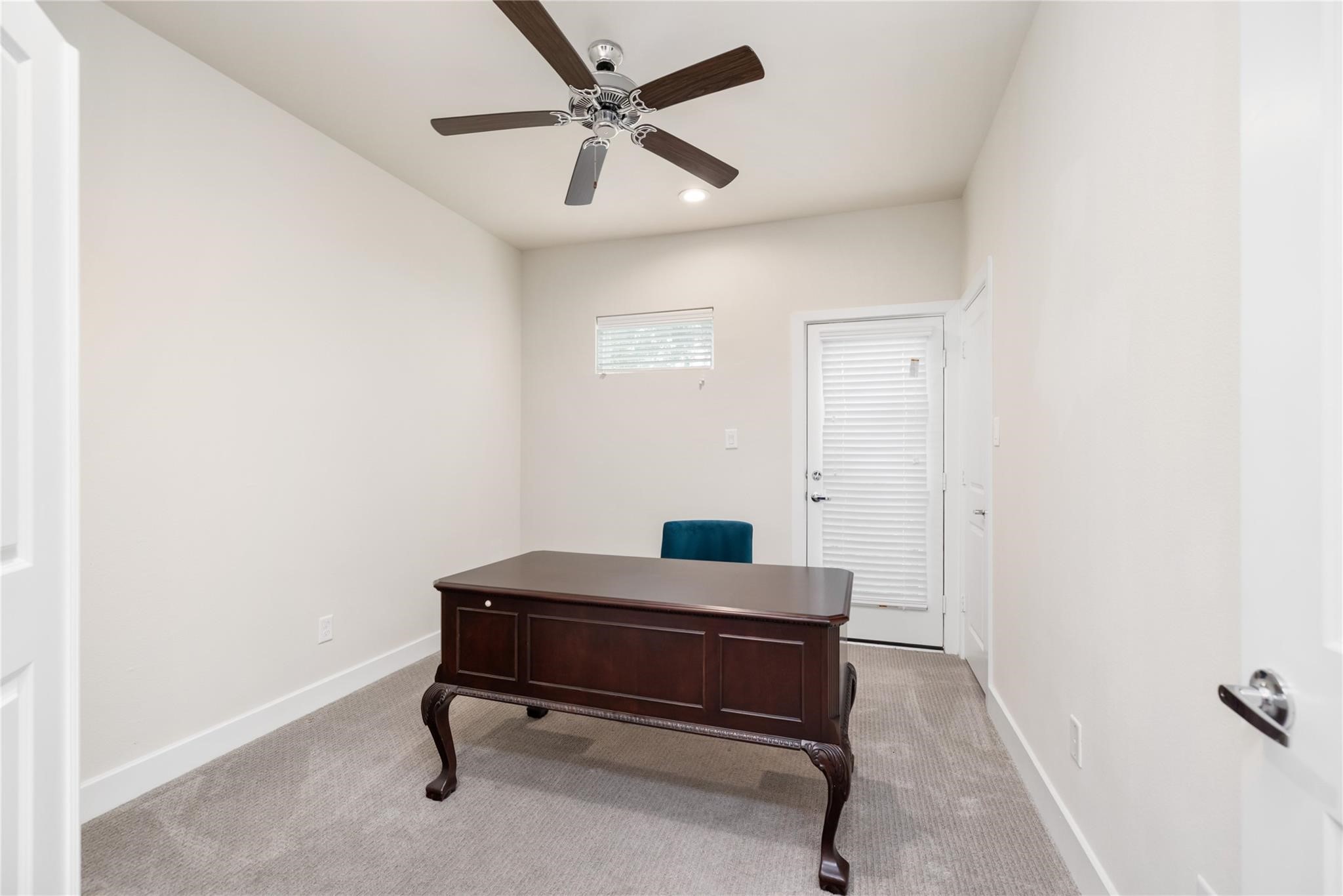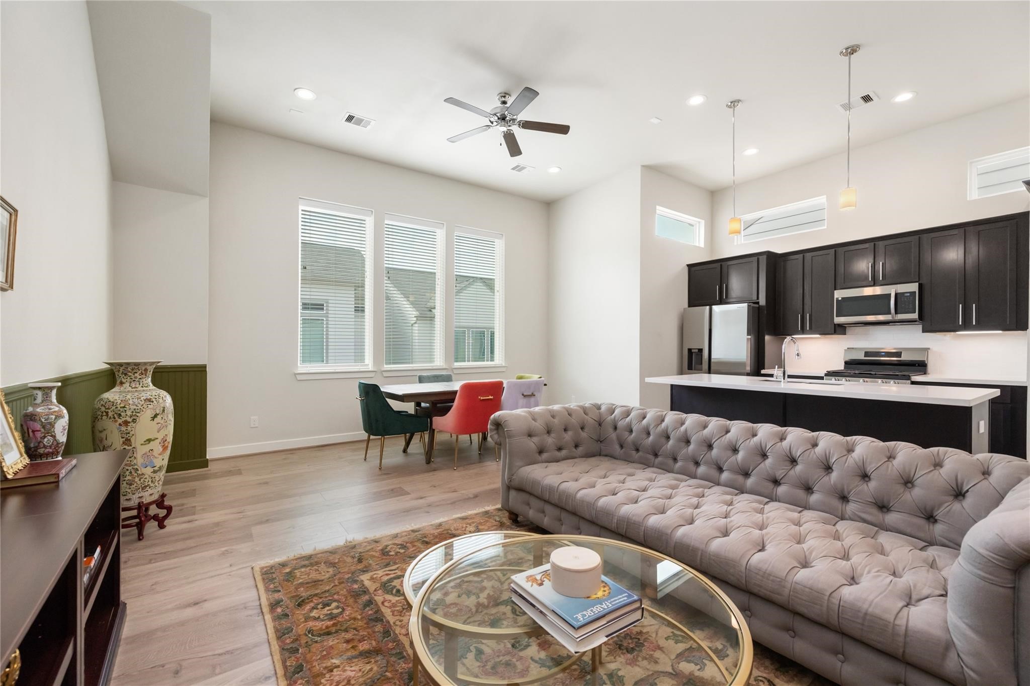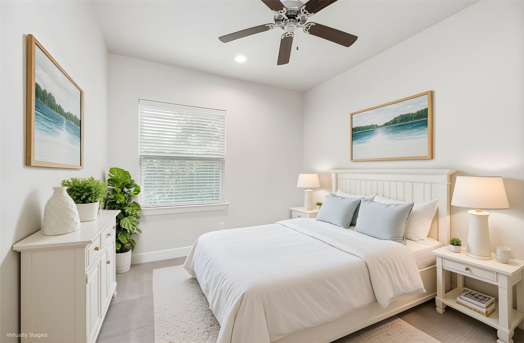 This 2020-built home brings together style, comfort, and a little bit of that finally this feels like home energy. Its a coveted 2 story floor plan inside a charming gated community. The open living space is filled with natural light and designed for real everyday livingengineered wood floors, tall ceilings, and a quartz-topped kitchen that flows effortlessly into the dining and living areas. Upstairs, the primary suite offers a true retreat with a freestanding tub, walk-in shower, double sinks, and a spacious closet, all framed by calming treetop views. The first floor adds flexibility with a private guest room with huge walk in closet, a dedicated laundry room, and a separate home office/third bedroom. Hall bathroom is shared between them. Step outside to a small fenced backyard, ideal for pets or gardening. Warm finishes and thoughtful spaces make this home easy to loveand even easier to live in. Welcome home!