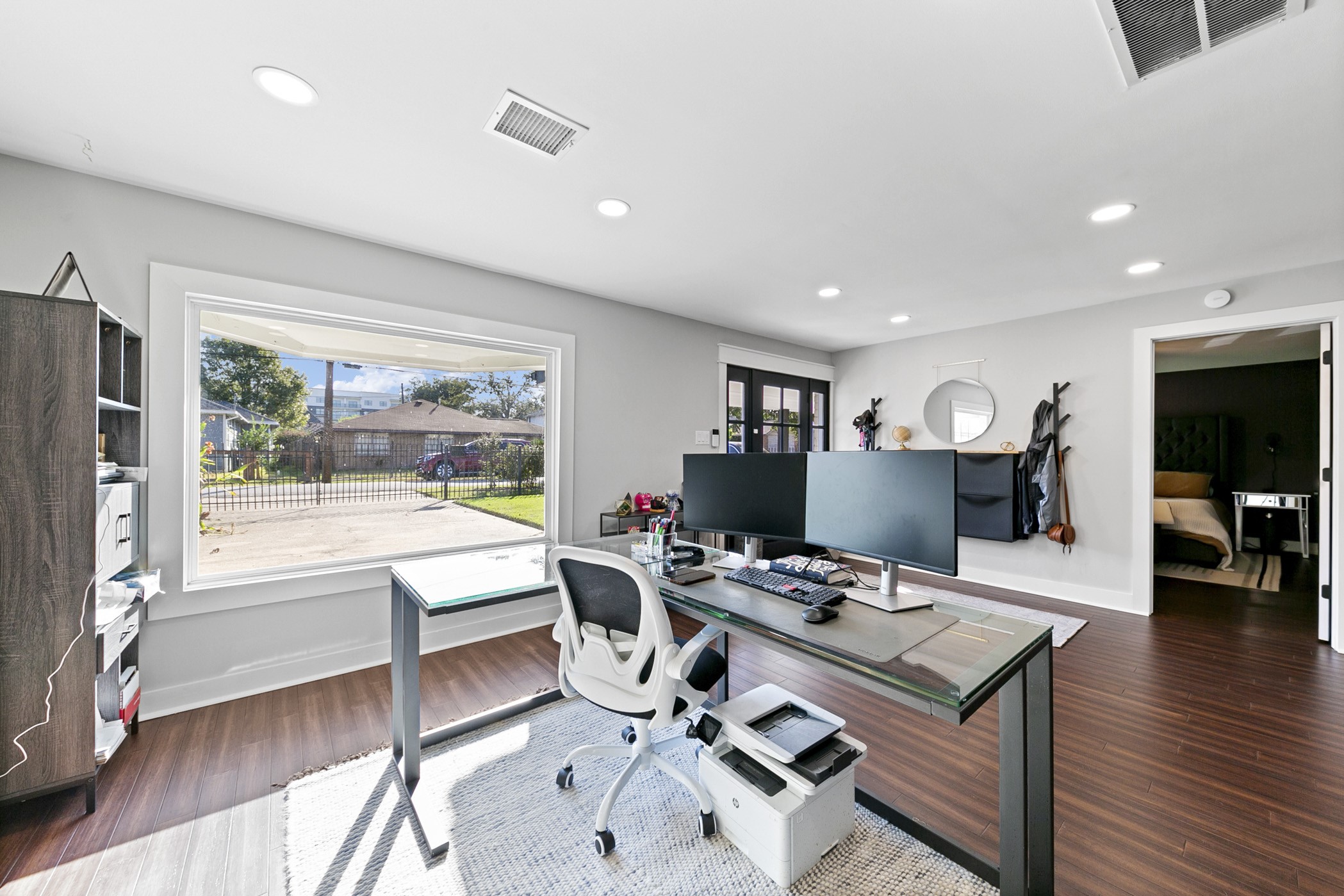 Step into this one-story haven in a quiet, friendly neighborhood thats growing with new construction homes! Renovated in 2022 with modern amenities: new HVAC, spray foam insulation, electrical updates, Pex plumbing, tankless water heater, open floor plan for entertaining. Admire the elegant kitchen with quartz counters, custom cabinets, beautiful tile, and breakfast bar. The primary suite boasts a luxurious en-suite bathroom & with a new custom walk-in closet. Relax in the lush backyard with a pergola, perfect for guests. Love the diversity of the neighborhood and enjoy easy access to the sports Arena, medical center, and downtown. From the remodeled bathroom with stone tile to the painted living area and custom primary closet, this charming remodel is a must-see gem! Near Houstons best Taste Dairy Maids artisan cheese, Lei Lows exotic rum, street food Thai market, or explore The Houston Farmers Market. A world of flavor at your doorstep!