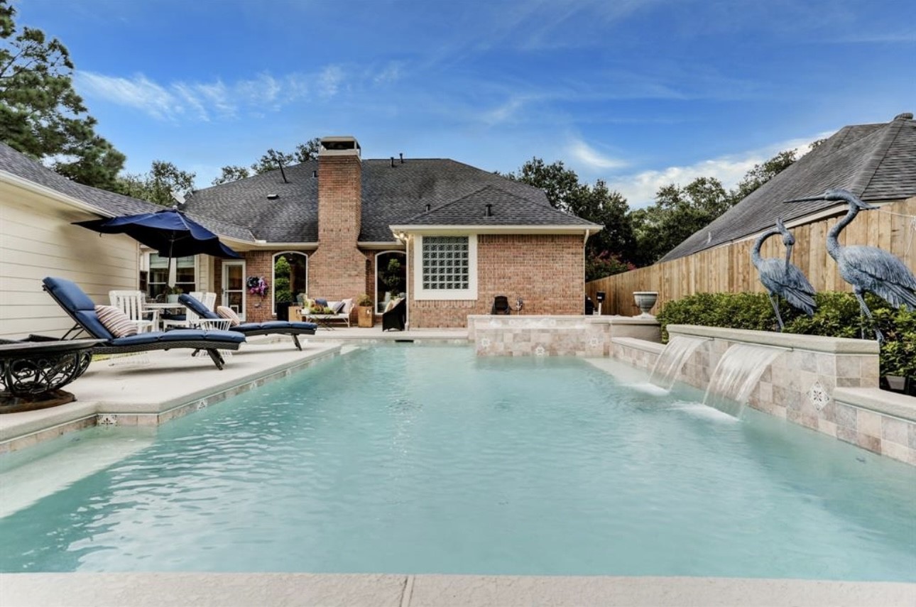 Spectacularly remodeled home in the gated community of Lakes on Eldridge. This beautifully updated residence features wood-look tile flooring throughout, custom cabinetry, quartz countertops, a marble shower, Jenn-Air gas cooktop, KitchenAid appliances, and energy-efficient double-pane windows. The expanded third bedroom upstairs provides additional space, while the fifth bedroom downstairs offers flexibility as a study. Enjoy a private backyard oasis with pool, spa, waterfall, and turf for easy maintenance. Ideally situated next to the community parkan unmatched location that feels like an extension of your own yard. Additional highlights include a new water heater and extra green space.