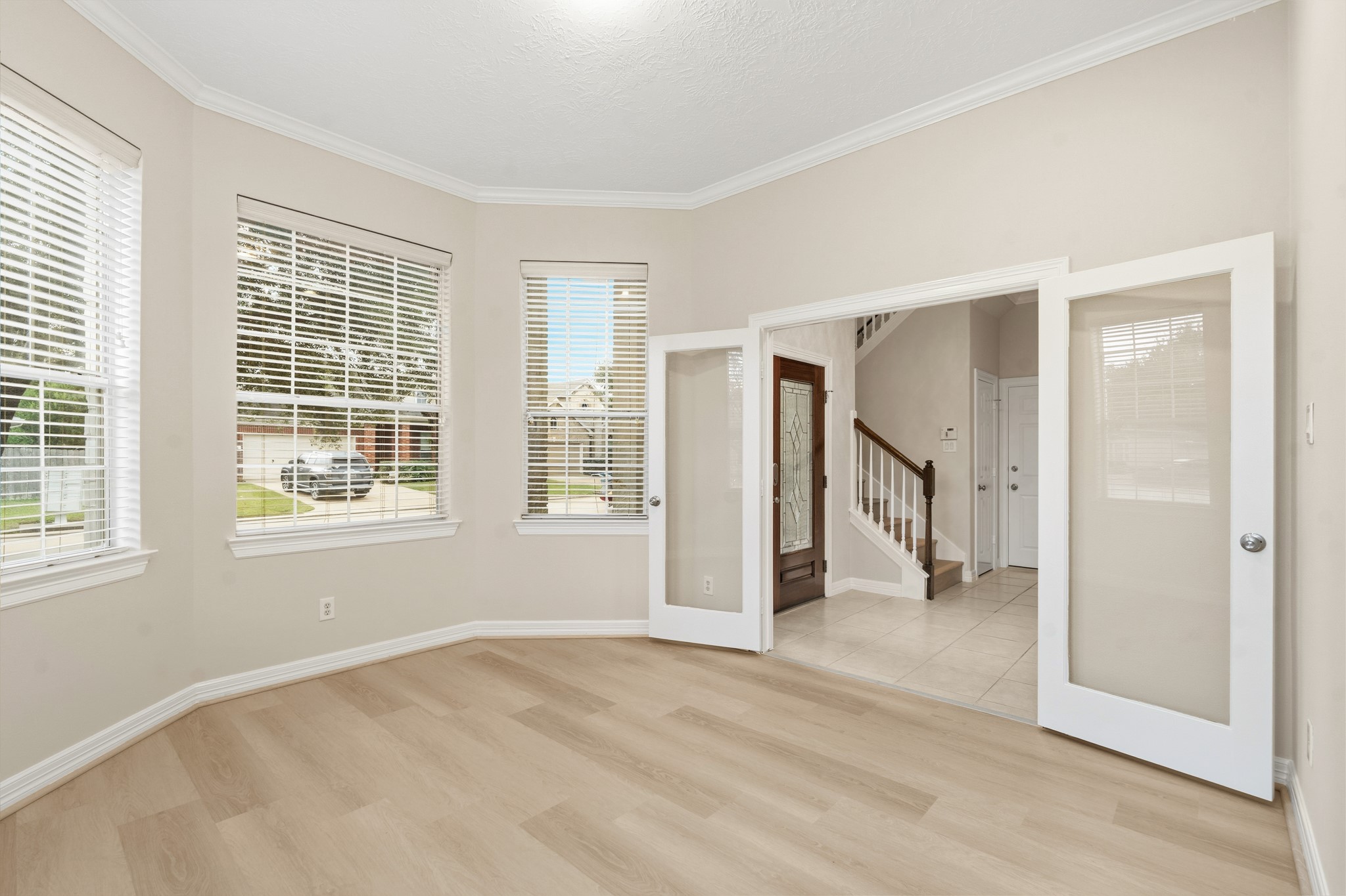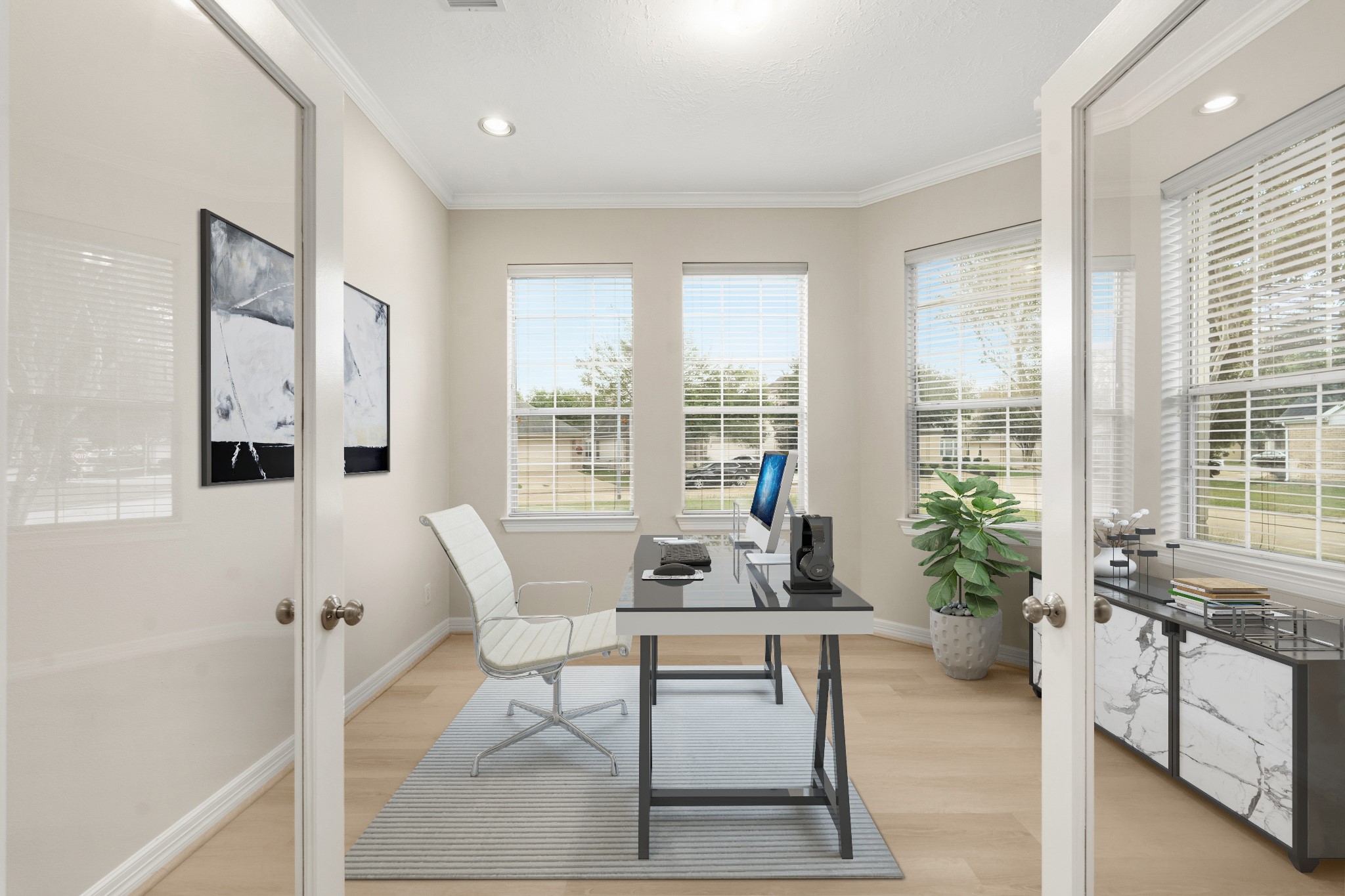 Charming two-story home in the gated Briargreen Terrace community, built entirely with brick and stone and topped with a durable slate roof. Step inside to a spacious foyer with high ceilings and an updated home office; the entire house features new vinyl plank floors and fresh paint. The bright living room opens to the kitchen, with island seating and new quartz countertops, and a large dining area. The primary suite includes a jet tub, a separate shower, a bidet, and a walk-in closet. Upstairs, youll find two bedrooms and a full bath with a bidet. Beautiful landscaping enhances the front elevation, complete with a drip irrigation system controlled by an app. The backyard offers a large covered patio perfect for entertaining. Conveniently located near the Energy Corridor, with easy access to I-10, Hwy 6, and the Westpark Tollway. Dont miss the opportunity to view it!