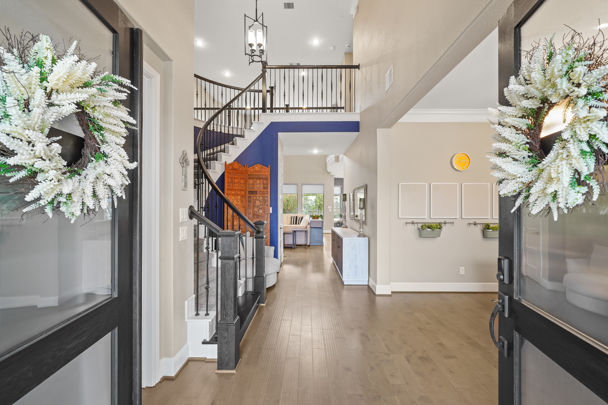 Enjoy exquisite living in this stunning Coventry home in Towne Lakes Marina Bays gated Lake section. Featuring an amazing backyard oasis with a resort-style heated pool, spa, covered patio, outdoor kitchen, pergola with rain shower water feature, and abundant lush landscaping, plus a 4-car garage. Desirable floor plan with 5 bedrooms, 4.5 baths, Study, formal dining, open family room, game room, & media room. Primary and 2nd bedroom & bath on 1st floor. Entertain in the elegant Formal Dining Room or relax in the Family Room with a cozy fireplace & custom built-ins. The open kitchen dazzles with a gorgeous marble island, granite countertops, designer cabinetry, SS appliances, reverse osmosis water system, walk-in pantry, Butlers Pantry, all great for entertaining. Residents enjoy a 300-acre lake, marina, waterpark, trails, parks, tennis, clubhouse, fitness, & waterfront dining.