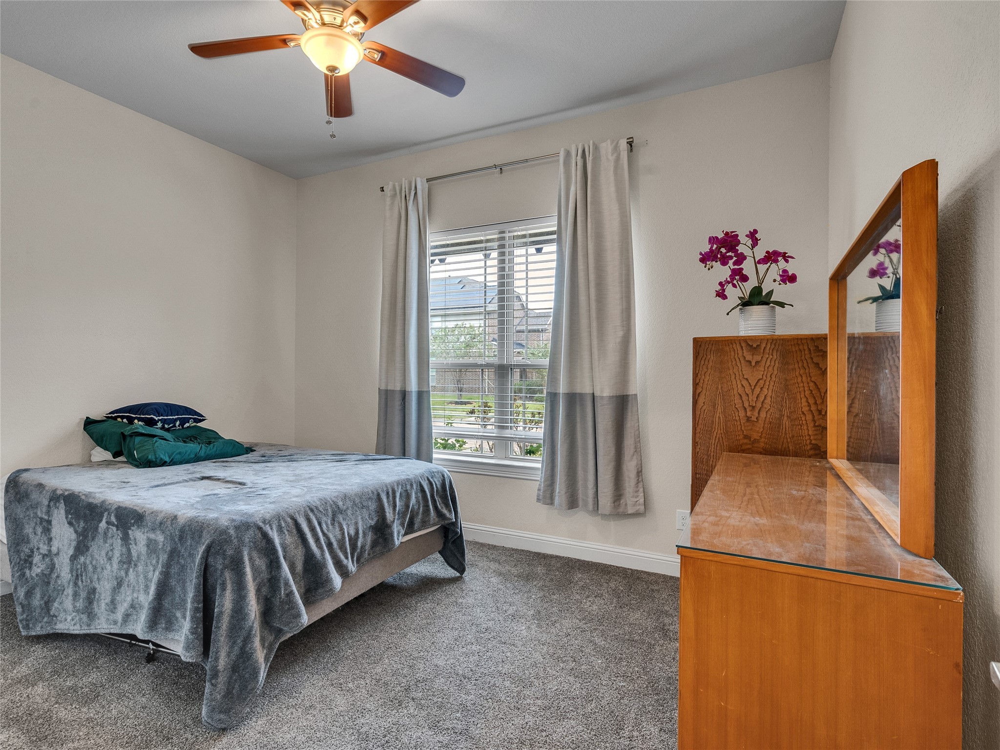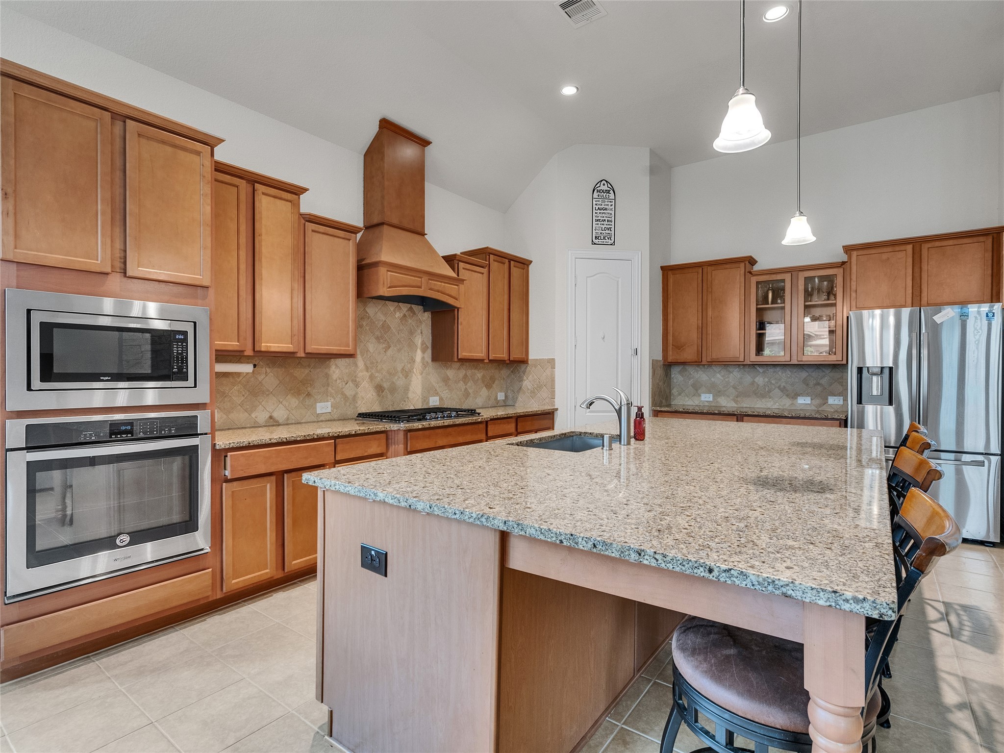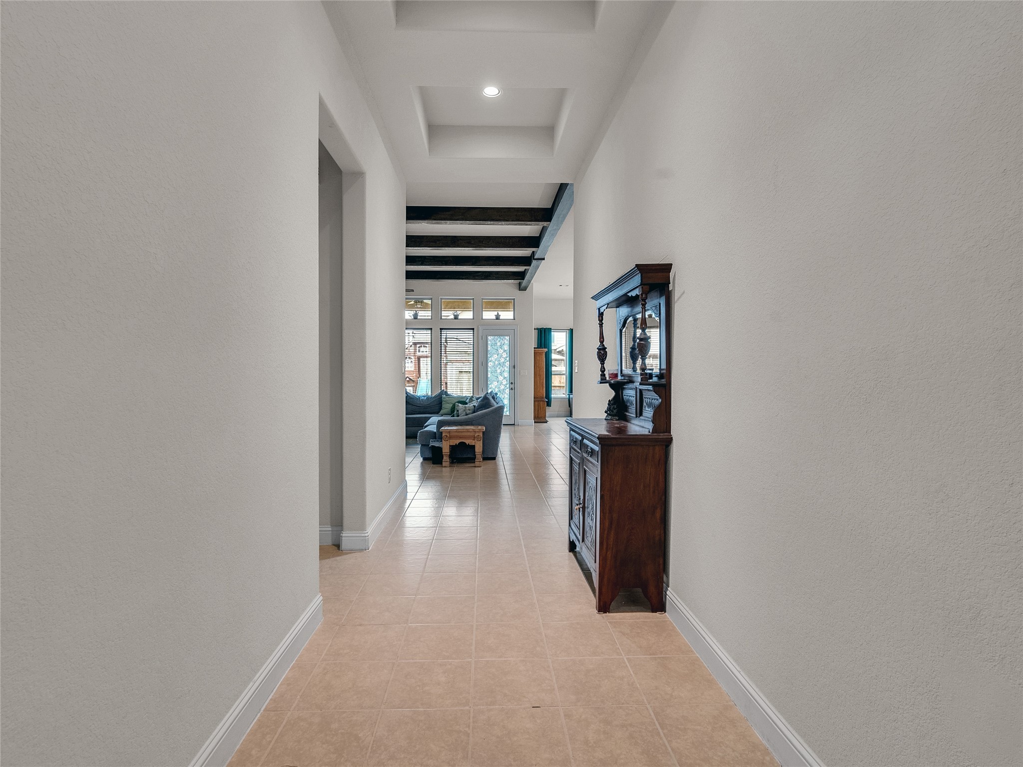Motivated Seller! Welcome to this stunning single-story home in Katy Trails! Designed with an open-concept layout, this residence includes a 3 bedrooms, 2.5 baths, a media/flex room and a lovely covered terrace. High ceilings create an upscale feel, while tile flooring flows throughout the main living areas. The kitchen is bright and modern with a generous island, modern countertops, stainless appliances and inviting dining space; open to the family room, where you also find a stone corner fireplace and beautiful wood ceiling beams. The primary suite features dual vanities, an oversized shower and dual shower head, a soaking tub, and an expansive walk-in closet. Step outside to a covered patio with a ceiling fan. Yard with complete sprinkler system. Walk-in closets in every bedroom and a large laundry room. Zoned to highly rated Katy ISD. Short walk to parks and shopping. Welcome to see it!