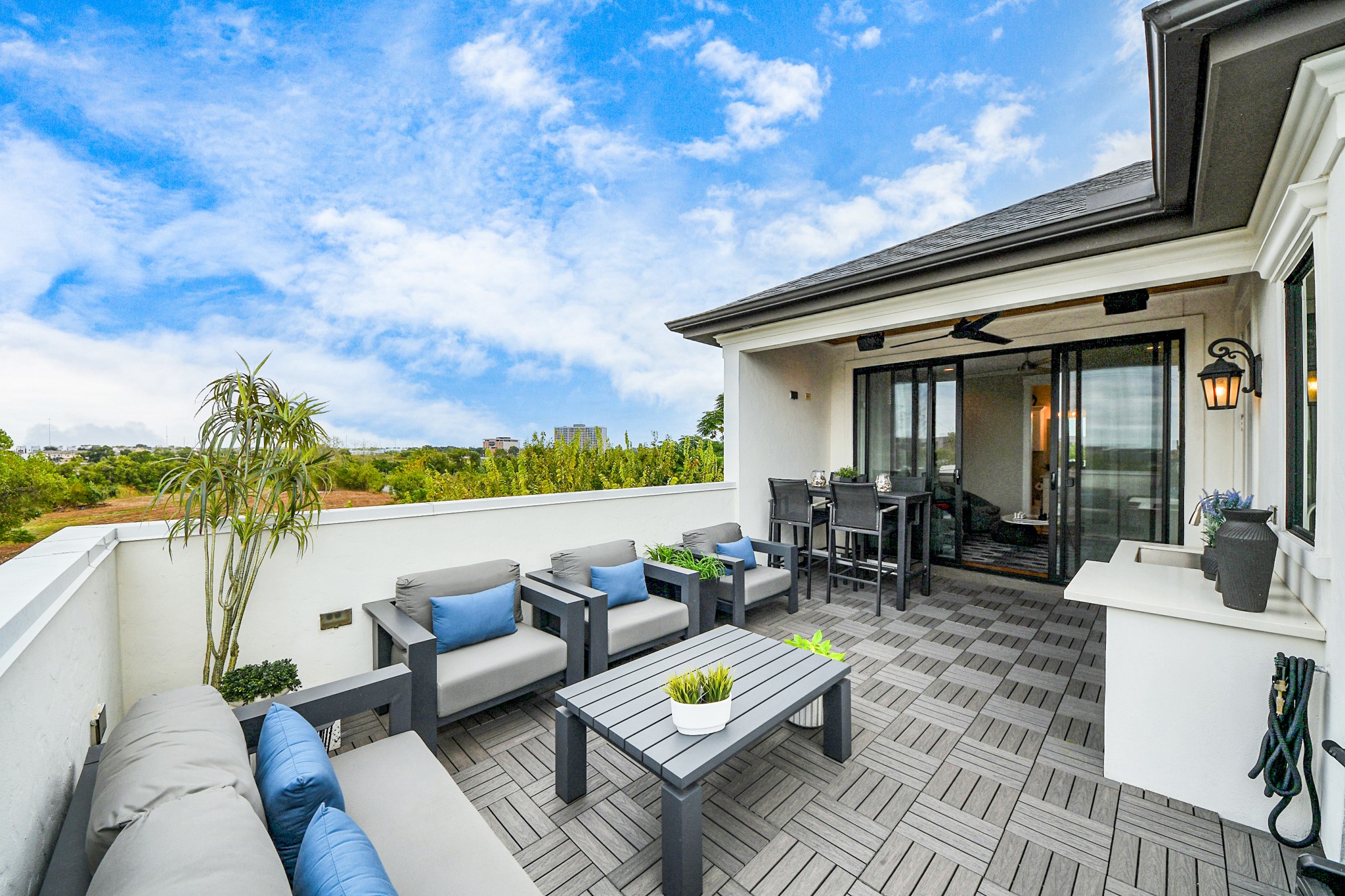 Stunning, lightly lived-in home in the heart of Rice Military feels like new. Open concept w/ rich hardwoods, high ceilings, great natural light + excellent storage. Large living/dining flows to spacious kitchen featuring an elevated chef-grade appliance package, custom cabinets, wine fridge, designer backsplash, gas range, Carrera marble counters + oversized island w/ seating. Lovely terrace off living room perfect for morning coffee or evening wine. Spacious primary suite w/ dbl vanities, whirlpool tub, sep shower + HUGE walk-in closet w/ custom built-ins. All BRs have ensuite baths. 1st-floor suite opens to generous deck, turfed outdoor space and gorgeous landscaping ideal guest retreat, gym or office. Custom blinds throughout. Gated community, mins to Memorial Park, I-10, k if we as Downtown + top dining/fitness. Move-in ready + impeccably maintained. A must-see!