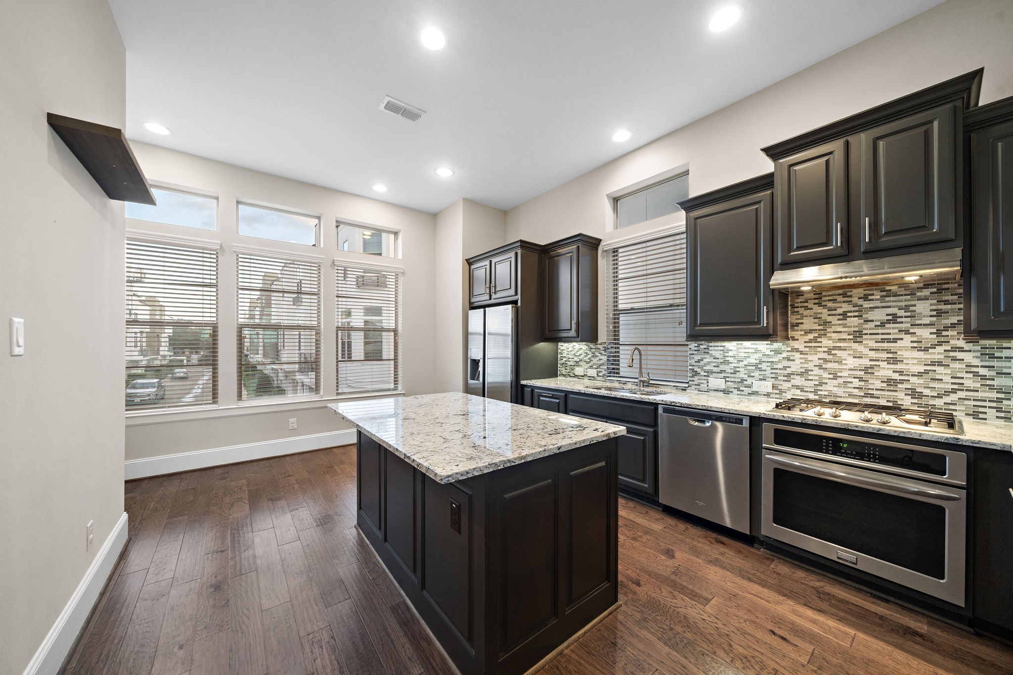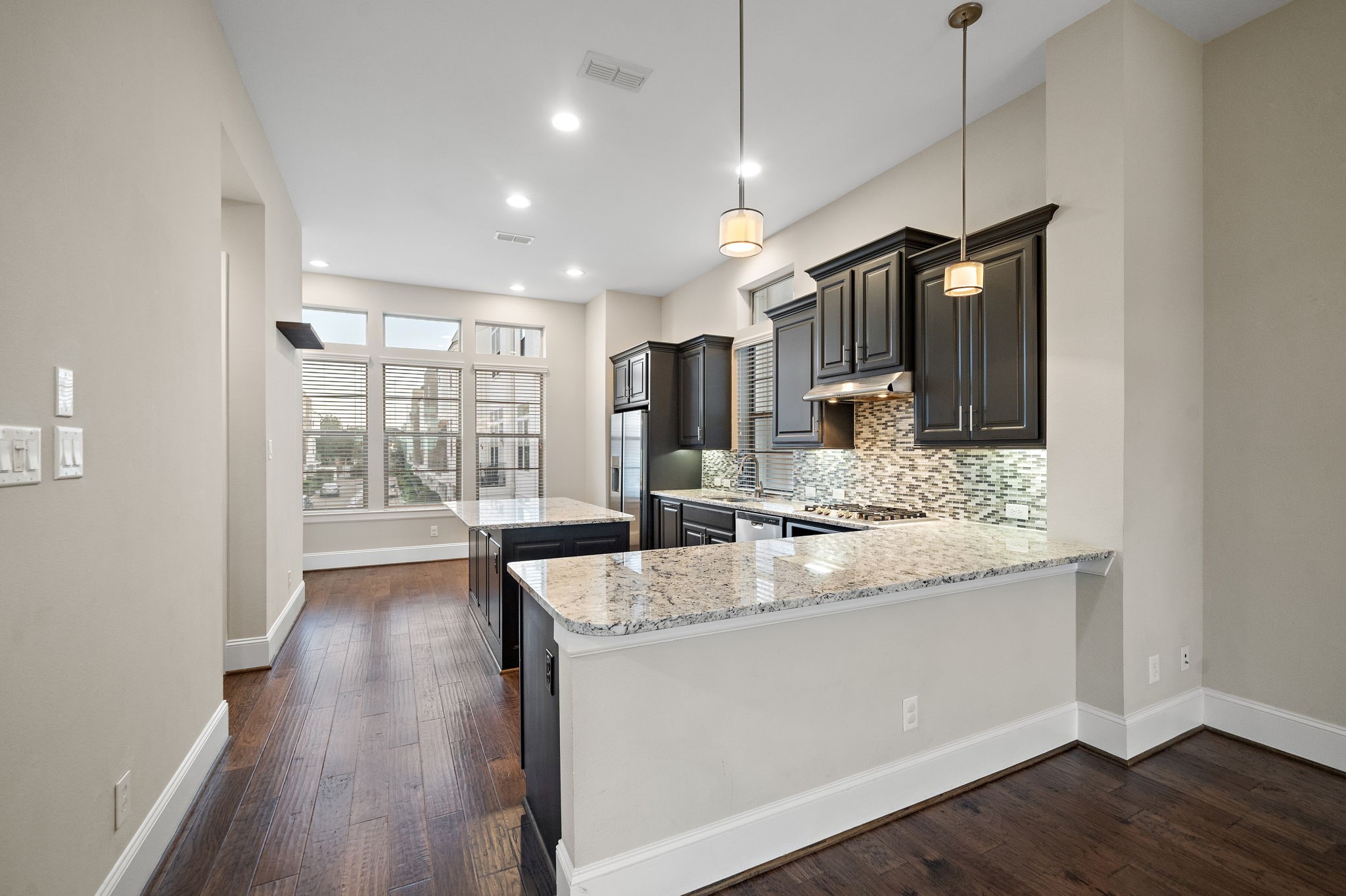 Live effortlessly in this beautiful David Weekley EnergySaver 3-bed, 3.5-bath home in Buffalo Manors exclusive gated community. Designed for both comfort and style, this low-maintenance residence offers a private fenced yard with no rear neighborsideal for peaceful outdoor living and/or pets!! Inside, soaring 11-ft ceilings and large windows create a bright, airy feel across the open-concept layout. Rich hardwood floors flow through a spacious living area that opens to a private balcony. The chefs kitchen is a showstopper with granite counters, an oversized island/breakfast bar, wine bar, gas cooktop, designer backsplash, and SS appliances. The luxurious primary suite features an accent wall, spa-like bath with soaking tub, a separate glass-enclosed shower, and generous walk-in closet. Energy-efficient upgrades and high-end finishes elevate the lifestyle. Minutes from 610, the Med Center, NRG, dining, parks & morethis Inner Loop gem blends elegance, privacy & convenience.