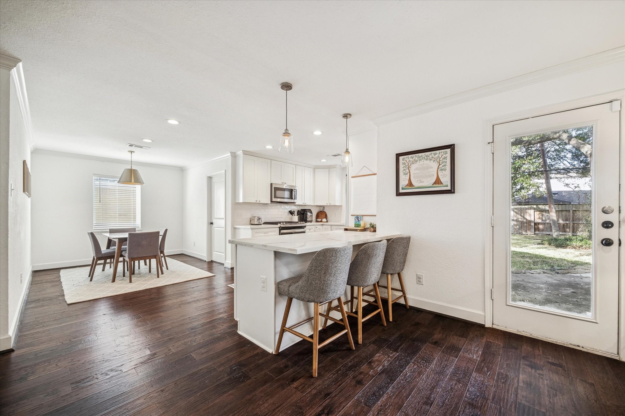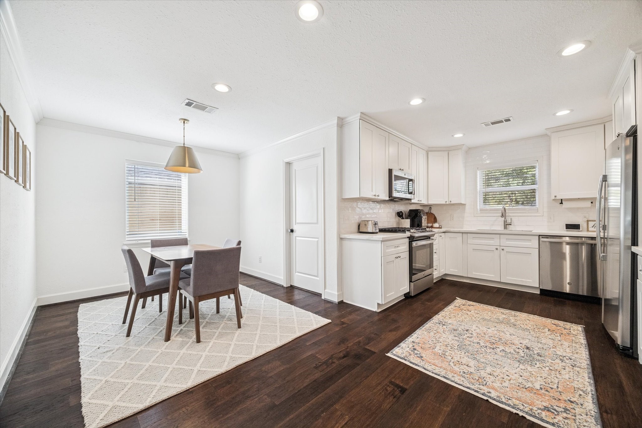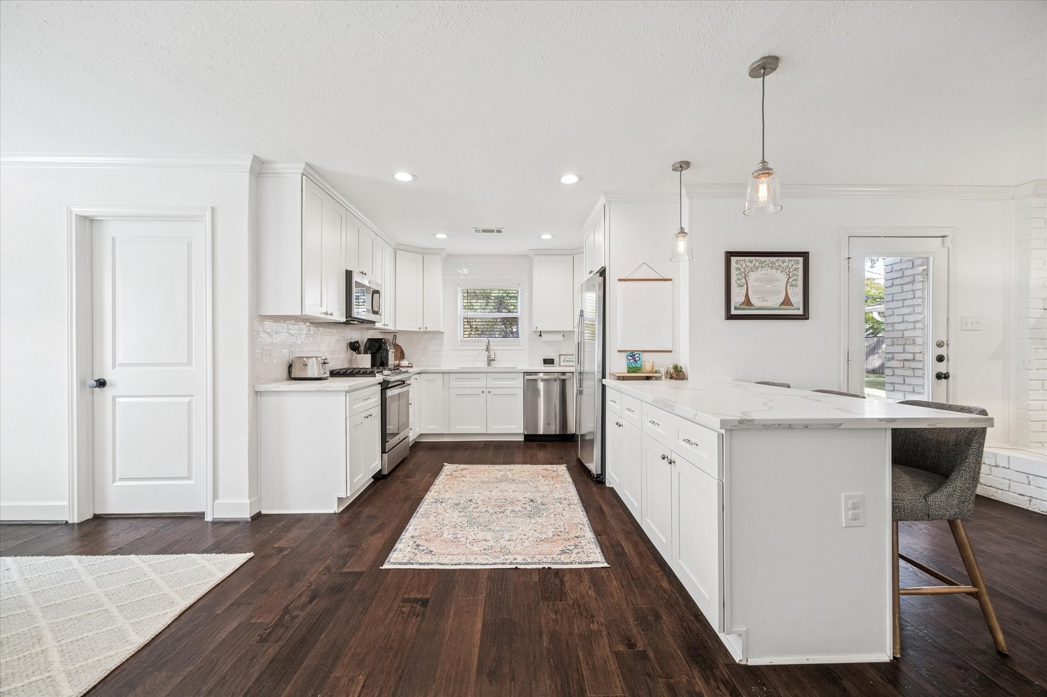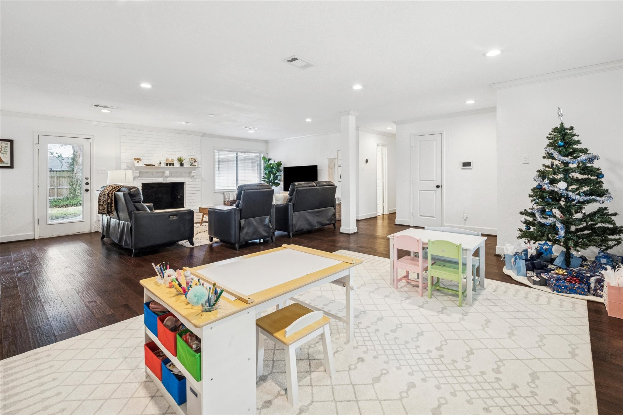 Welcome to this beautifully designed one-story home offering comfort, style, and functionality throughout. Featuring four spacious bedrooms, this home is ideal for both everyday living and entertaining. Engineered wood floors flow seamlessly throughout the main living areas, creating a warm and inviting atmosphere. The open-concept kitchen overlooks the family room and boasts sleek quartz countertops, stainless steel appliances, and ample workspaceperfect for hosting or casual family meals. The oversized primary suite is a true retreat, offering a separate sitting area, large walk-in closet and ensuite bath with a standalone shower for a spa-like experience. Energy-efficient windows provide natural light while helping reduce utility costs, and the etched glass front door adds a touch of modern elegance. Step outside to a large backyard with endless potential for outdoor living and relaxation. Modern finishes blend seamlessly with practical living spaces youll love coming home to.