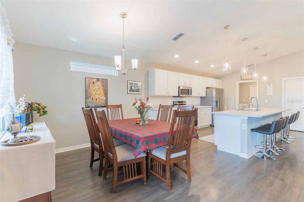 Welcome to your dream home in the heart of Villamar, where modern living meets serene surroundings. This stunning four-bedroom, two-bathroom residence is perfectly situated on a desirable corner lot, offering privacy and tranquility with no backyard neighbors, as it backs up to a lush conservation area and a picturesque pond.Step inside to discover a bright and airy open-concept design, accentuated by high ceilings that create an inviting ambiance. The gourmet kitchen is a chefs delight, featuring sleek stainless steel appliances, a spacious island with seating for up to six, and elegant decorative lighting that enhances the space. The stylish tile backsplash adds a touch of sophistication to this culinary haven.Retreat to the expansive primary bedroom, where a tray ceiling enhances the sense of luxury. The en suite bathroom completes the suite with a private water closet, a large walk-in shower, dual sinks, a generous walk-in closets, providing ample storage and comfort.This home is designed for modern convenience, featuring a designated indoor laundry room and a host of upgrades, including a water softener system with reverse osmosis. Step through the sliding glass doors to the screened-in lanai, equipped with a ceiling fan and epoxy flooring, perfect for enjoying Floridas beautiful weather. The private backyard, enclosed by a vinyl fence, offers a secure space for relaxation or play.Additional highlights include a spacious two-car garage and access to the community pool, ideal for those hot summer days. Located close to the enchanting Chain of Lakes and Legoland, as well as an array of shopping and dining options, this home promises a lifestyle of comfort and convenience.Dont miss the opportunity to make this exceptional property your new home. Schedule a viewing today and experience all that this remarkable residence has to offer!