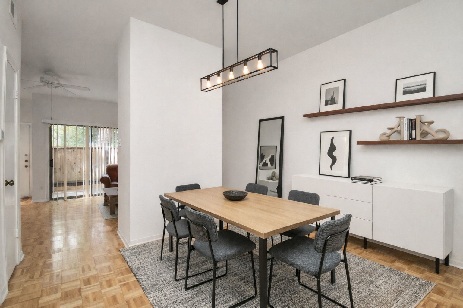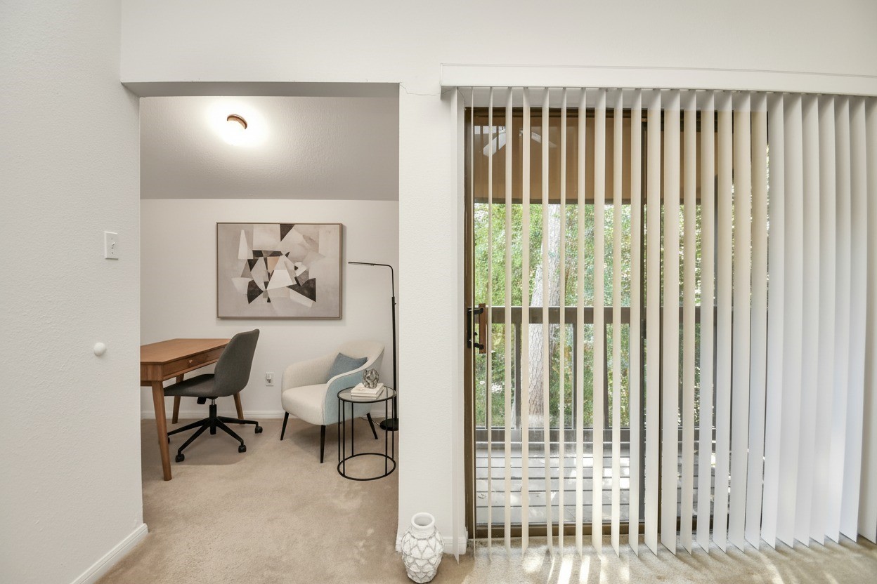 Beautifully maintained two-story townhome in the highly desired Memorial area, offering a peaceful wooded setting with quick access to CityCentre, Memorial Park, dining, shopping, and major freeways. The spacious living area features parquet flooring, large sliding doors, and a cozy wood-burning fireplace. The dining room includes a mirrored accent wall and a convenient passthrough to the kitchen with ample cabinet storage. A half bath is located on the first floor. Upstairs, the large primary suite offers vaulted ceilings, two walk-in closets, and a flex space ideal for an office or reading nook. The ensuite bath includes dual vanities, generous counter space, a tub/shower combo, and an in-unit stacked washer/dryer. Enjoy a private second-floor balcony with tranquil views. Gated community offers landscaped grounds and HOA services covering exterior insurance, water/sewer, trash, lawn care, and controlled access. A perfect blend of comfort and convenience in a prime Memoriallocation.