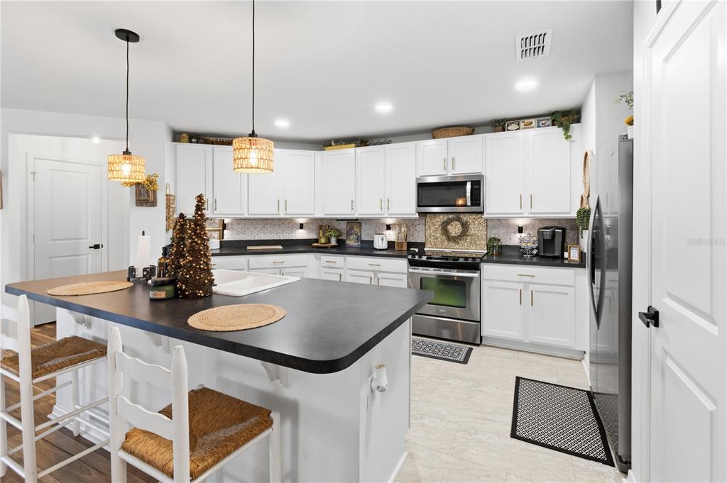 Welcome to this well-appointed 4-bedroom, 2-bath home located in the desirable Lake Lucerne community of Winter Haven. This home offers a 2-car garage, a split-bedroom floor plan, and an open-concept layout designed for comfortable living. There is brand new flooring throughout most of the home. The kitchen features a large center island, modern finishes, and overlooks the spacious living and dining areas. The primary suite with tray ceilings includes a generous ensuite bath with a double-sink vanity. Additional features include a spacious laundry room, screened-in rear porch, and a large fenced backyard. Lake Lucerne residents enjoy access to community amenities including a pool, playground, and sidewalks.