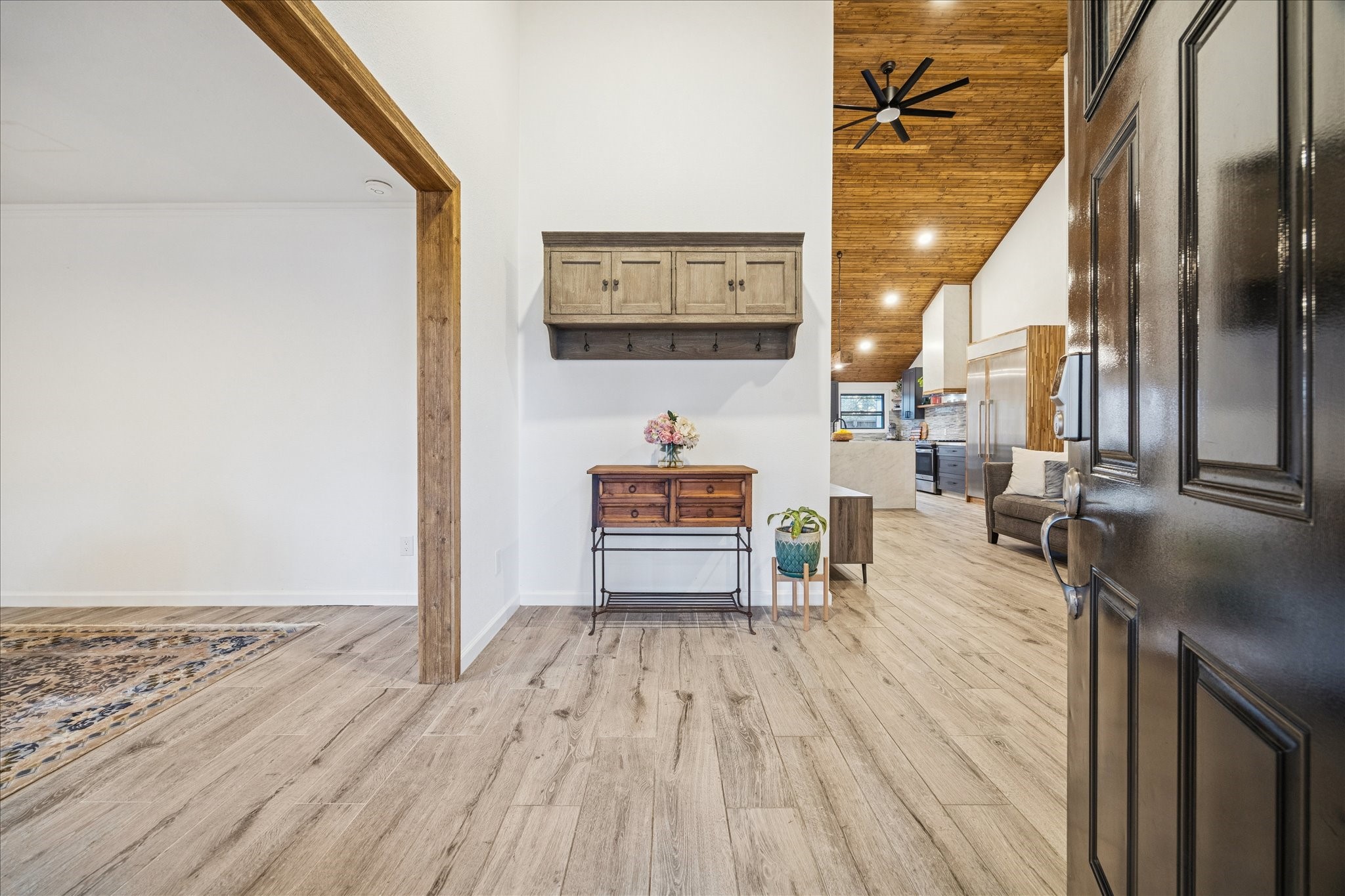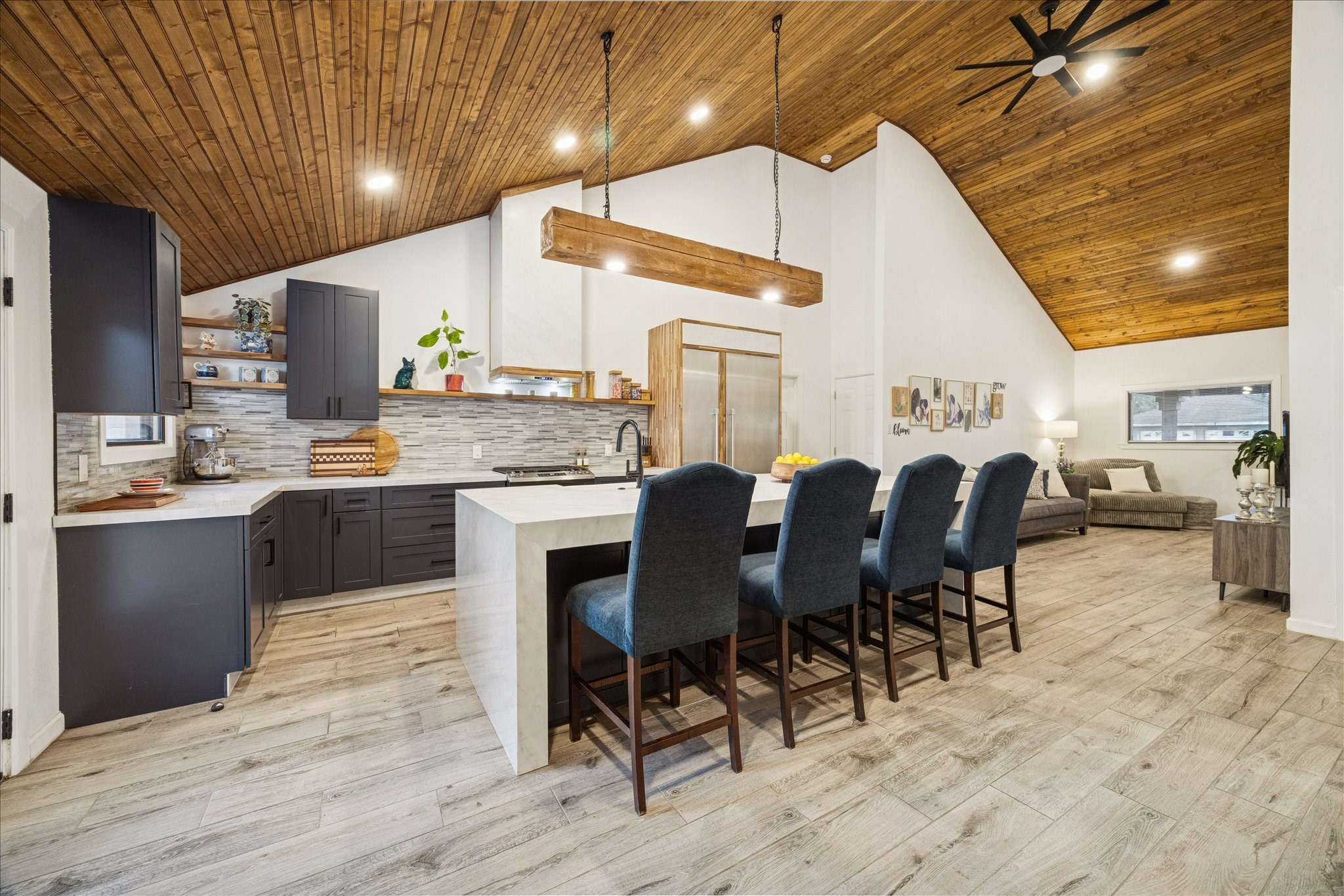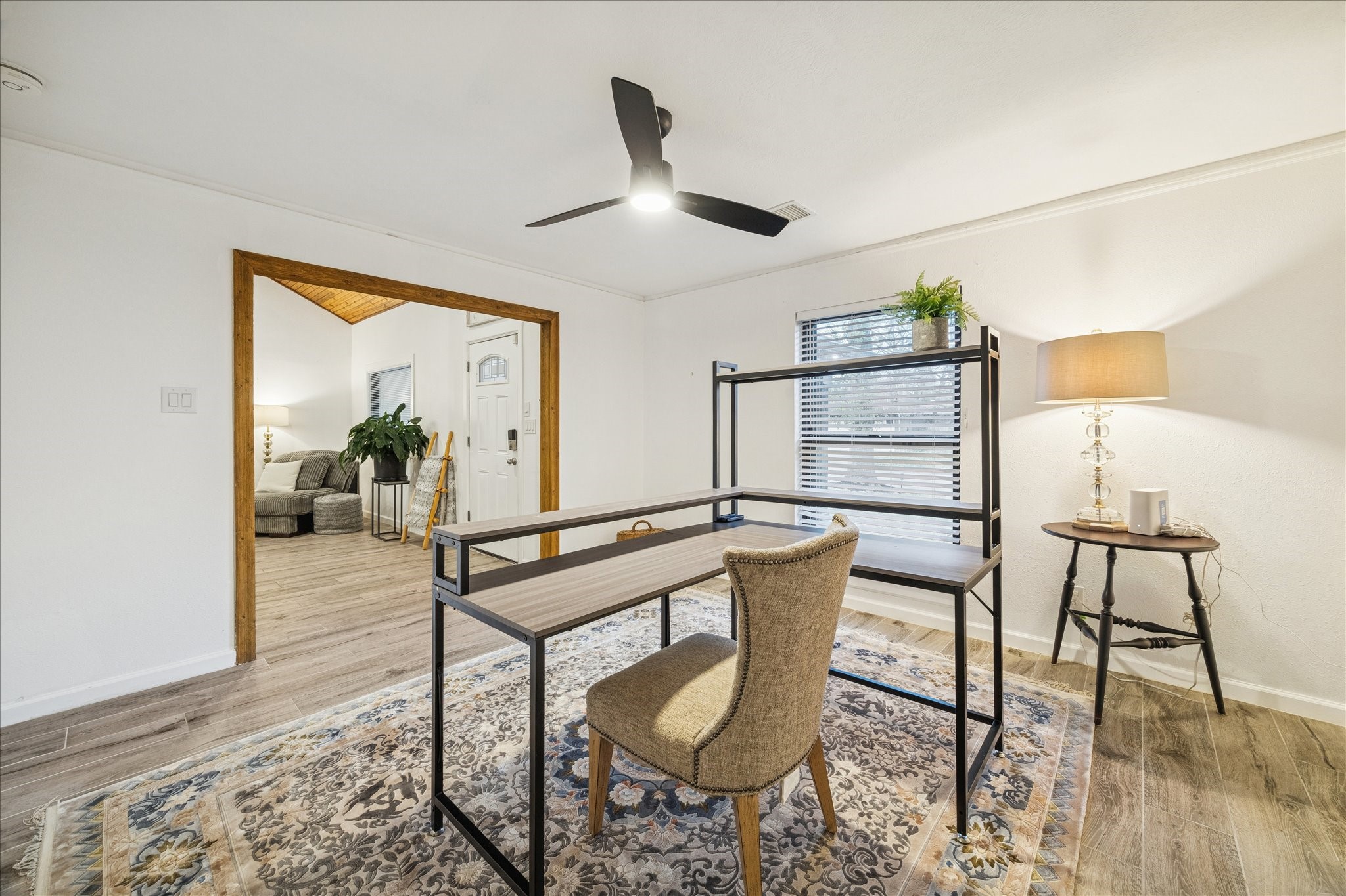 Stunning and Unique home, extensively renovated in April 2024, with high end finishes and luxury accents. 10 Waterfall Kitchen Island with Porcelain countertops and butcher block accents. Soaring ceiling in Family room with Open concept floor plan. Cathedral ceiling has tongue & groove ship lap in cedar, pus a Thermador refrigerator & freezer. All New in 2024 includes Roof, electrical, plumbing, electrical panel, HVAC, Water Heater, Ductwork, all stainless steel appliances, and completely new Kitchen. Sheetrock has been replaced including a large portion of studs & framework. Wood Look Tile flooring throughout, and home has a "New Home feel". Large patio in backyard , and a Stunning Porch was added in 2024. New driveway in December 2025. Theres a bonus storage building in back corner of backyard that has electricity, and an AC unit, perfect for a work shop, She Shed, Man Cave, Hobby Shack, or Office. Memorial area Amenities are minutes away, Downtown 20 minutes.
