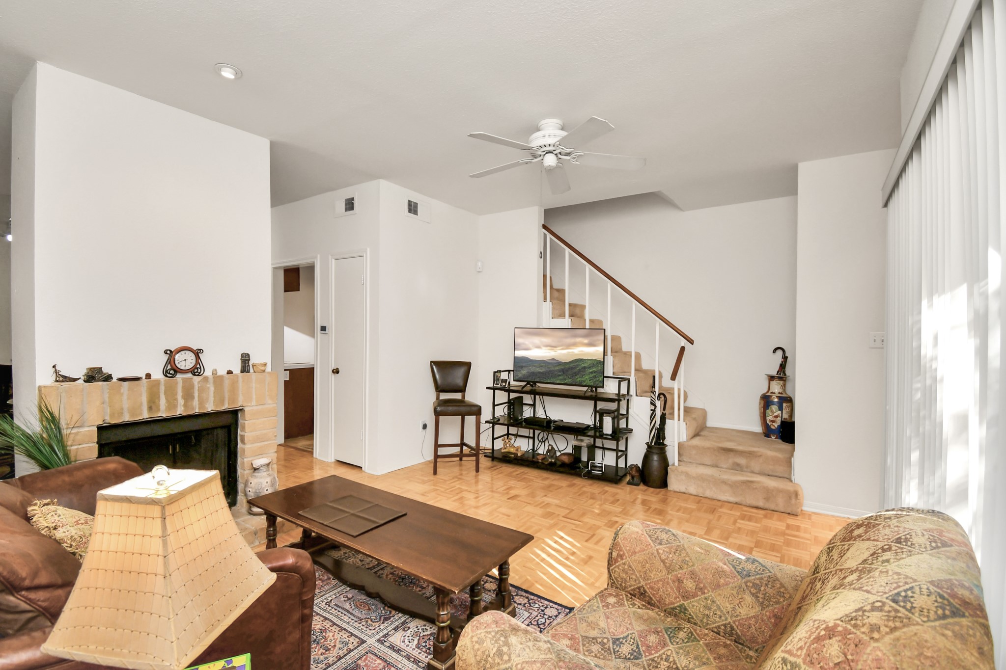 Beautifully maintained two-story townhome in the highly desired Memorial area, offering a peaceful wooded setting with quick access to CityCentre, Memorial Park, dining, shopping, and major freeways. The spacious living area features parquet flooring, large sliding doors, and a cozy wood-burning fireplace. The dining room includes a mirrored accent wall and a convenient passthrough to the kitchen with ample cabinet storage. A half bath is located on the first floor. Upstairs, the large primary suite offers vaulted ceilings, two walk-in closets, and a flex space ideal for an office or reading nook. The ensuite bath includes dual vanities, generous counter space, a tub/shower combo, and an in-unit stacked washer/dryer. Enjoy a private second-floor balcony with tranquil views. Gated community offers landscaped grounds and HOA services covering exterior insurance, water/sewer, trash, lawn care, and controlled access. A perfect blend of comfort and convenience in a prime Memoriallocation.