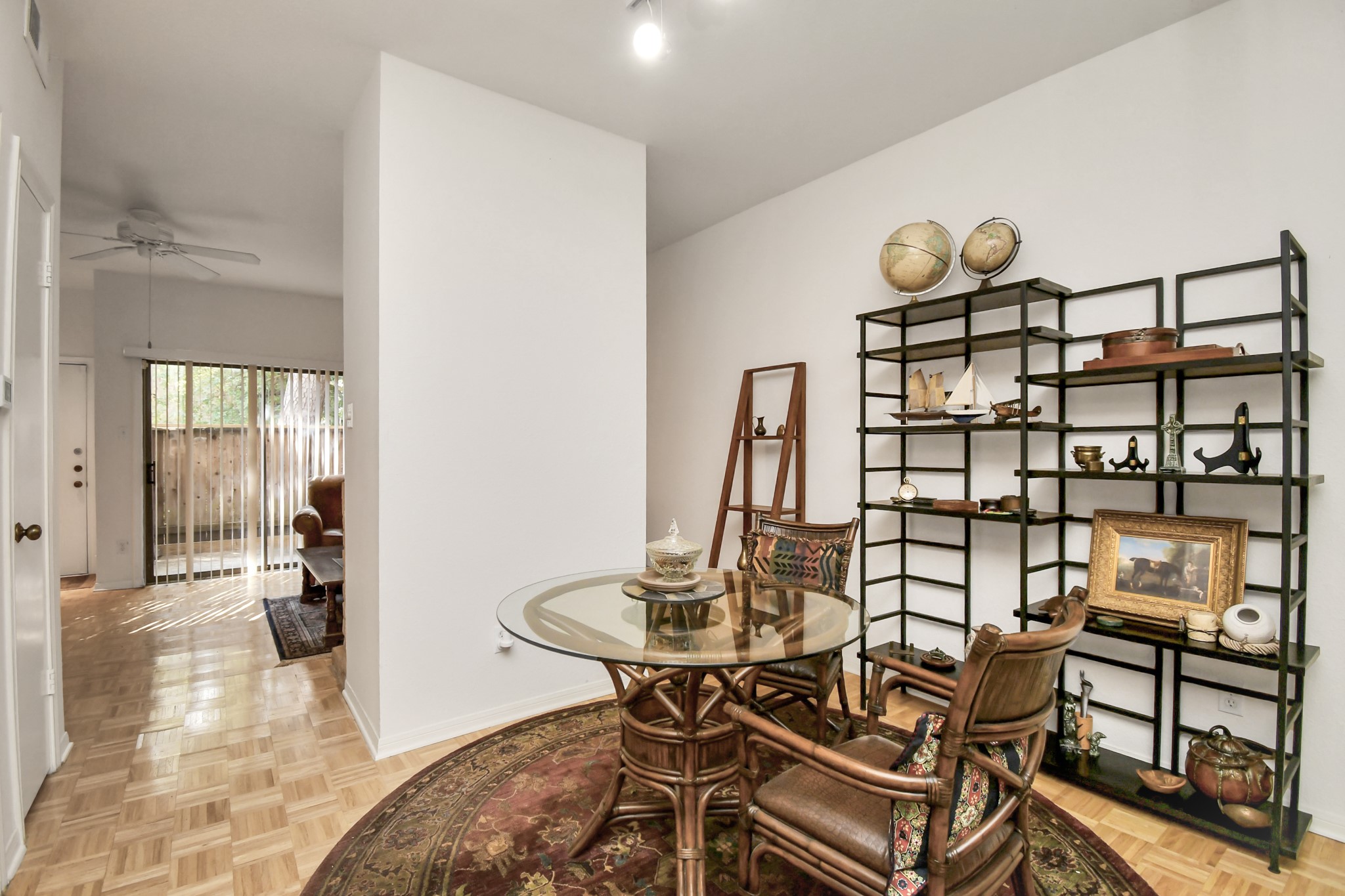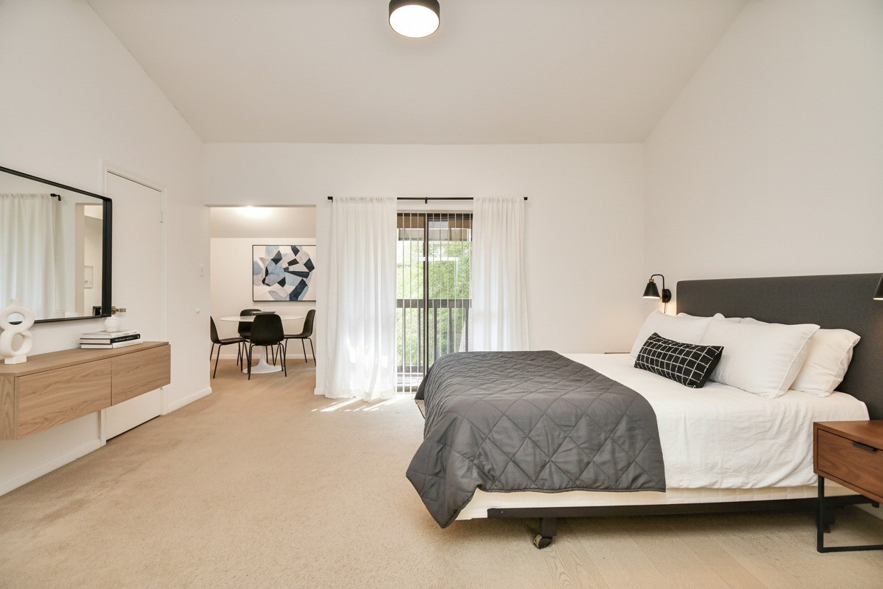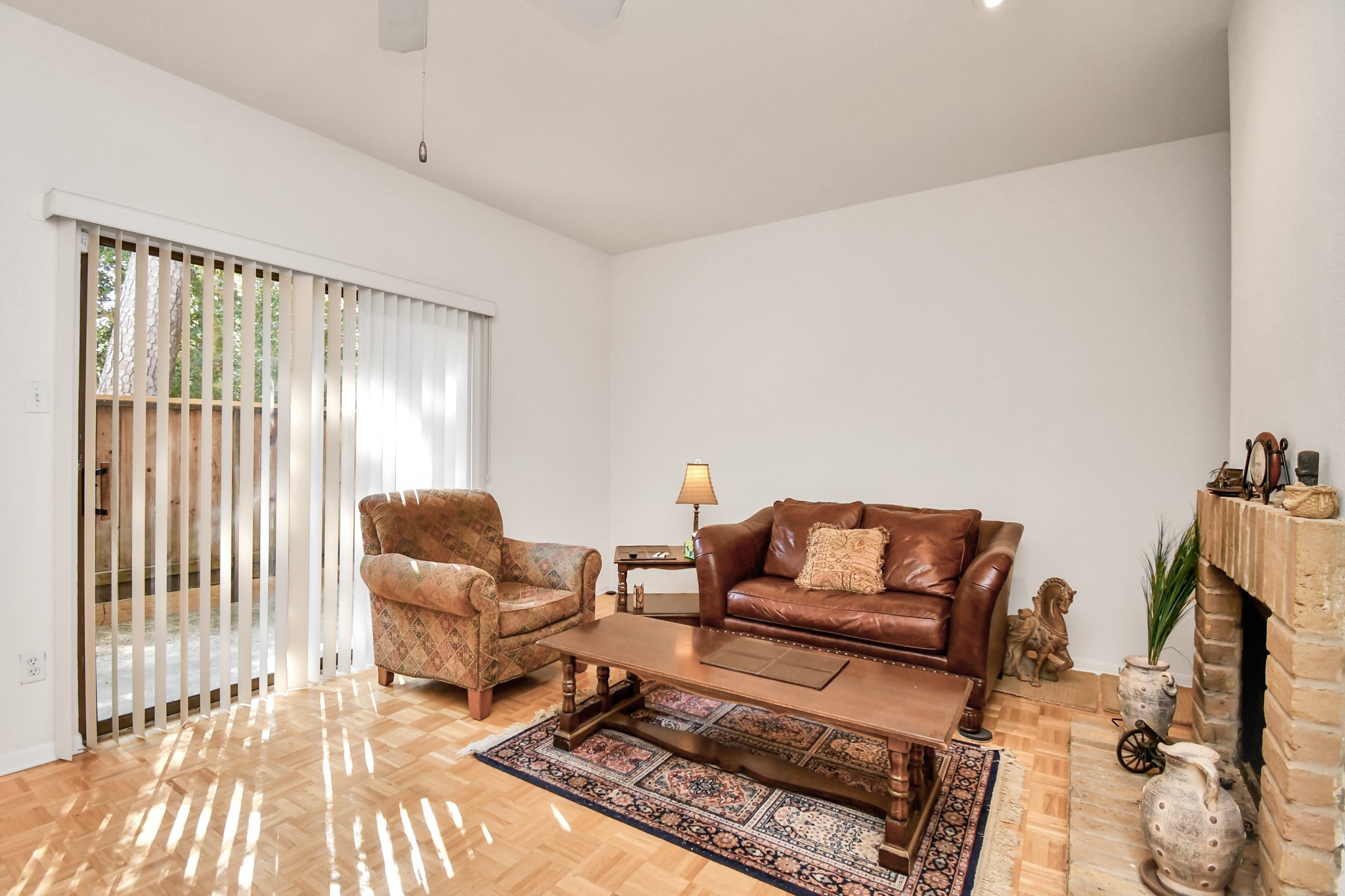 Beautifully maintained two-story townhome in the highly desired Memorial area, offering a peaceful wooded setting with quick access to CityCentre, Memorial Park, dining, shopping, and major freeways. The spacious living area features parquet flooring, large sliding doors, and a cozy wood-burning fireplace. The dining room includes a mirrored accent wall and a convenient passthrough to the kitchen with ample cabinet storage. A half bath is located on the first floor. Upstairs, the large primary suite offers vaulted ceilings, two walk-in closets, and a flex space ideal for an office or reading nook. The ensuite bath includes dual vanities, generous counter space, a tub/shower combo, and an in-unit stacked washer/dryer. Enjoy a private second-floor balcony with tranquil views. Gated community offers landscaped grounds and HOA services covering exterior insurance, water/sewer, trash, lawn care, and controlled access. A perfect blend of comfort and convenience in a prime Memoriallocation.