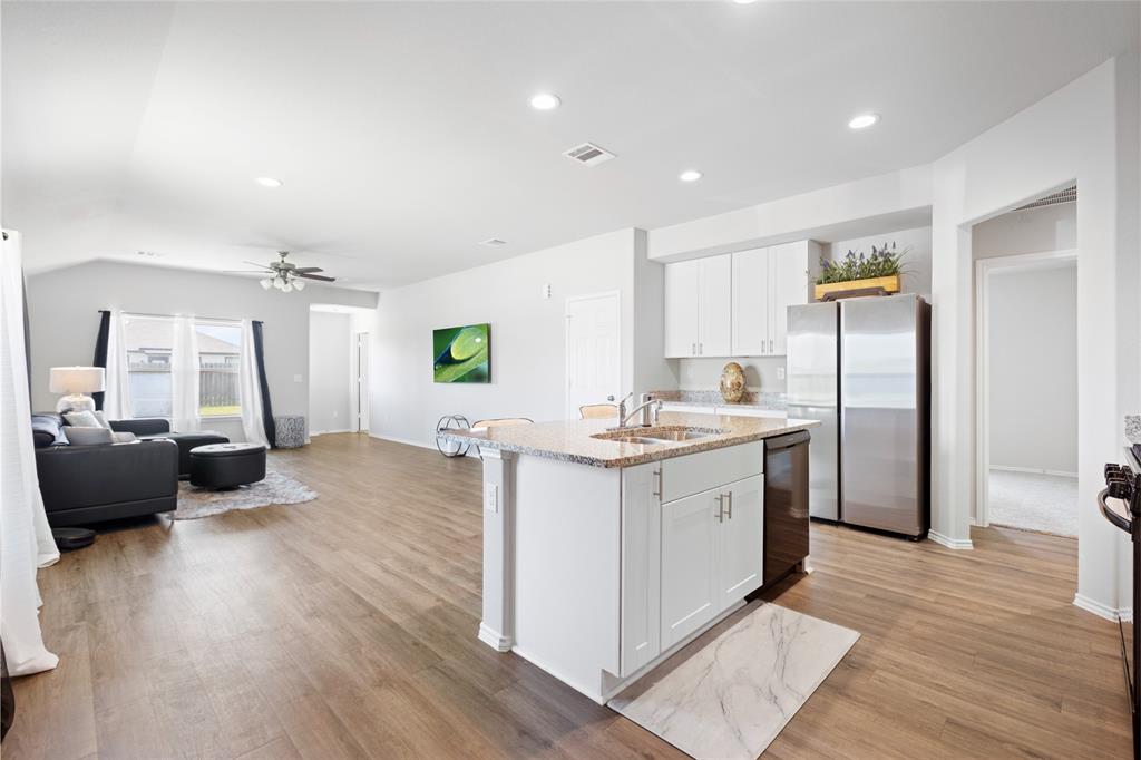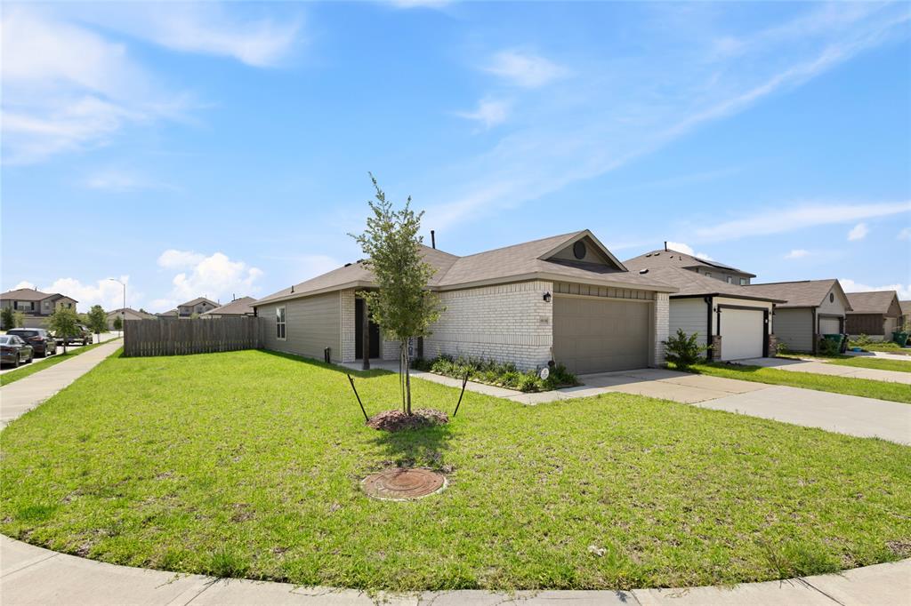 Situated on a spacious corner lot at the end of a peaceful cul-de-sac, this well-maintained single-story home was built in 2022 and offers the perfect mix of comfort and convenience. The open-concept layout features three generously sized bedrooms, two full bathrooms, and a bright living area that flows into a modern kitchen with ample cabinet space and bar seatingideal for everyday living and entertaining. Large windows throughout the home allow for plenty of natural light, creating a warm and inviting atmosphere. The oversized backyard is perfect for outdoor activities, future landscaping projects, and includes both front and rear covered patios for year-round relaxation. The two-car garage, energy-efficient systems, and smart floor plan add to the homes overall functionality. Located just minutes from US-59, Beltway 8, grocery stores, parks, and shopping centers, this move-in-ready property provides easy access to everything while offering a quiet retreat in agrowing neighborhood.