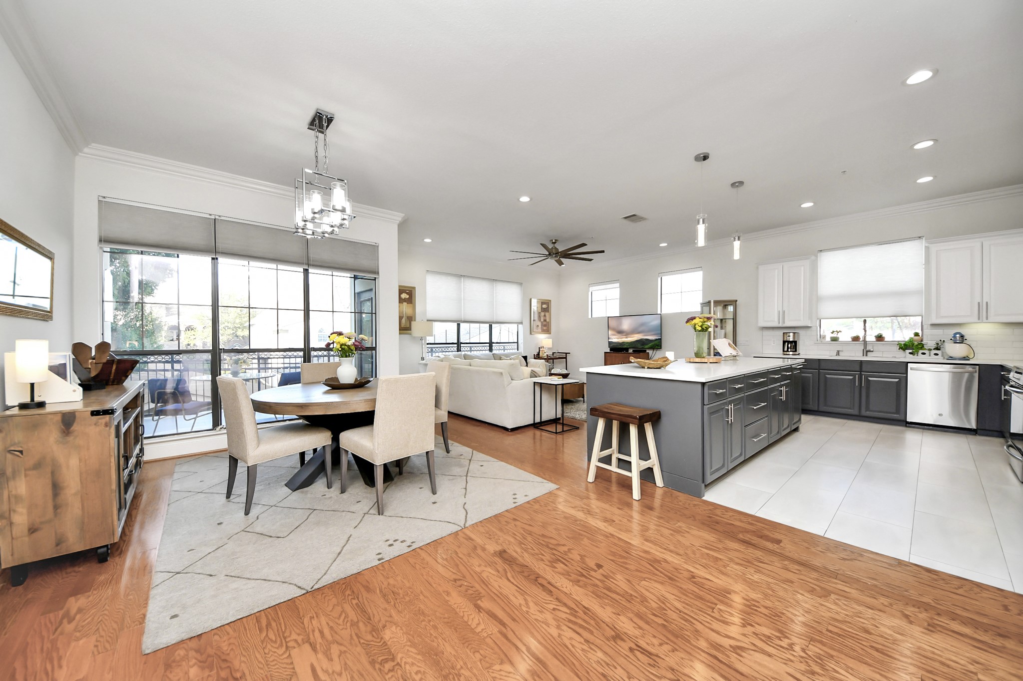 Beautifully updated (2023) corner-unit condo in the heart of Upper Kirby, across from Trader Joes and within walking distance to dining, shopping, and daily conveniences, no car needed! Open-concept floor plan with a gourmet kitchen featuring high-end appliances, quartz countertops, and abundant cabinetry. Engineered wood and tile flooring throughout NO CARPET. The largest private balcony in the complex extends the living space and offers a peaceful spot to unwind. Split floor plan with guest suite opposite the primary for added privacy. Spacious office/study off the entry and full laundry room. Primary suite includes a spa-like bath and generous walk-in closet. Assigned parking in a ground-level garage, controlled access entry, and Tesla charging station next door. Building completed major renovations in Summer 2025, including exterior, roof, hallway, and lobby updates. Prime location near Midtown, Downtown, the Museum District, Rice University, and the Texas Medical Center.