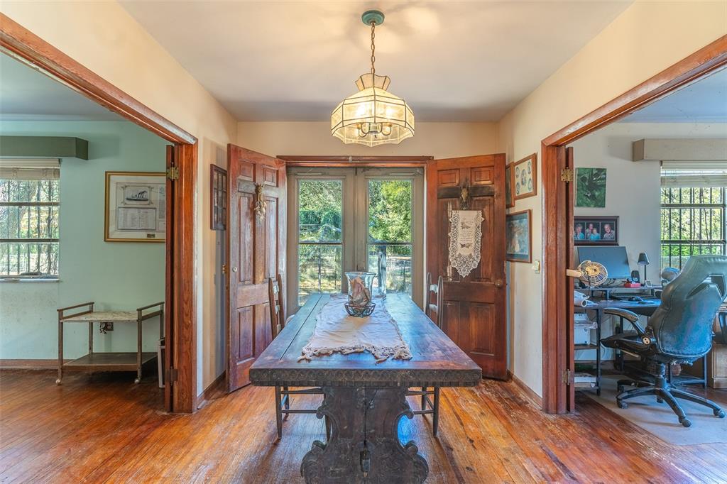 Built to last, this cement block and brick home offers 6 bedrooms and 4 bathrooms, constructed from floor to roof for lasting strength and peace of mind. A classic tile roof crowns the home, while original hardwood floors throughout the main residence add warmth, character, and timeless appeal.Set on 10 fully fenced acres with three separate pastures, the property is ideal for animals, privacy, or simply enjoying wide-open space. Mature trees provide natural shade and a peaceful setting, and the large front porch is perfect for relaxing and taking in the surroundings. A screened-in in-ground pool is currently covered and not in use, offering future potential for outdoor enjoyment.The main floor features a spacious great room ideal for gatherings, along with the primary bedroom and en-suite bathroom for convenient single-level living. The second floor includes additional living space, bedrooms, a bathroom, and a kitchenette, plus two separate balconies with water viewsperfect for guests or multi-generational living.The walk-out basement was previously a fully self-contained 2 bedrooms, 1 full bath and shower apartment complete with an open kitchen and living area, two bedrooms, and two bathrooms, providing excellent flexibility for extended family, guest accommodations, or rental income.Additionally, this home includes a whole home 24k Generac that powers the whole house, guest cottage and barns.Additional highlights include a detached guest house with high ceilings and an open-concept layout, as well as a detached barn with water, electricity, two stalls, and ample storage.While the property does require some TLC, it presents tremendous potential for customization, restoration, or value-add improvementsan exceptional opportunity for those seeking acreage, privacy, and long-term upside.