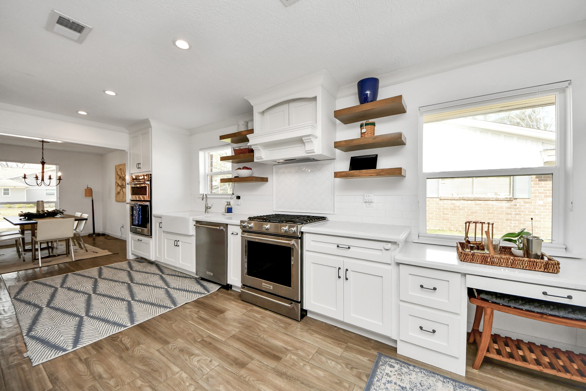 Beautifully updated home in Walnut Bend blending modern finishes with thoughtful upgrades throughout. The light-filled open layout is anchored by an oversized quartz island that naturally becomes the heart of the home. The kitchen features stainless appliances, a farmhouse sink, ample cabinetry, and great flow for both everyday living and entertaining. The spacious primary suite offers an oversized shower, soaking tub, and dual vanities. Large windows bring in abundant natural light, while the extended patio and covered gazebo create a private backyard ideal for year-round gatherings. Major 2021 updates include new driveway, and extended concrete patio, rain gutters, fence, landscaping with tree removal. 2022 updates include new windows, window coverings, three exterior doors and gazebo. HVAC updates include replaced ductwork and a new 4-ton Goodman coil (2023). Convenient access to the Energy Corridor, Beltway 8, shopping, dining, and neighborhood amenities.