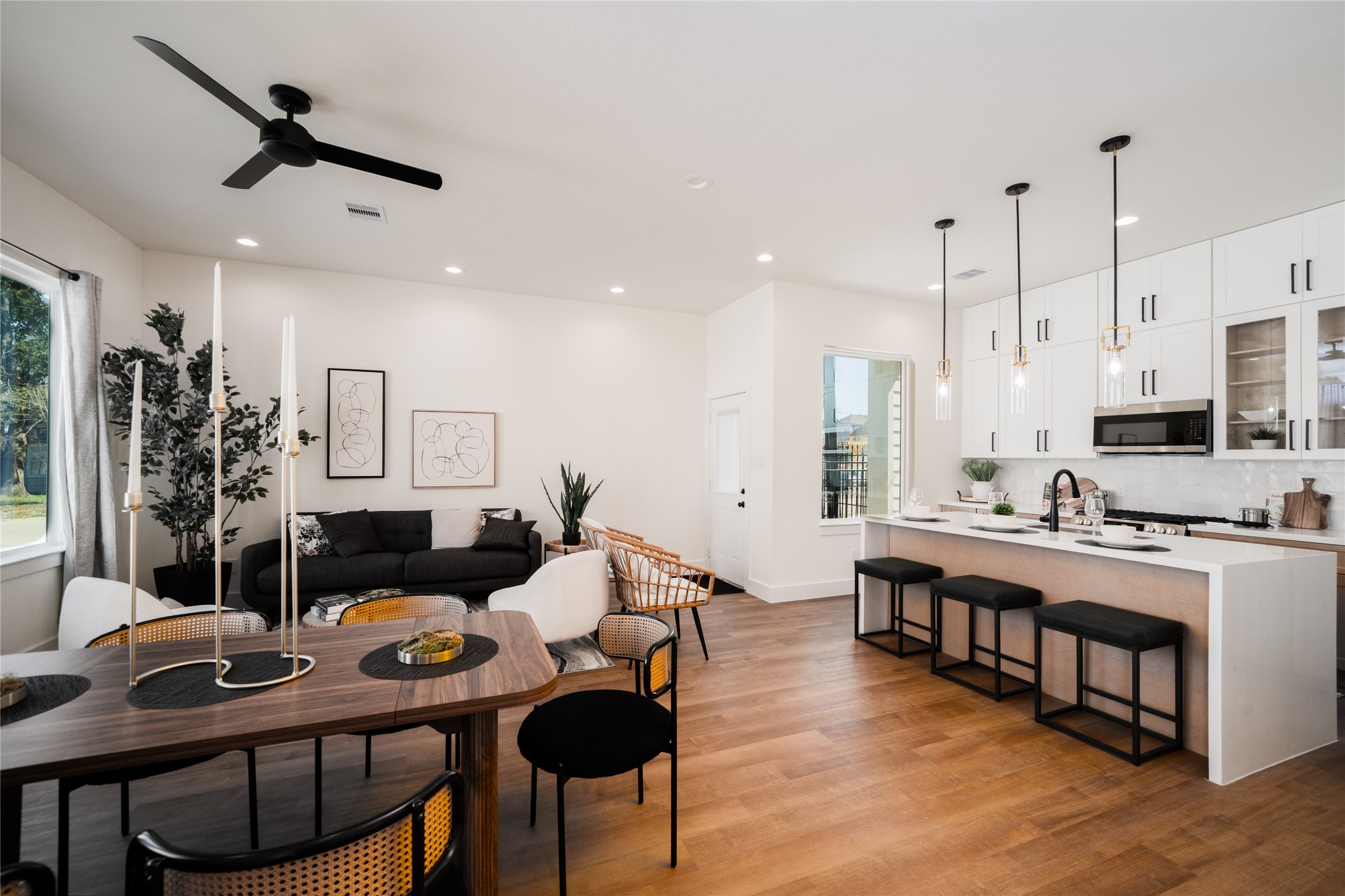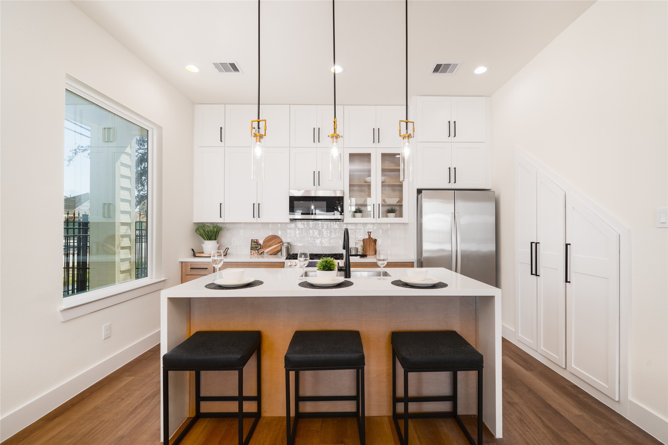 Welcome to this thoughtfully designed two-story home nestled in the highly sought-after Spring Branch neighborhood of Houston! Offering 3 spacious bedrooms, 2.5 bathrooms, and a versatile flex room on the second floorperfect as a home office, playroom, or upstairs living area. The Primary Bedroom is designed extremely spacious with a Huge Walk In Closet and frosted oversized windows in the bathroom for natural light and a Modern finish! Designed with everyday living and entertaining in mind, the open-concept first floor welcomes you with abundant natural light, Large windows, tall ceilings, and seamless flow between the living, dining, and kitchen areas. Located within a secure, gated community, youll enjoy enhanced privacy and peace of mind, all just minutes from premier shopping, dining, and major highways for an easy commute. Dont miss your chance to experience this exceptional home in person. Schedule your private tour today!